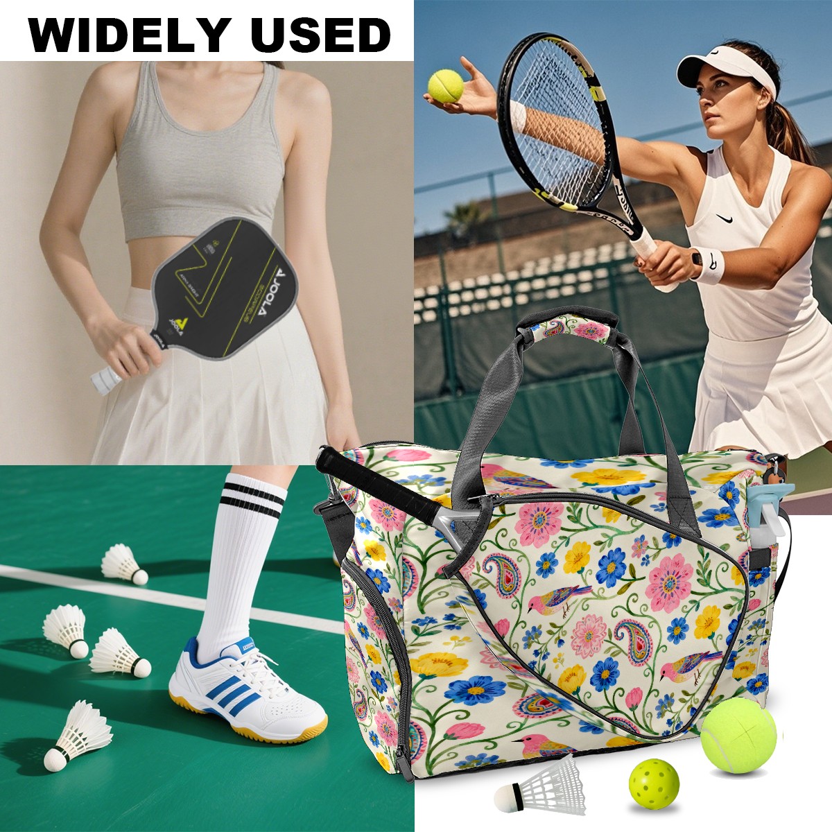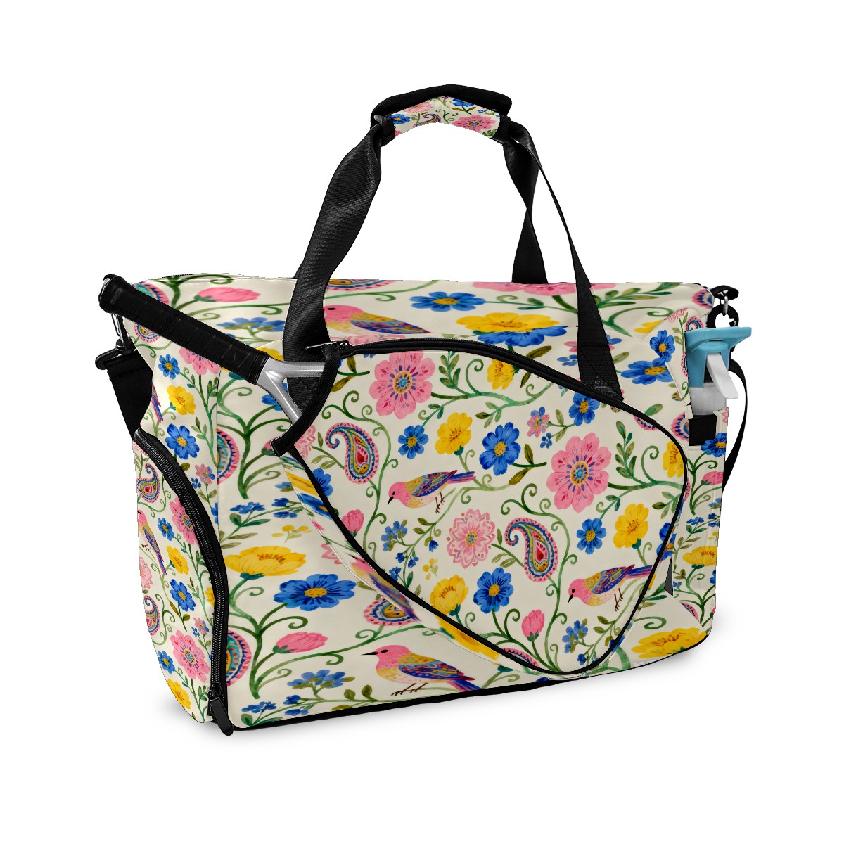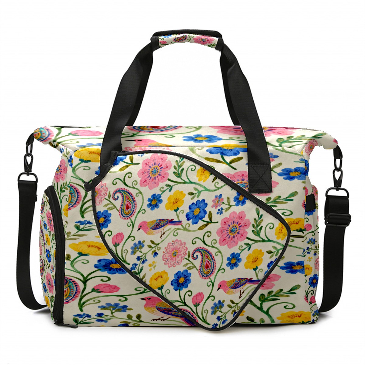 Lightweight Pickleball Tote Bag with Large Capacity, Shoe Compartment, Large Paddle Storage, Water Bottle Holder & Fence Hook for Women & Men Colorful Vine Texture Design