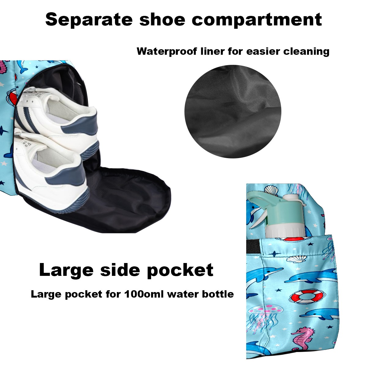 <p>Multifunctional Gym Travel Bag Made of Twill Fabric 22cm x 48cm x 35cm (8.7in x 18.9in x 13.8in) Made of lightweight and durable twill fabric, this bag is perfect for an active lifestyle. The spacious main compartment easily holds clothing, towels, and a full set of gym gear. A smart pocket precisely stores your phone, earphones, and gym membership card. A ventilated shoe compartment can hold size 10 athletic shoes, and a waterproof wet bag isolates swimwear or sweaty clothing, effectively preventing odors and clutter. It's a professional gym bag suitable for spinning and strength training, a stylish everyday handbag, and can also meet diverse needs such as pickleball, weekend trips, and overnight stays. Combining functionality and style, it seamlessly integrates into various scenarios.<br></p>
