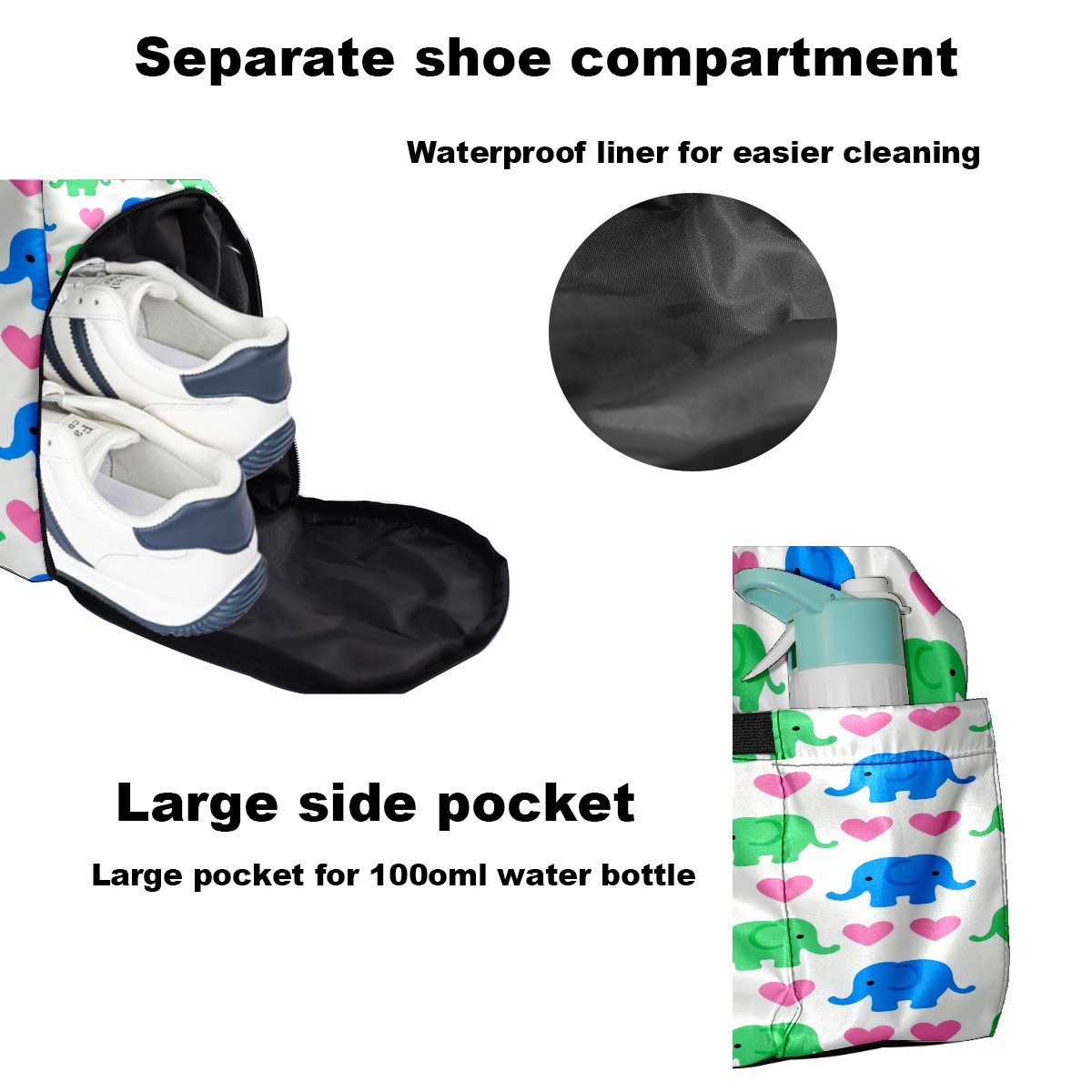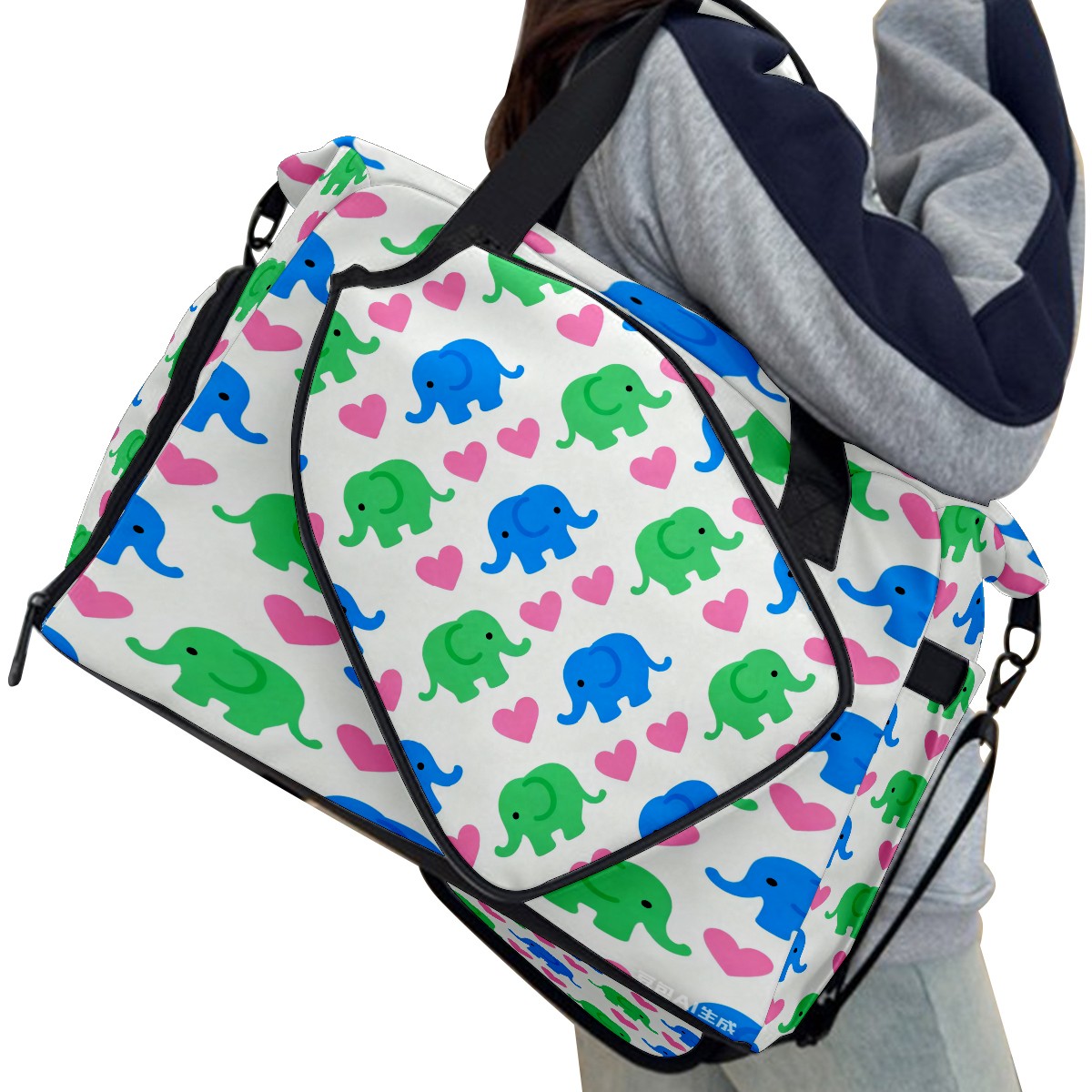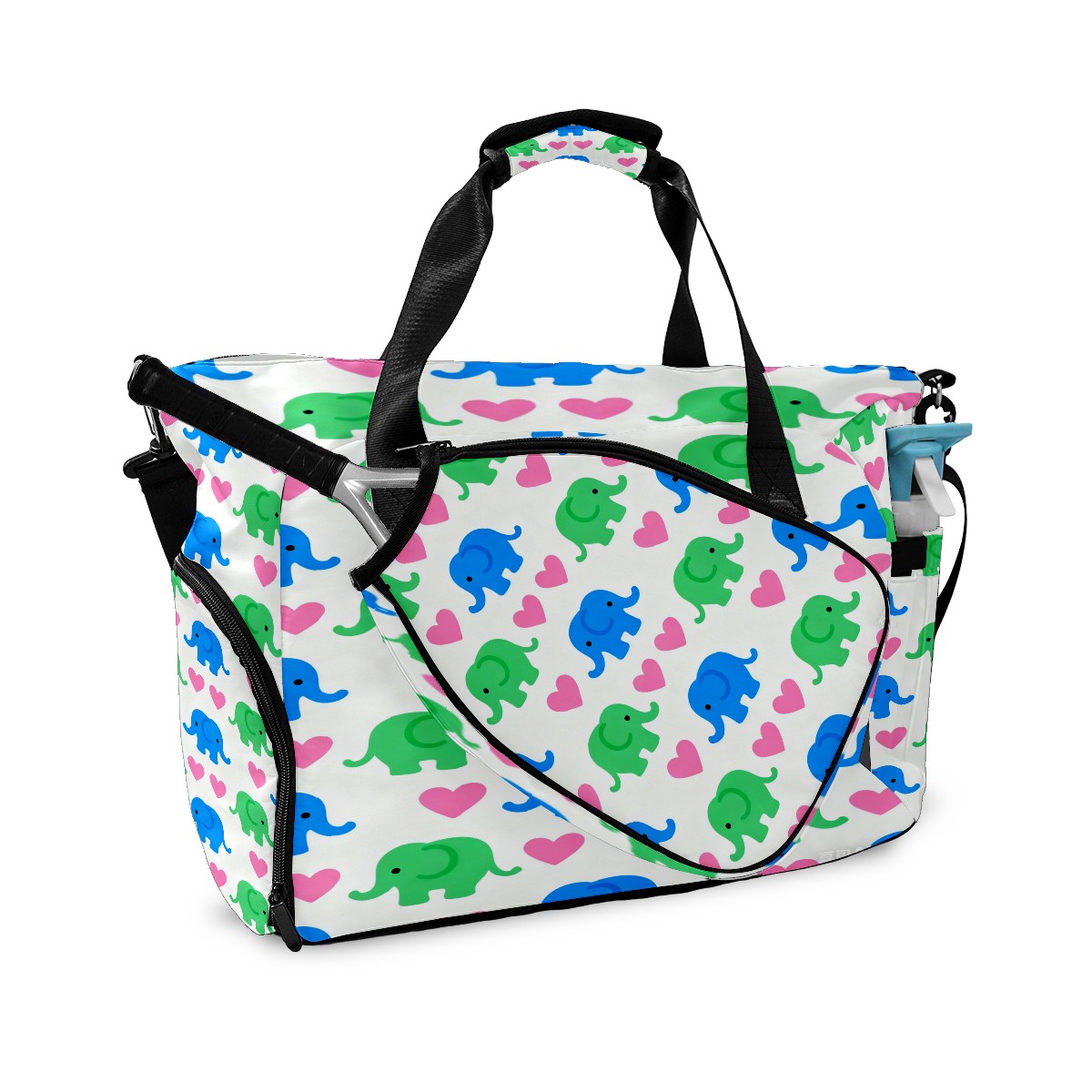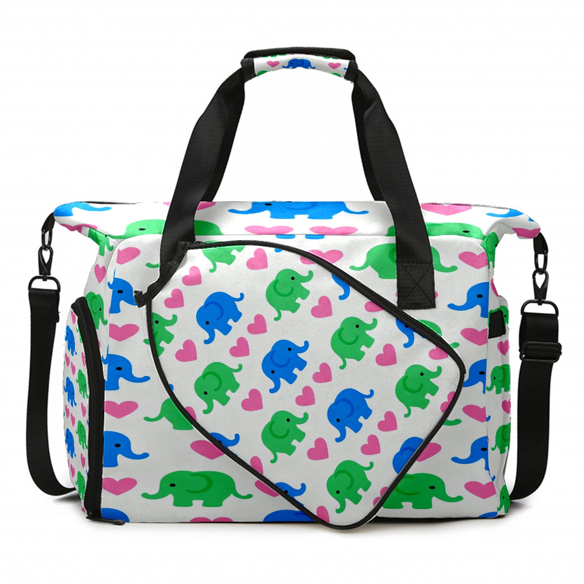 Lightweight Pickleball Tote Bag with Large Capacity, Shoe Compartment, Large Paddle Storage, Water Bottle Holder & Fence Hook for Women & Men Elephant Heart Pattern
