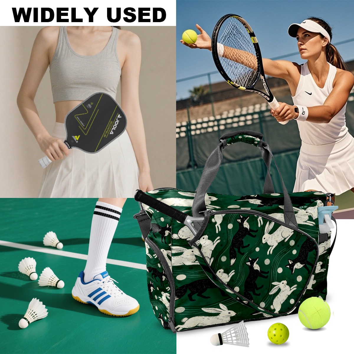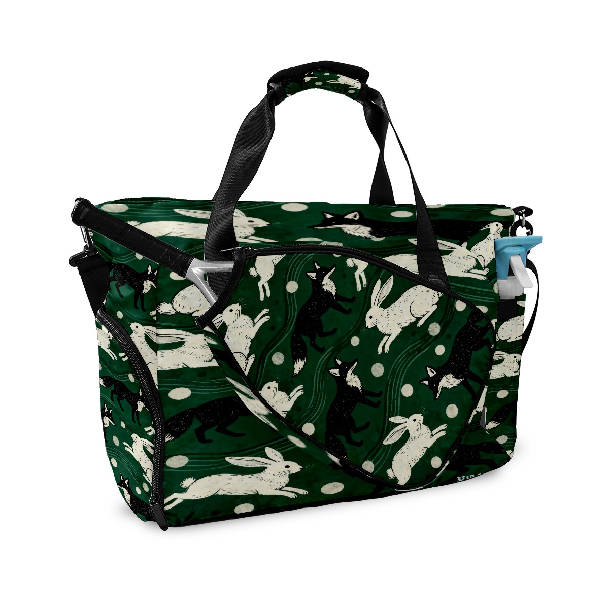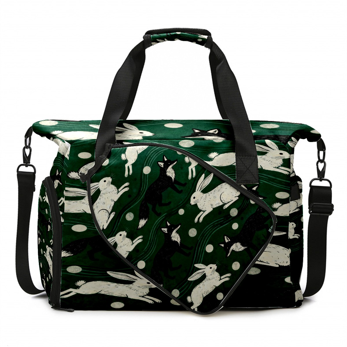Lightweight Pickleball Tote Bag with Large Capacity, Shoe Compartment, Large Paddle Storage, Water Bottle Holder & Fence Hook for Women & Men Dark Green Rabbit Pattern