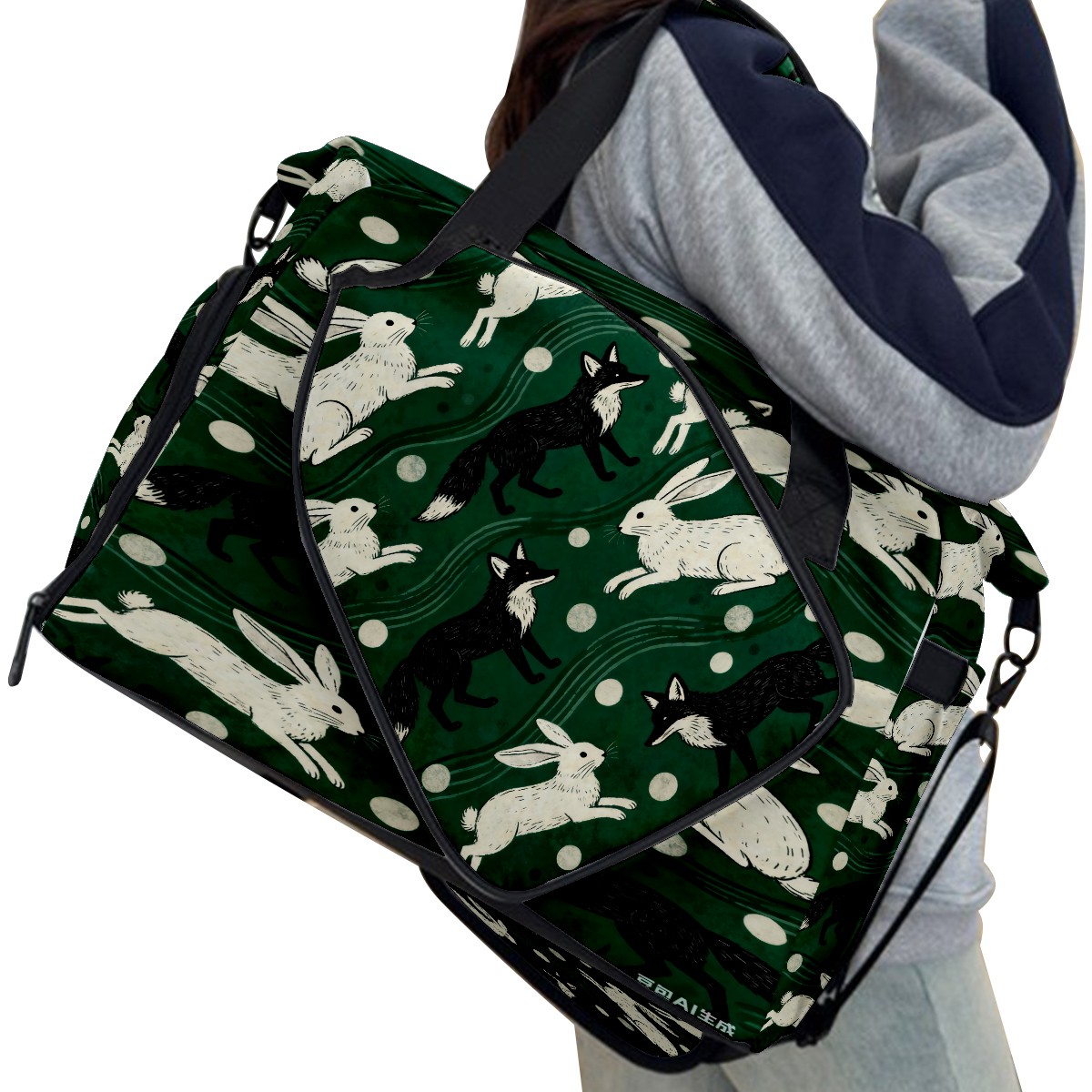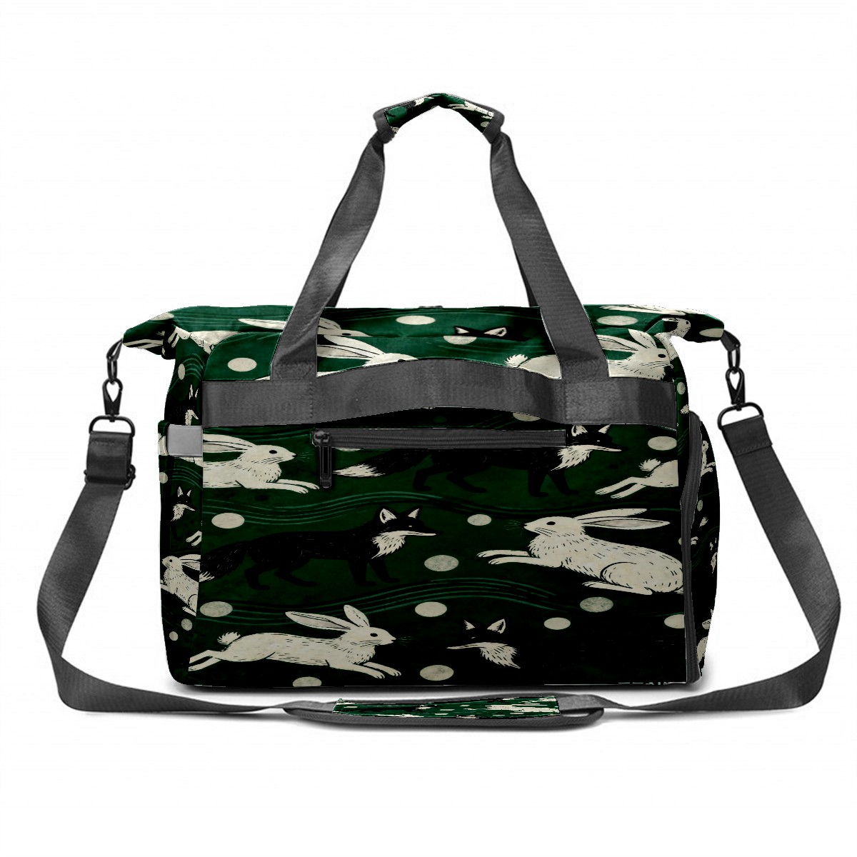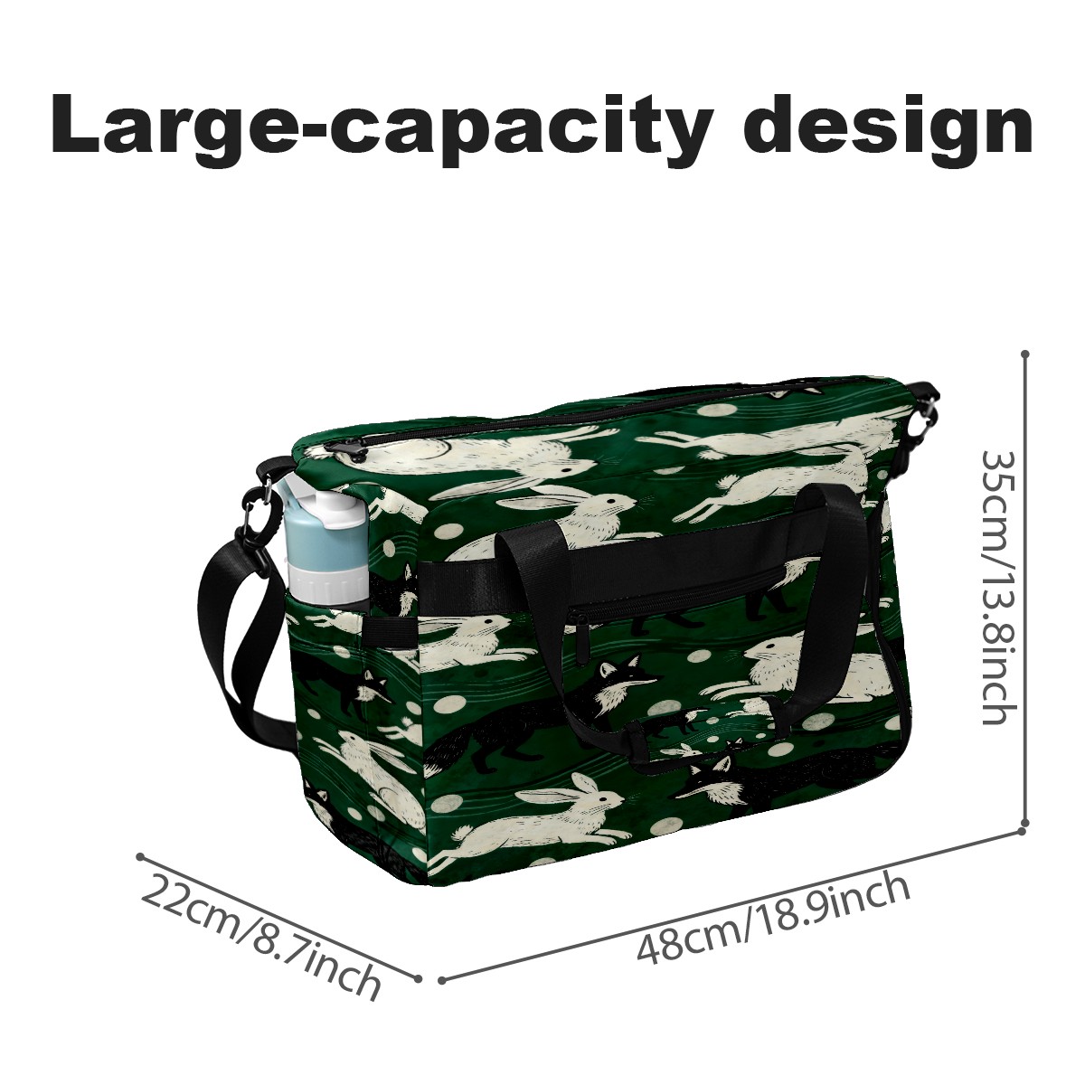 Lightweight Pickleball Tote Bag with Large Capacity, Shoe Compartment, Large Paddle Storage, Water Bottle Holder & Fence Hook for Women & Men Dark Green Rabbit Pattern
