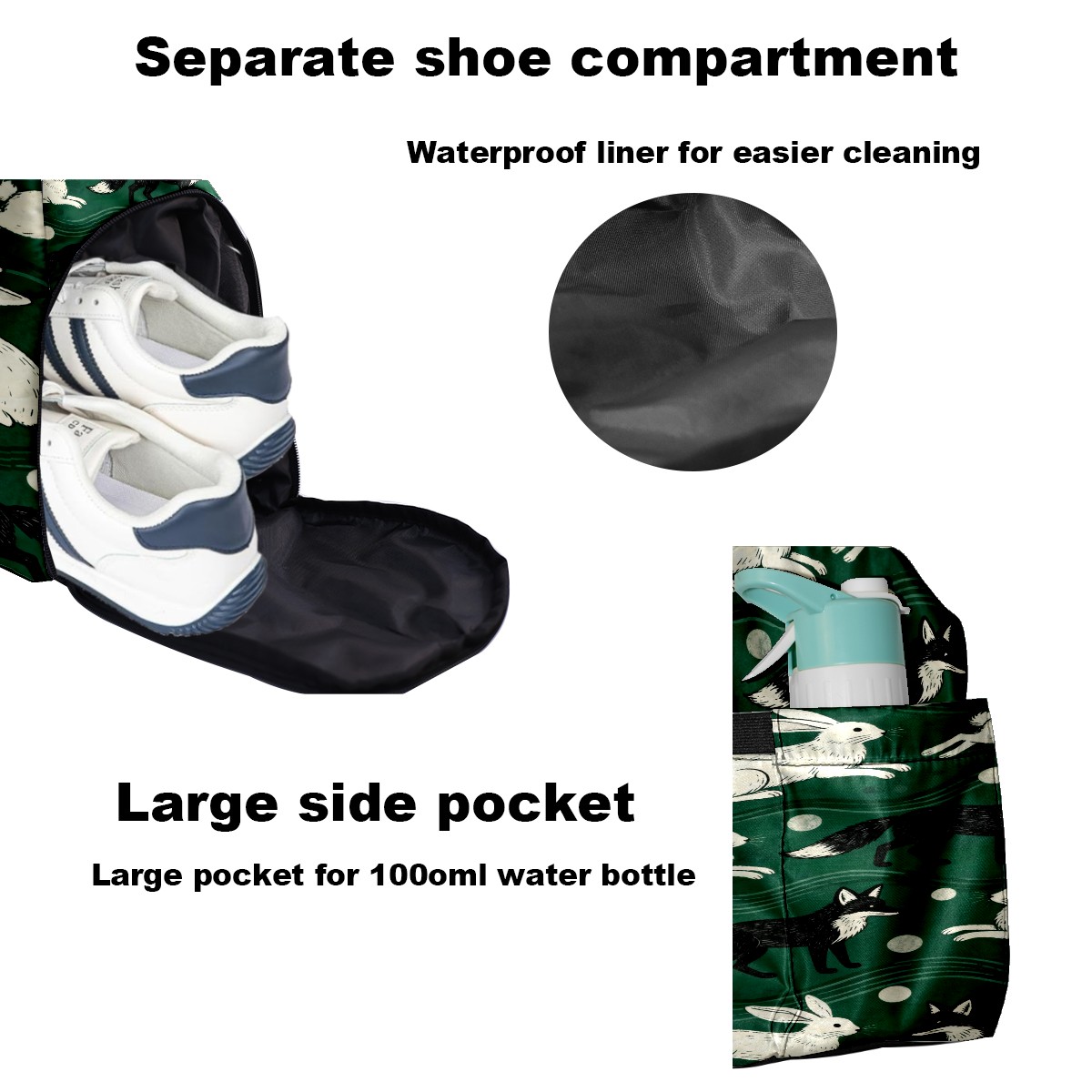 • <p>Multifunctional Gym Travel Bag Made of Twill Fabric 22cm x 48cm x 35cm (8.7in x 18.9in x 13.8in) Made of lightweight and durable twill fabric, this bag is perfect for an active lifestyle. The spacious main compartment easily holds clothing, towels, and a full set of gym gear. A smart pocket precisely stores your phone, earphones, and gym membership card. A ventilated shoe compartment can hold size 10 athletic shoes, and a waterproof wet bag isolates swimwear or sweaty clothing, effectively preventing odors and clutter. It's a professional gym bag suitable for spinning and strength training, a stylish everyday handbag, and can also meet diverse needs such as pickleball, weekend trips, and overnight stays. Combining functionality and style, it seamlessly integrates into various scenarios.<br></p>