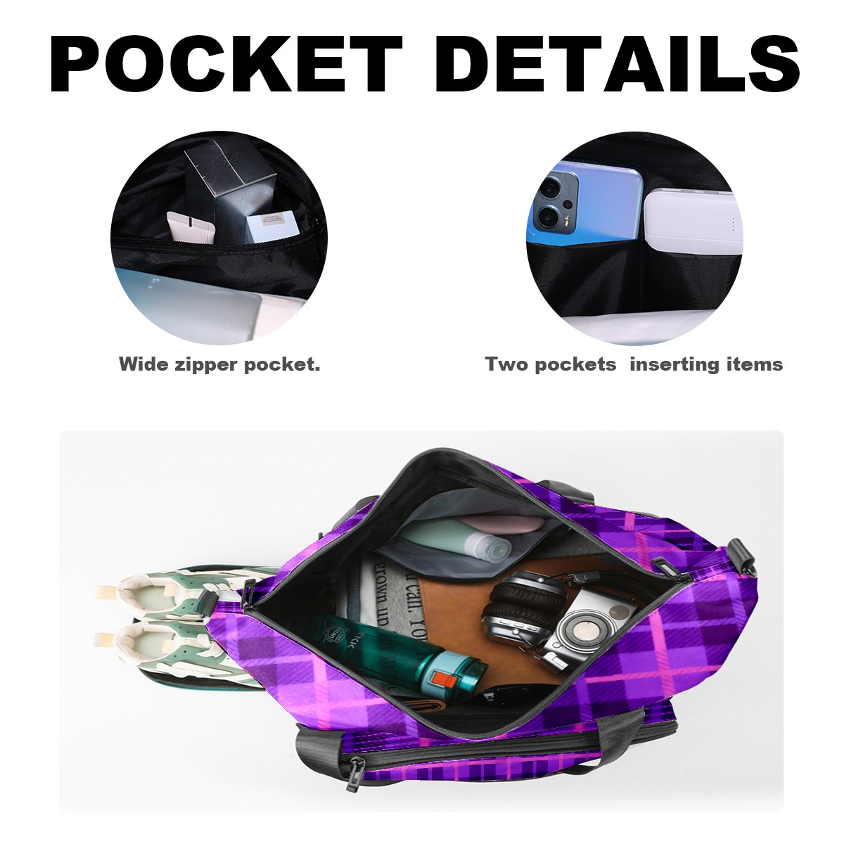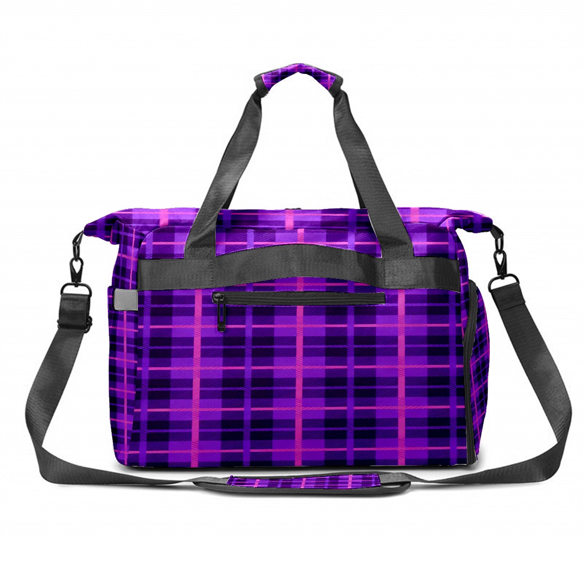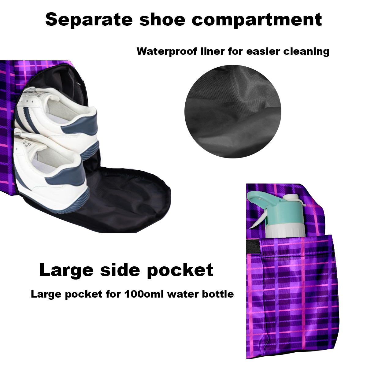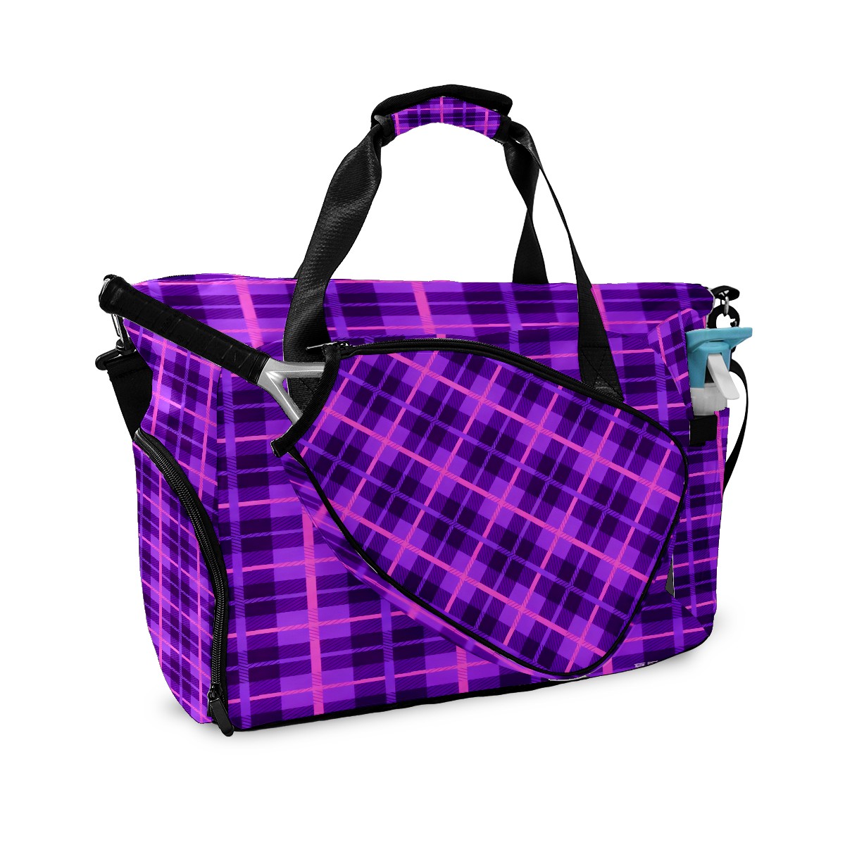 Lightweight Pickleball Tote Bag with Large Capacity, Shoe Compartment, Large Paddle Storage, Water Bottle Holder & Fence Hook for Women & Men Purple Plaid