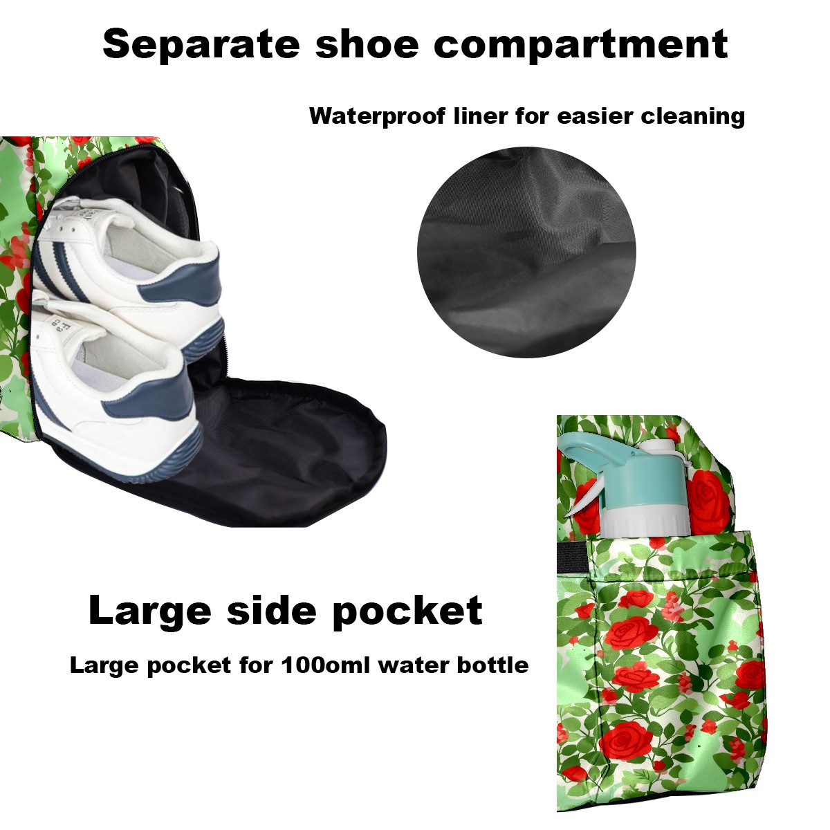 • <p>Multifunctional Gym Travel Bag Made of Twill Fabric 22cm x 48cm x 35cm (8.7in x 18.9in x 13.8in) Made of lightweight and durable twill fabric, this bag is perfect for an active lifestyle. The spacious main compartment easily holds clothing, towels, and a full set of gym gear. A smart pocket precisely stores your phone, earphones, and gym membership card. A ventilated shoe compartment can hold size 10 athletic shoes, and a waterproof wet bag isolates swimwear or sweaty clothing, effectively preventing odors and clutter. It's a professional gym bag suitable for spinning and strength training, a stylish everyday handbag, and can also meet diverse needs such as pickleball, weekend trips, and overnight stays. Combining functionality and style, it seamlessly integrates into various scenarios.<br></p>