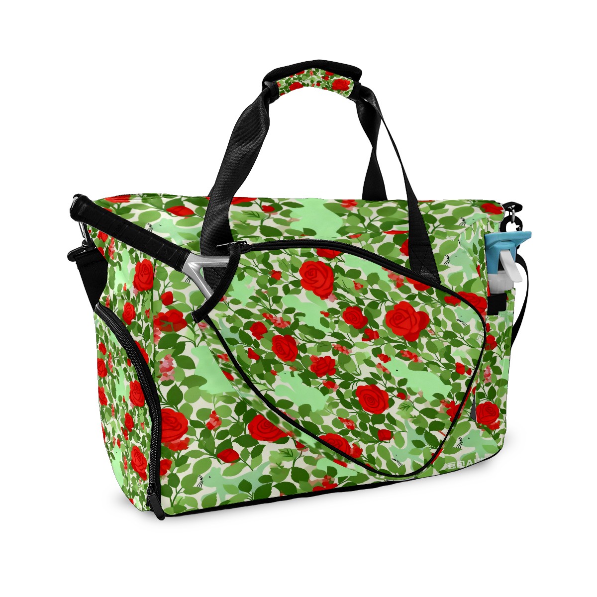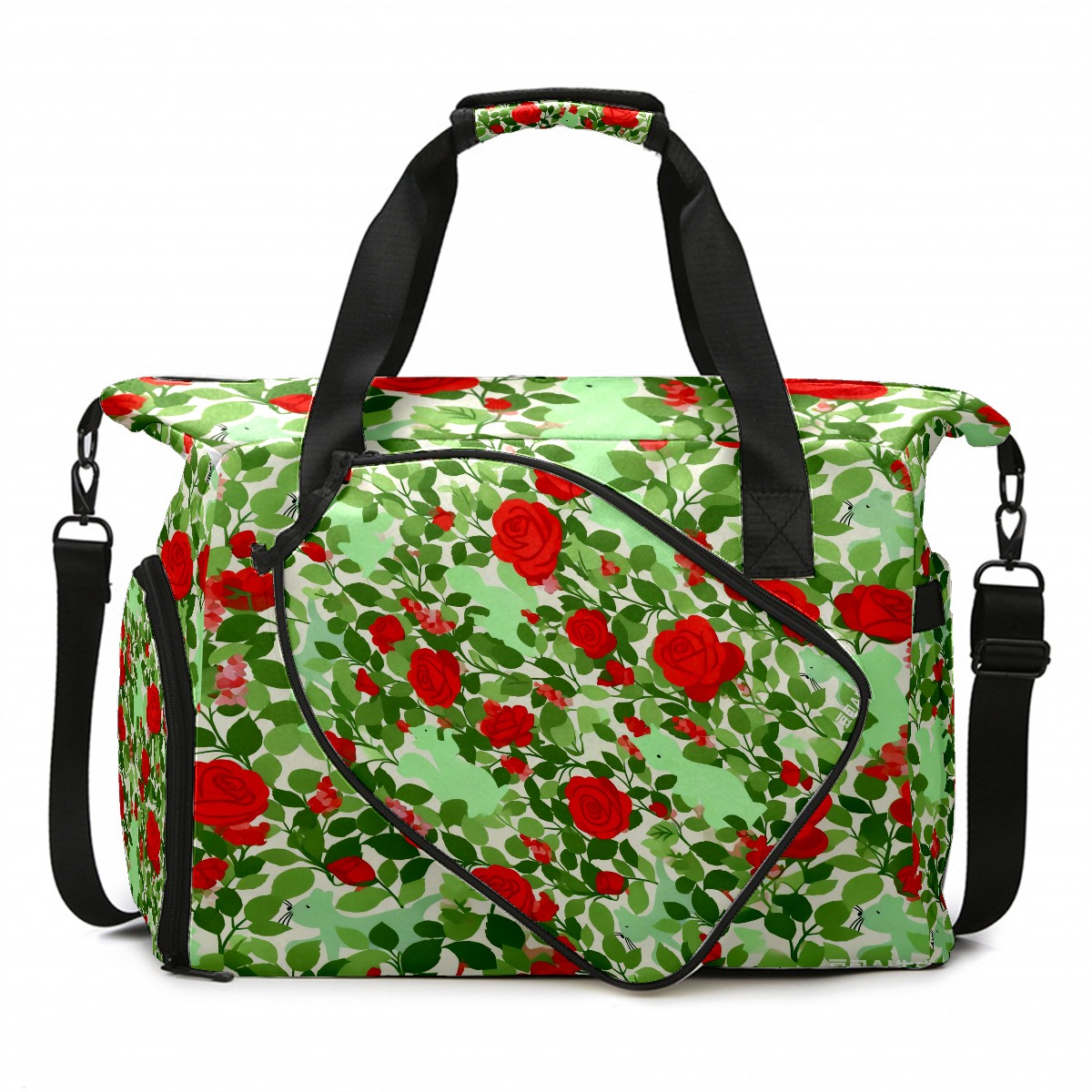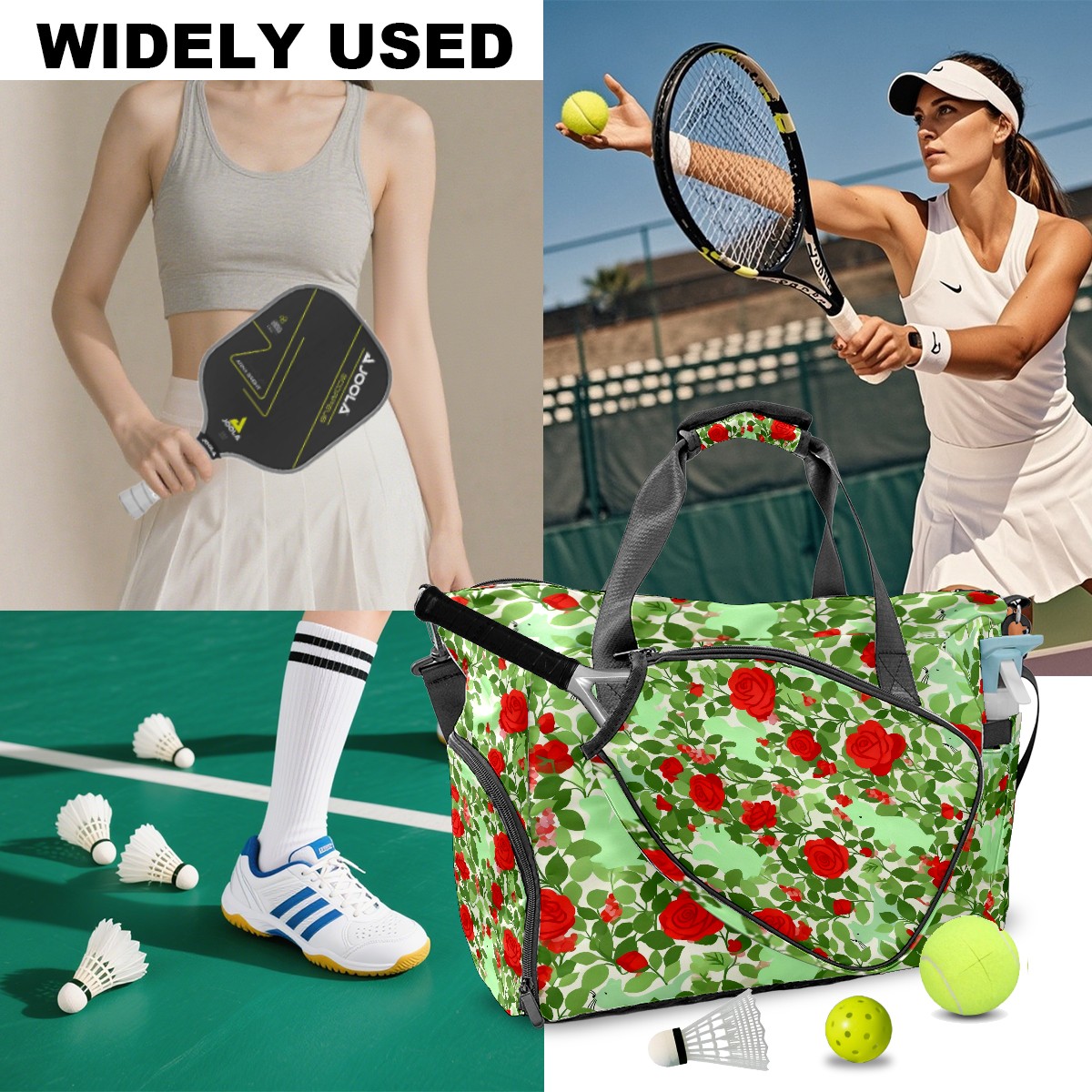 Lightweight Pickleball Tote Bag with Large Capacity, Shoe Compartment, Large Paddle Storage, Water Bottle Holder & Fence Hook for Women & Men Red Flower