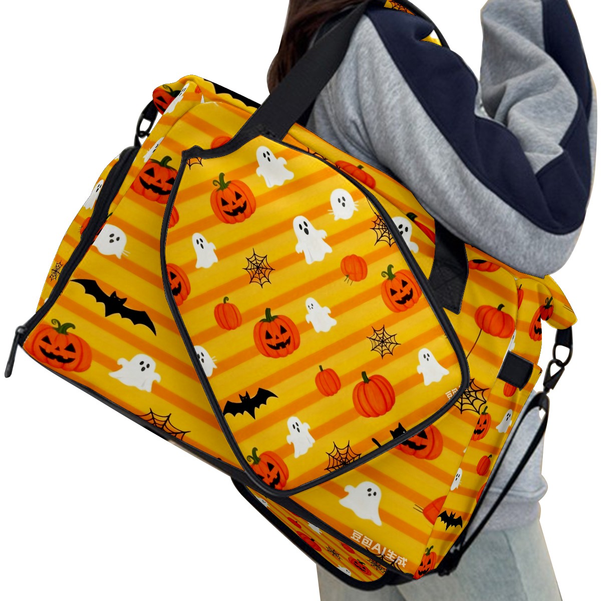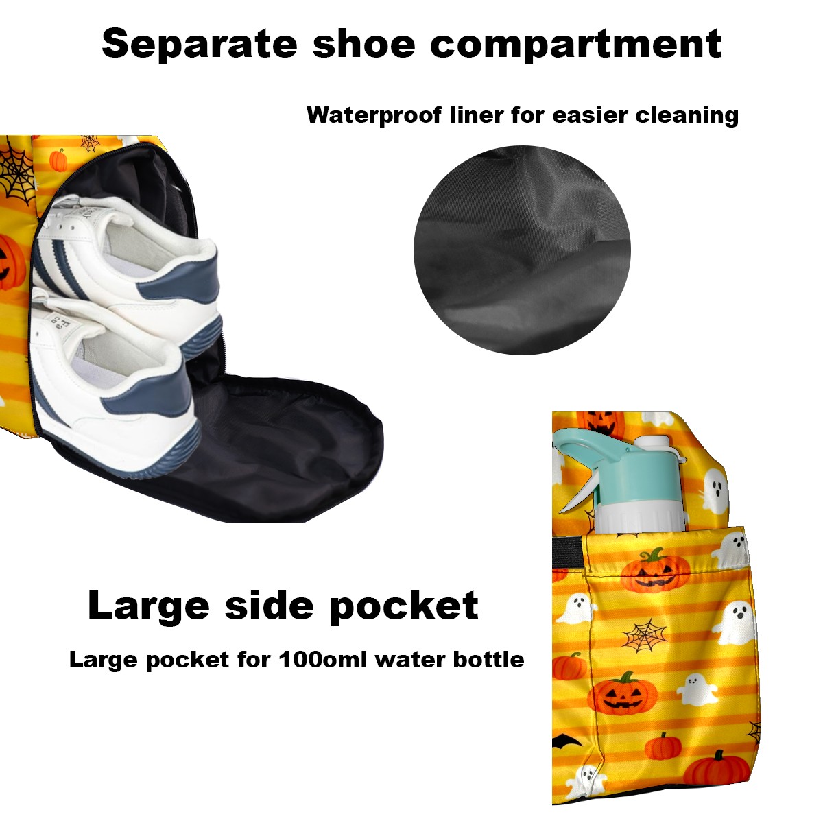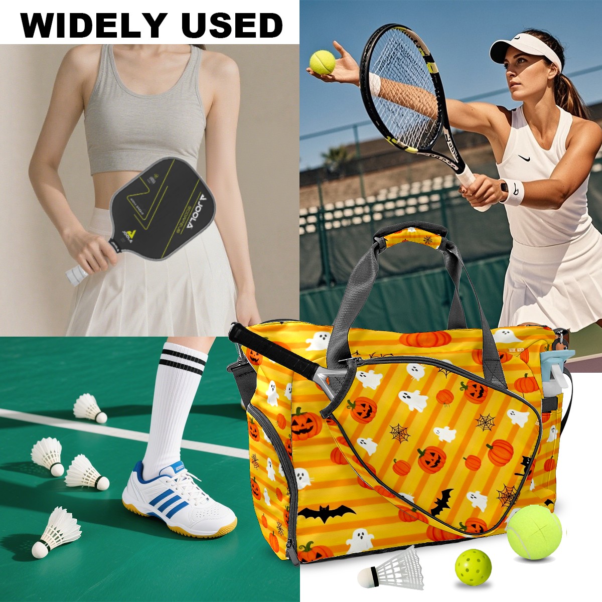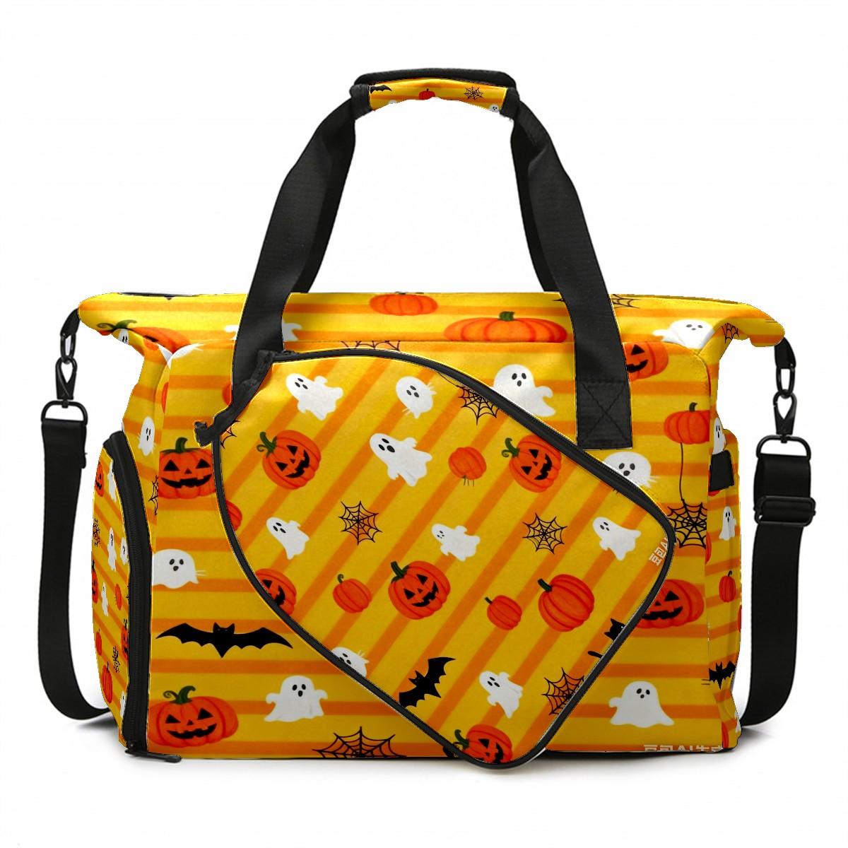 Lightweight Pickleball Tote Bag with Large Capacity, Shoe Compartment, Large Paddle Storage, Water Bottle Holder & Fence Hook for Women & Men Pumpkin Ghost