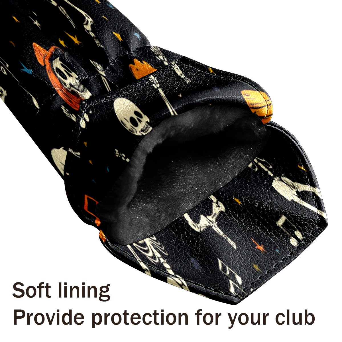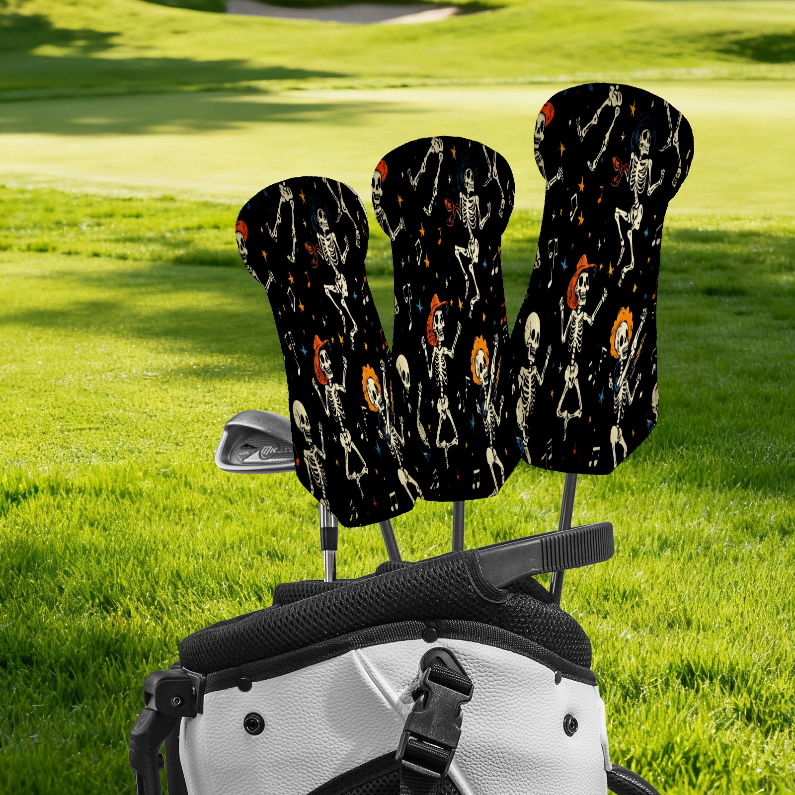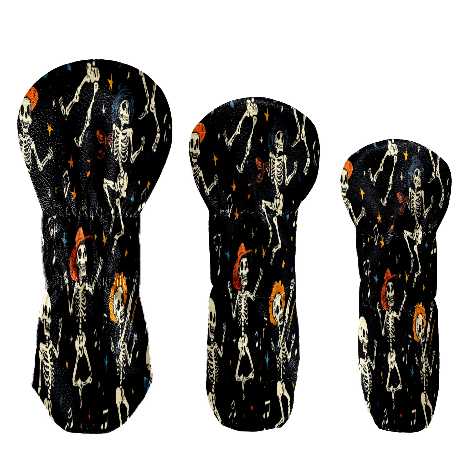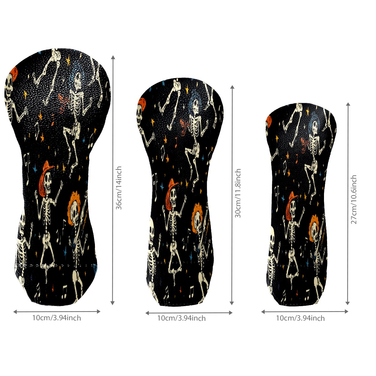 Golf Club Cover Velvet Lining Suitable for the First Wood, Fairway Wood and Hybrid Club Head Cover Golf Gifts Cartoon Skull Dancing