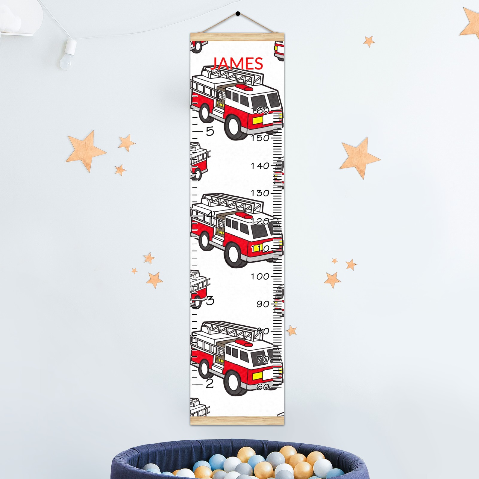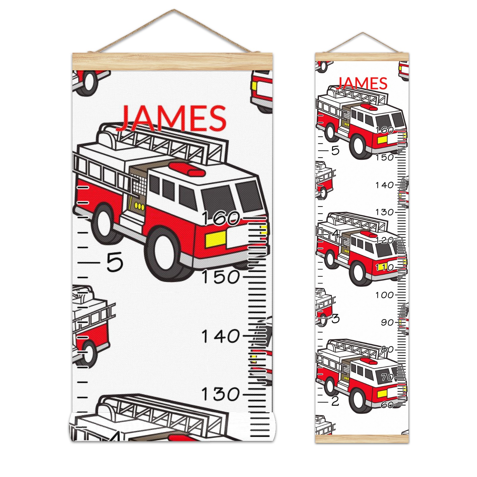 Personalized Kids Name Growth Chart Ruler for Wall Wood Frame Canvas Height Measure Chart 13.4x56 in Hanging Growth Chart Fire Truck11.10-1 Boys Girls Room Decor
