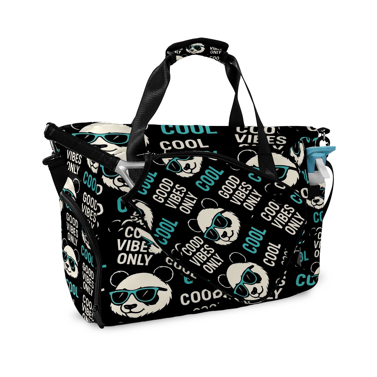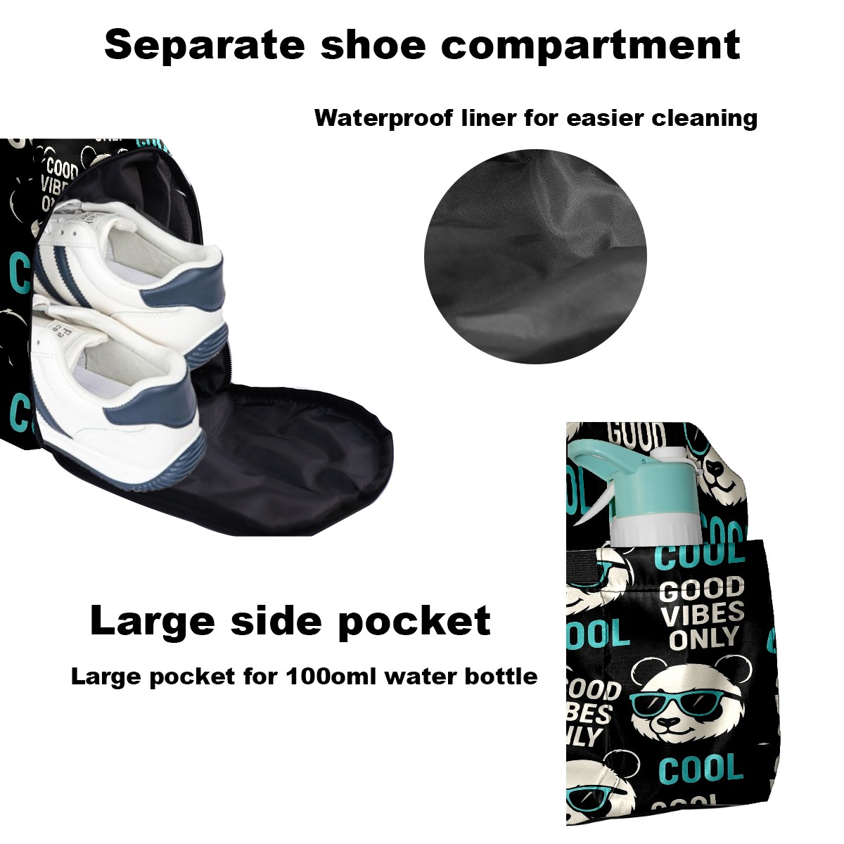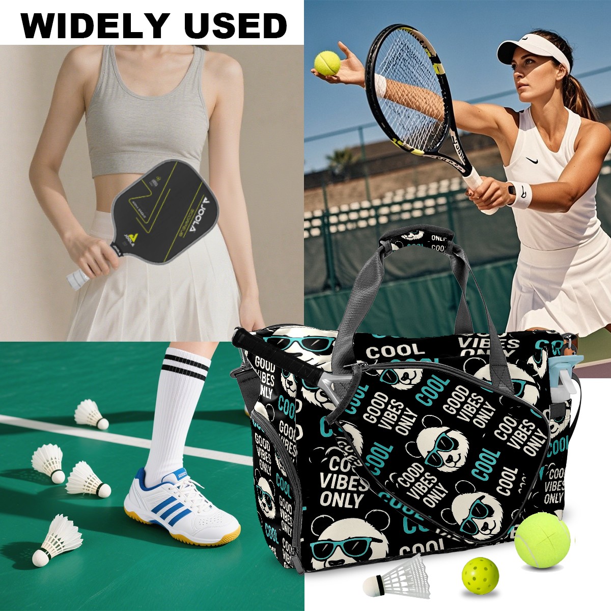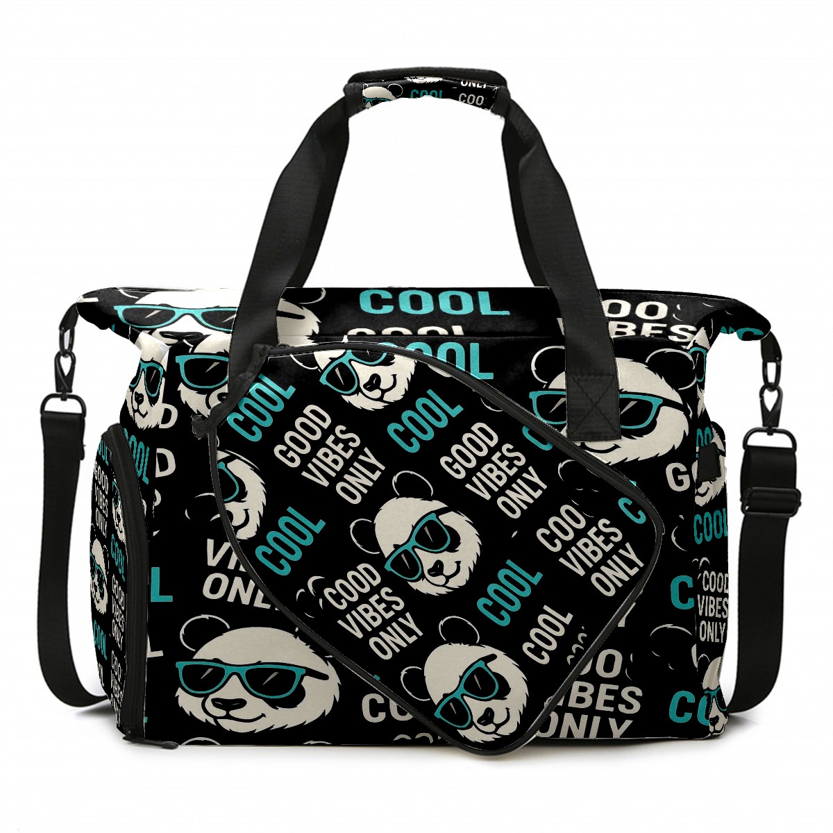 Women's Tennis Bag Large Capacity - Ventilated Shoe Compartment & Waterproof Wet Pocket, Multi-Functional Gym Duffel Bag for Tennis, Yoga, Travel (Black Funny Pandas)
