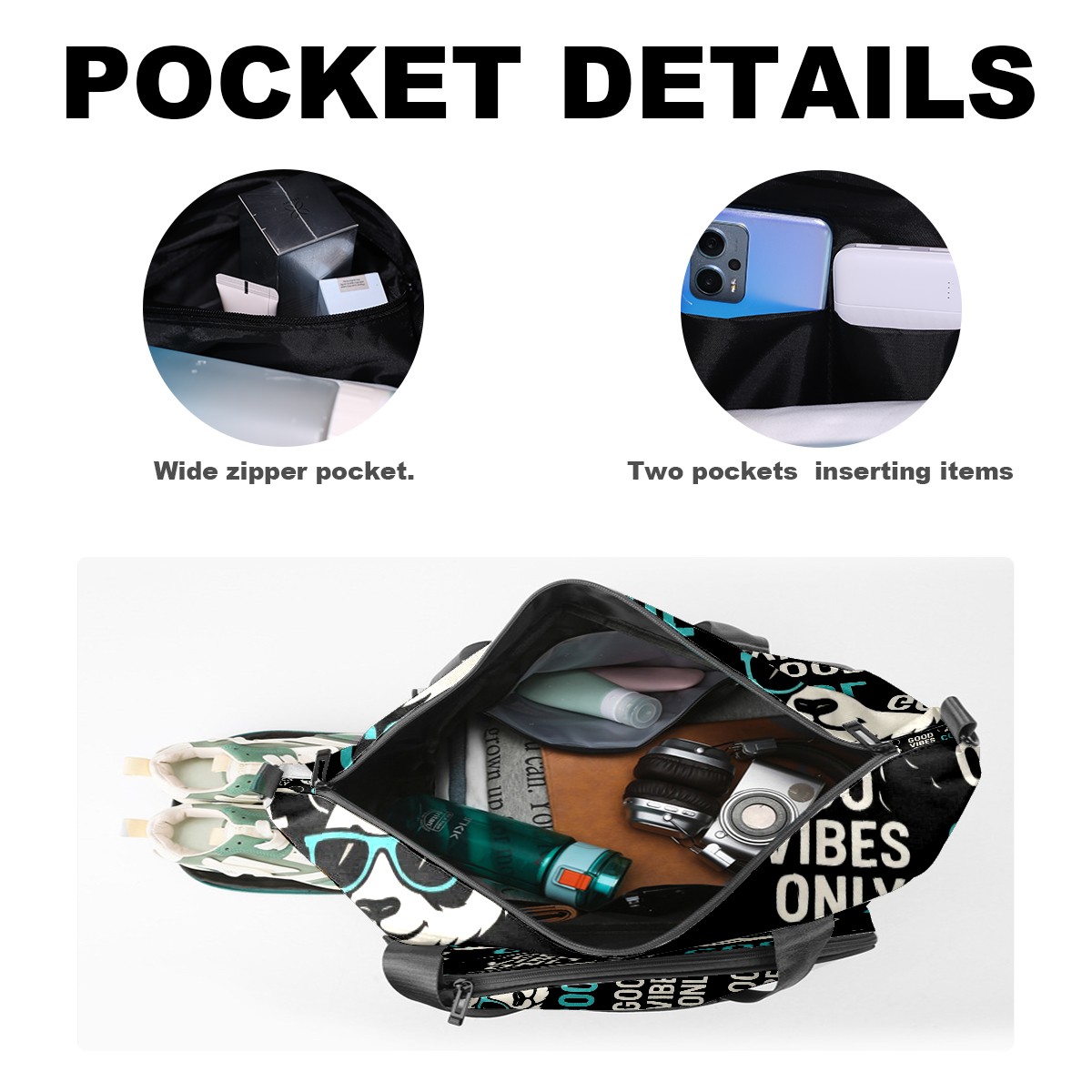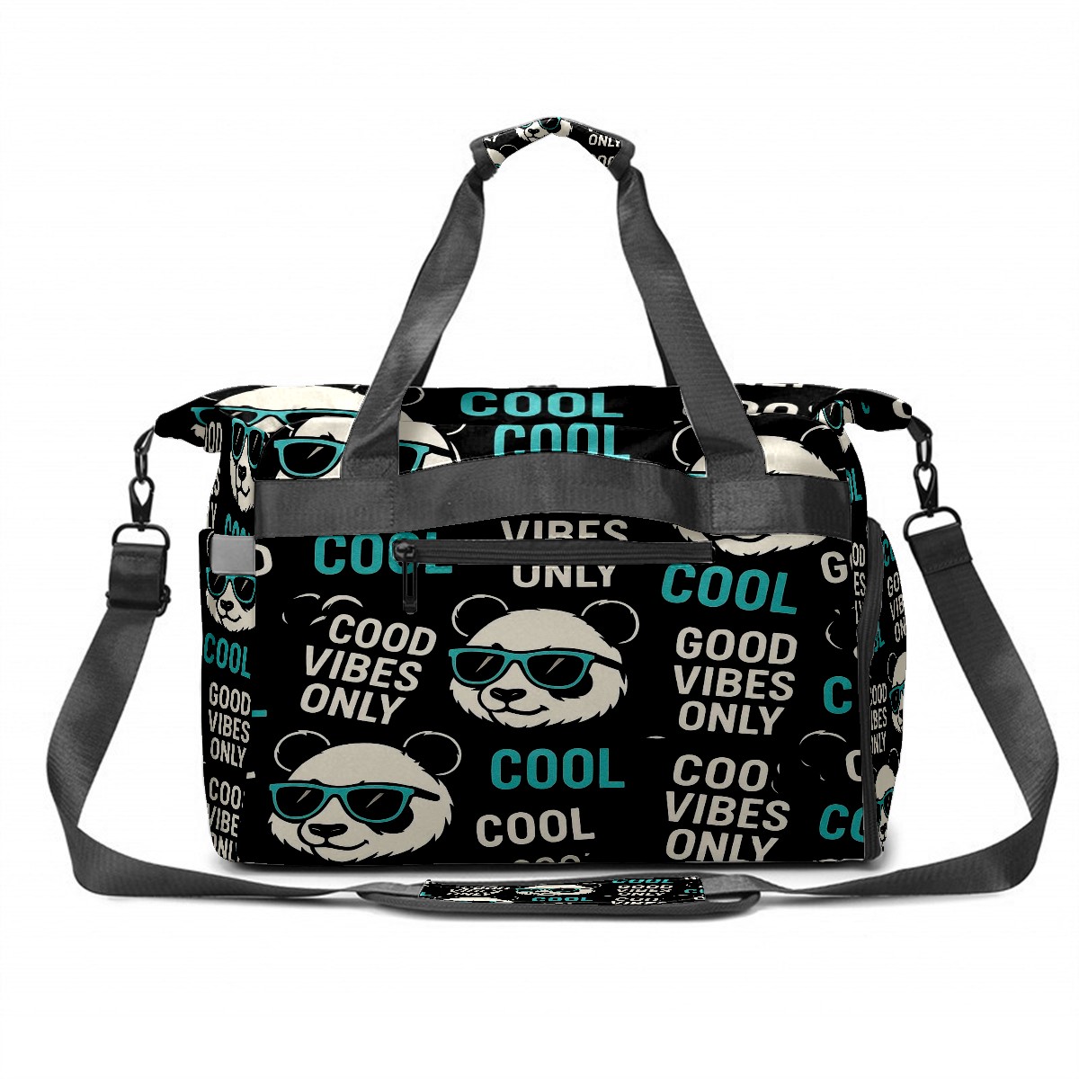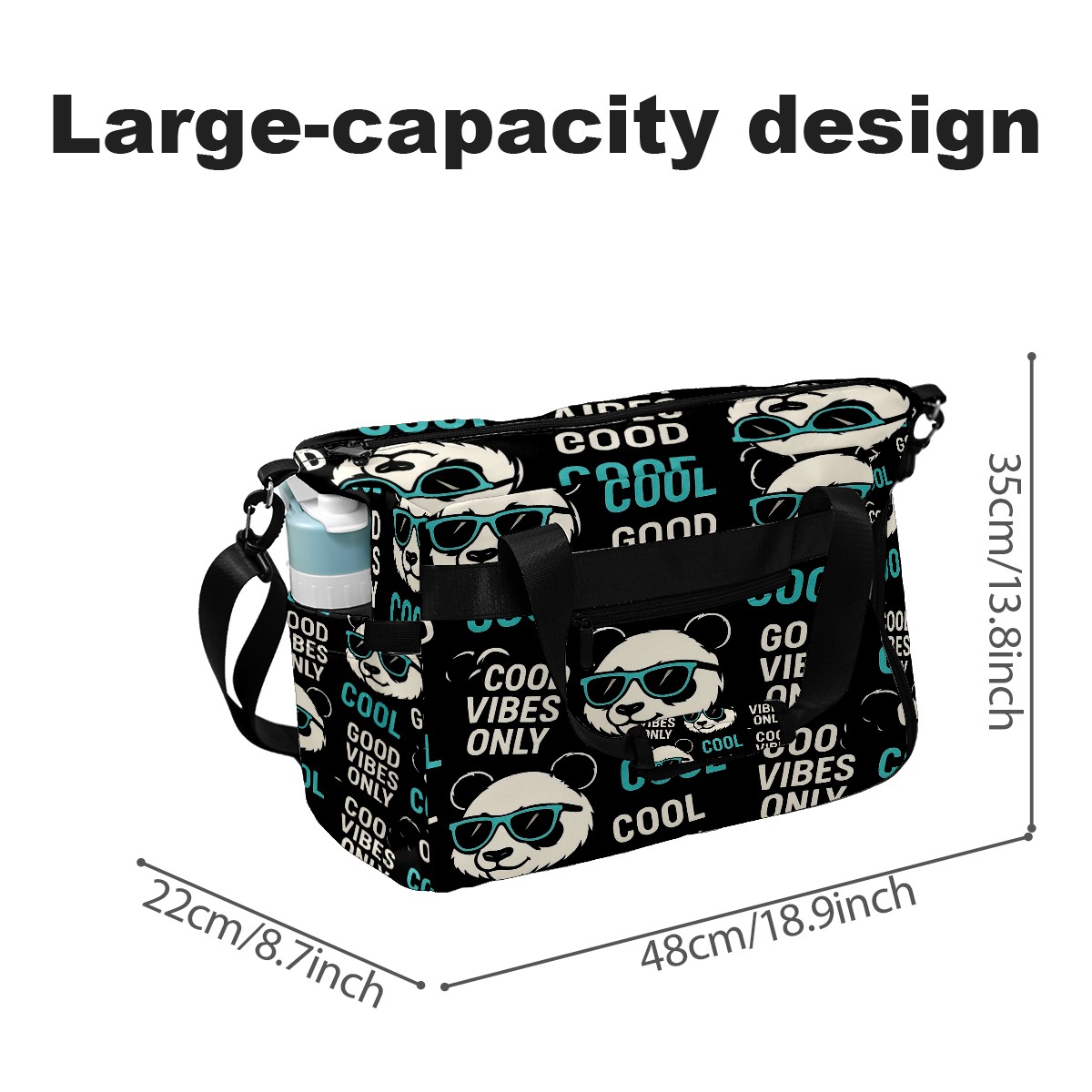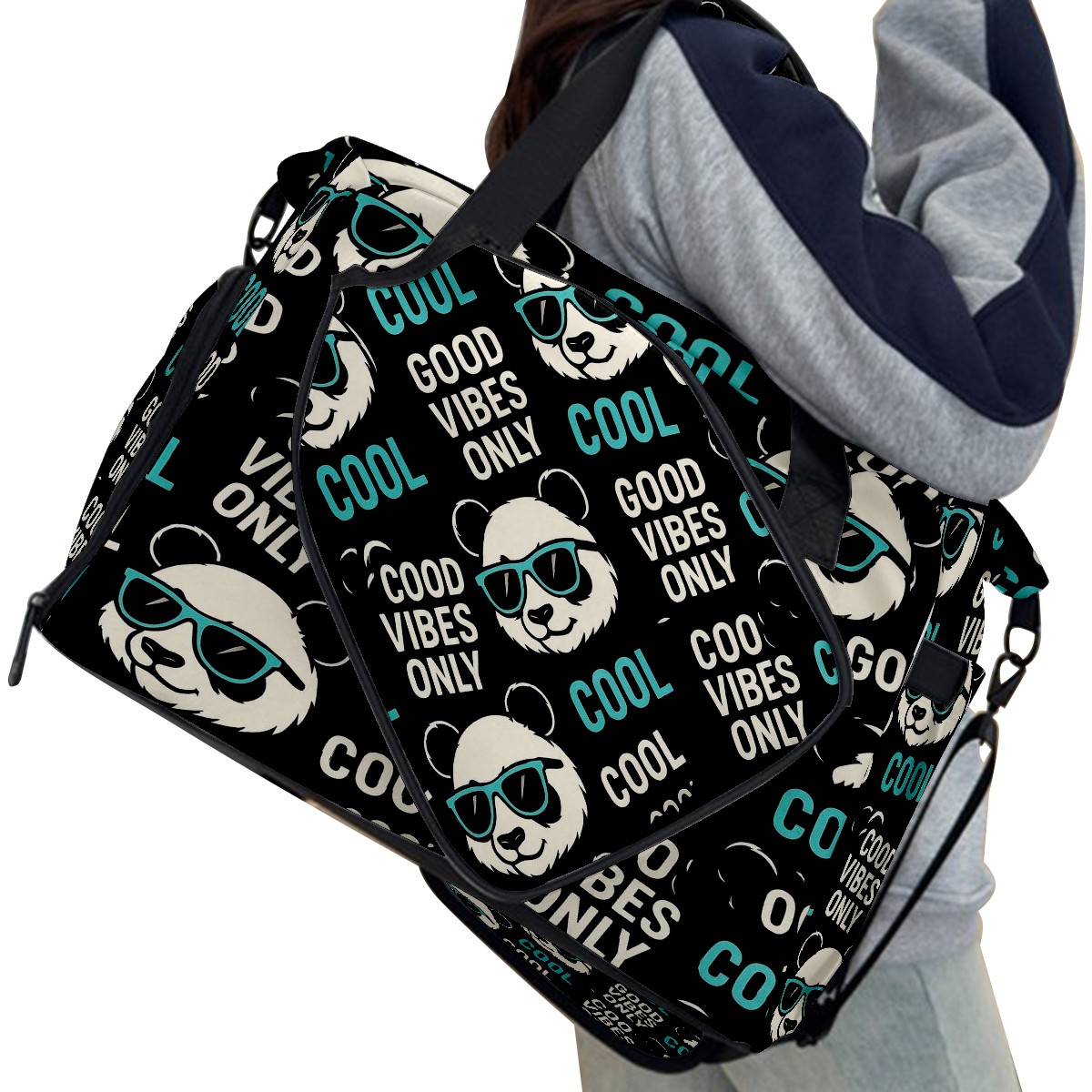 Women's Tennis Bag Large Capacity - Ventilated Shoe Compartment & Waterproof Wet Pocket, Multi-Functional Gym Duffel Bag for Tennis, Yoga, Travel (Black Funny Pandas)