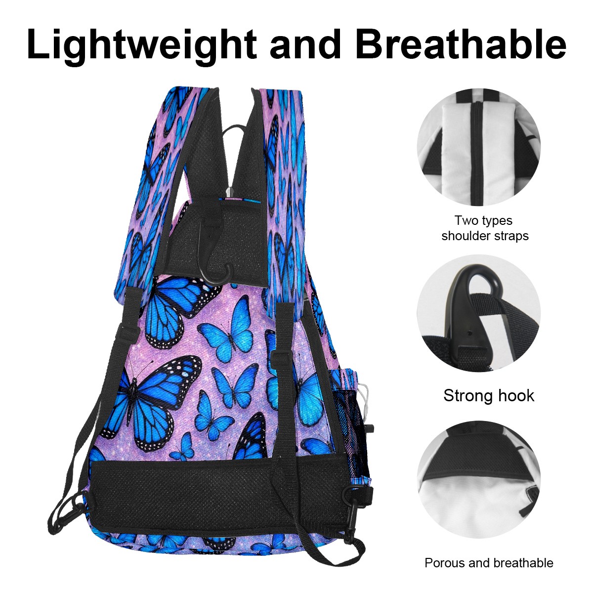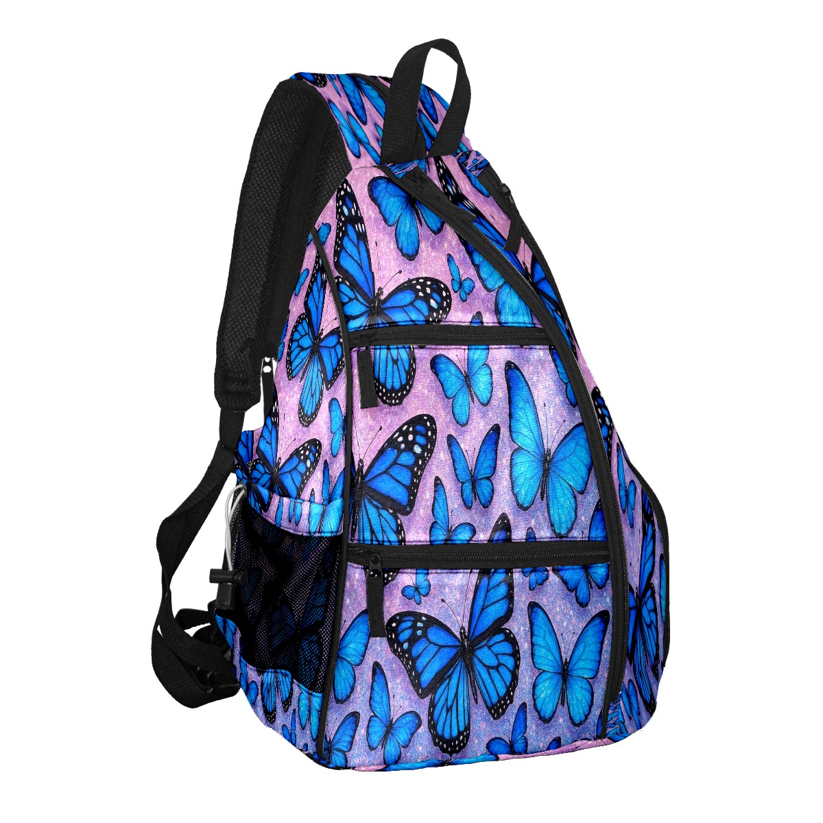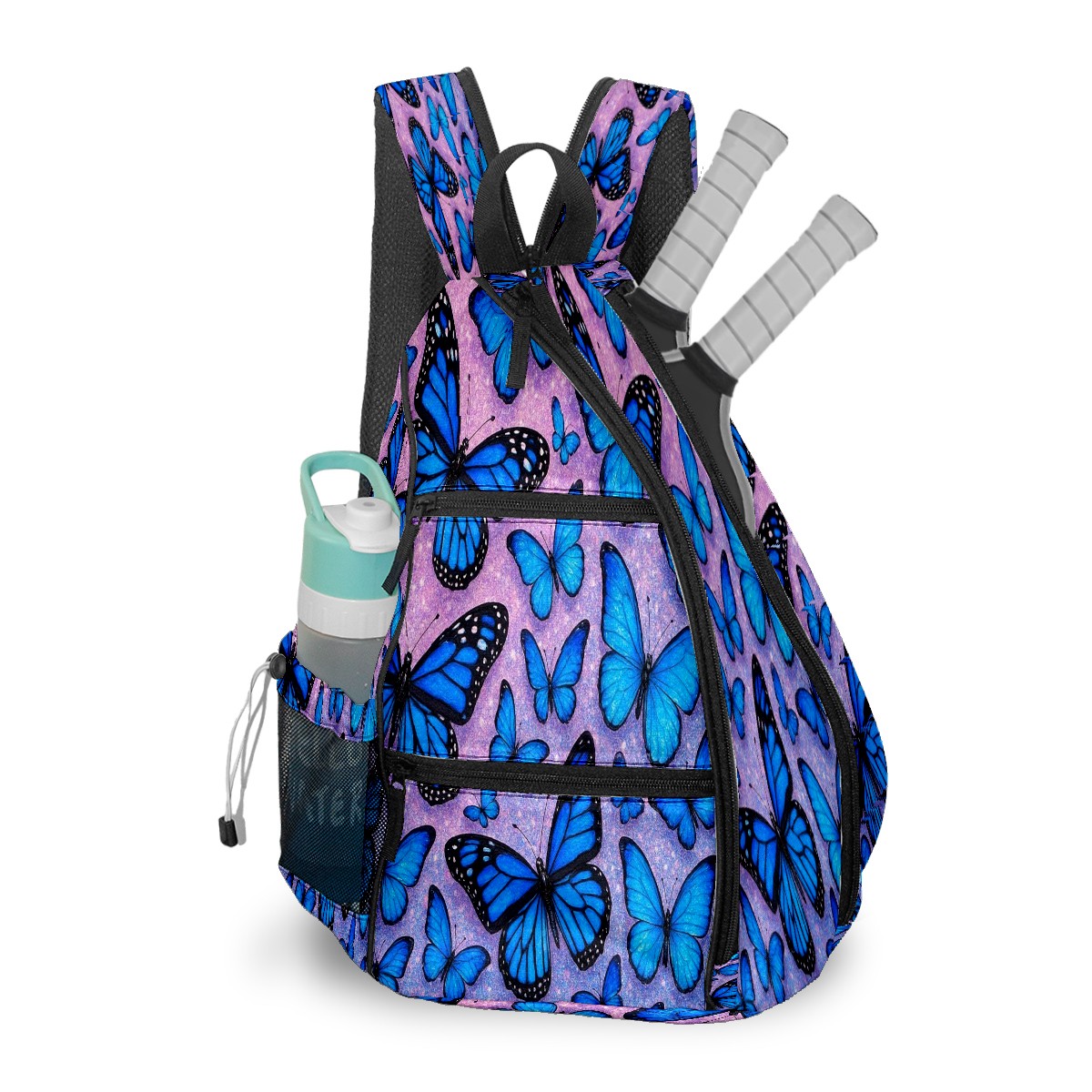Pickleball Bag with Padded Back, Blue Butterflies Multi-Compartment Paddle Backpack, Lightweight Nylon Sports Bag for Men & Women