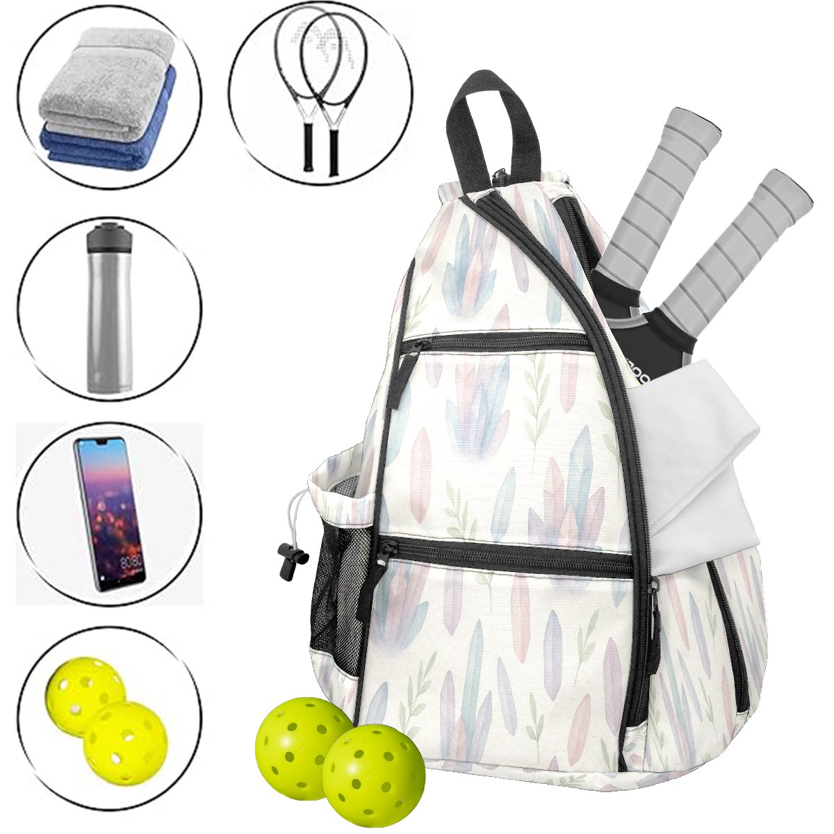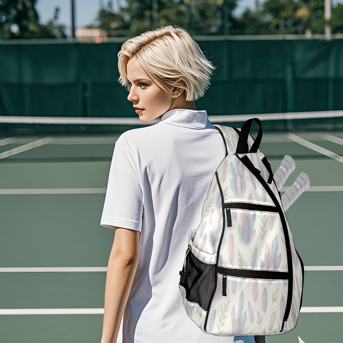 Pickleball Bag with Padded Back, Beige Plants Multi-Compartment Paddle Backpack, Lightweight Nylon Sports Bag for Men & Women