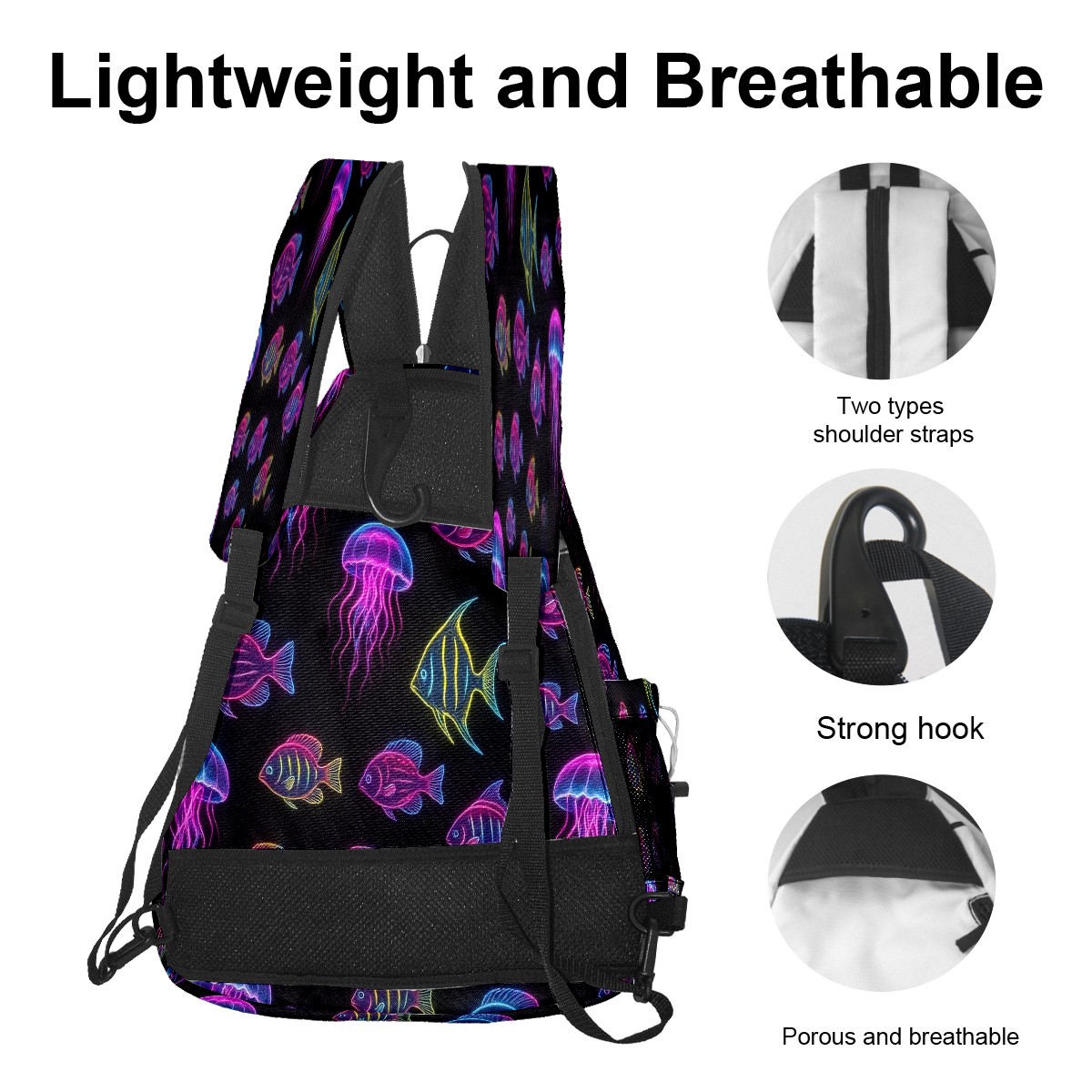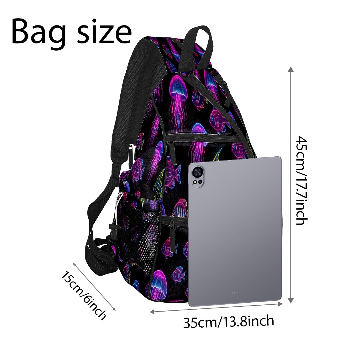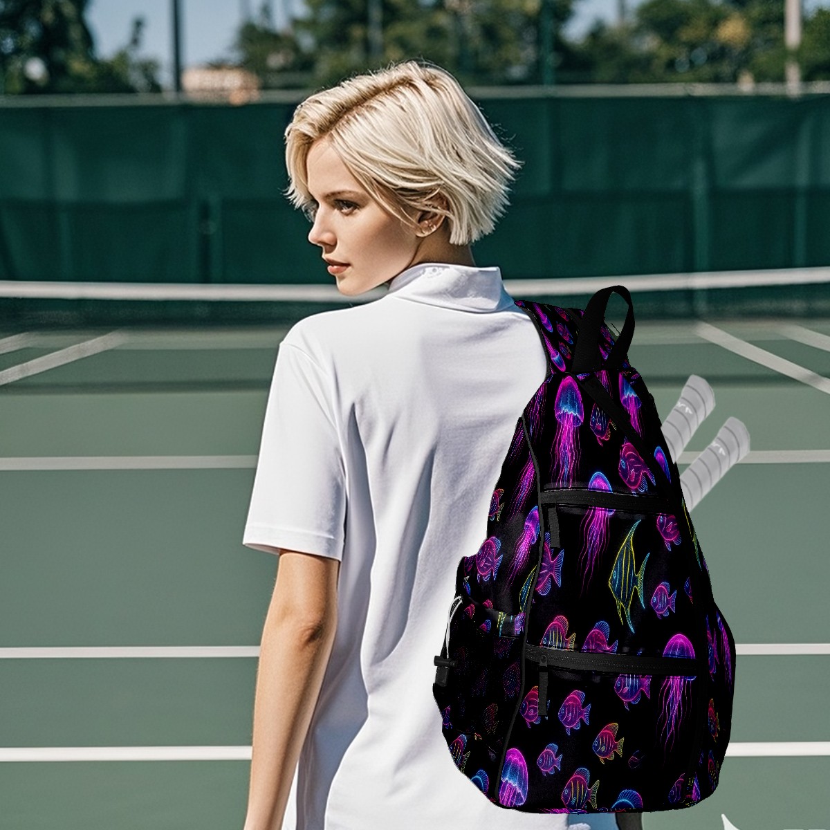 Pickleball Bag with Padded Back, Purple Jellyfish Fish Multi-Compartment Paddle Backpack, Lightweight Nylon Sports Bag for Men & Women