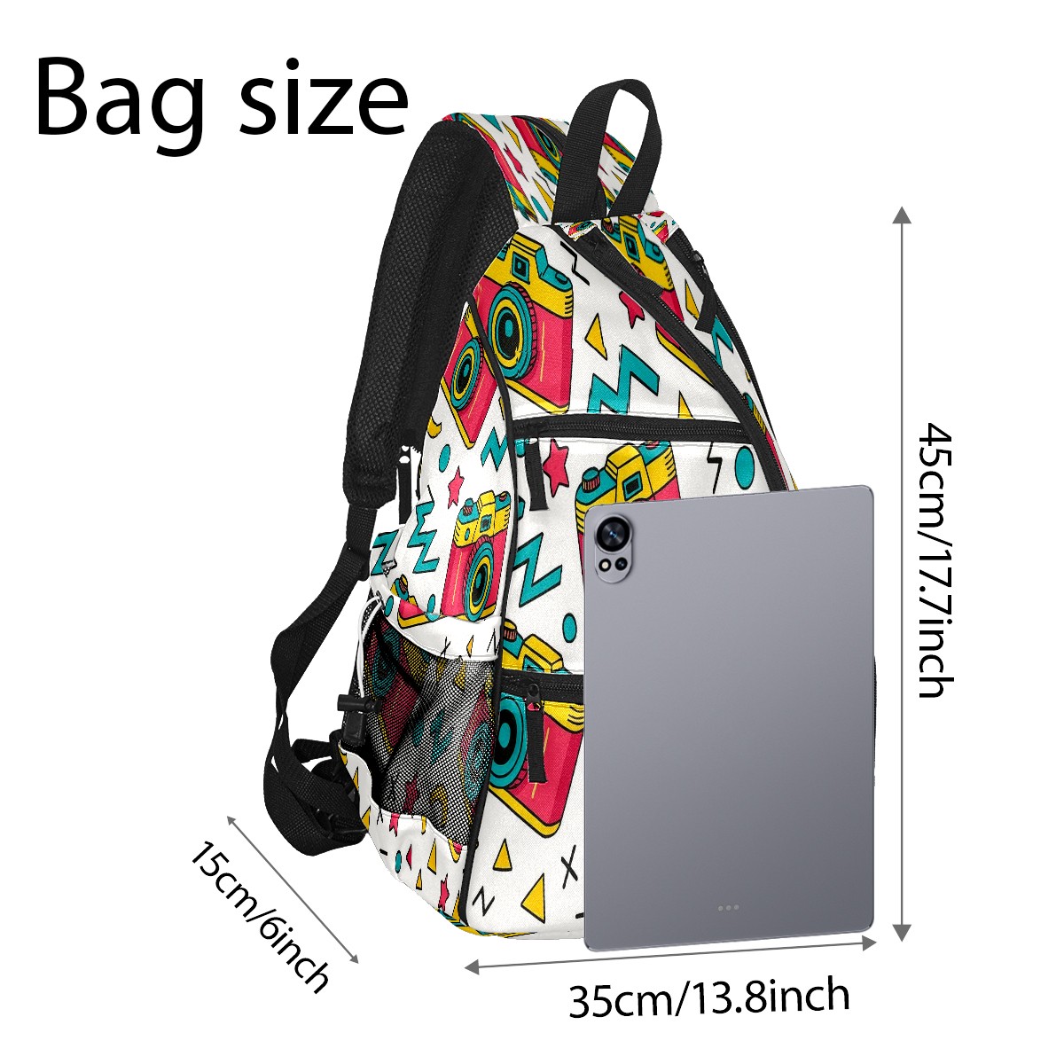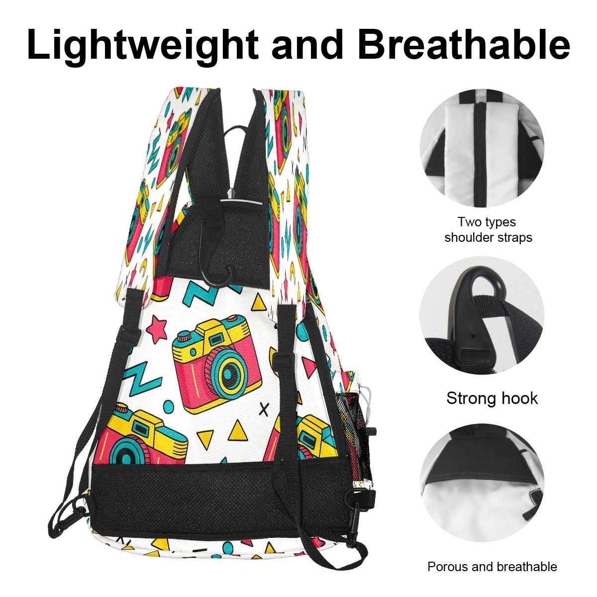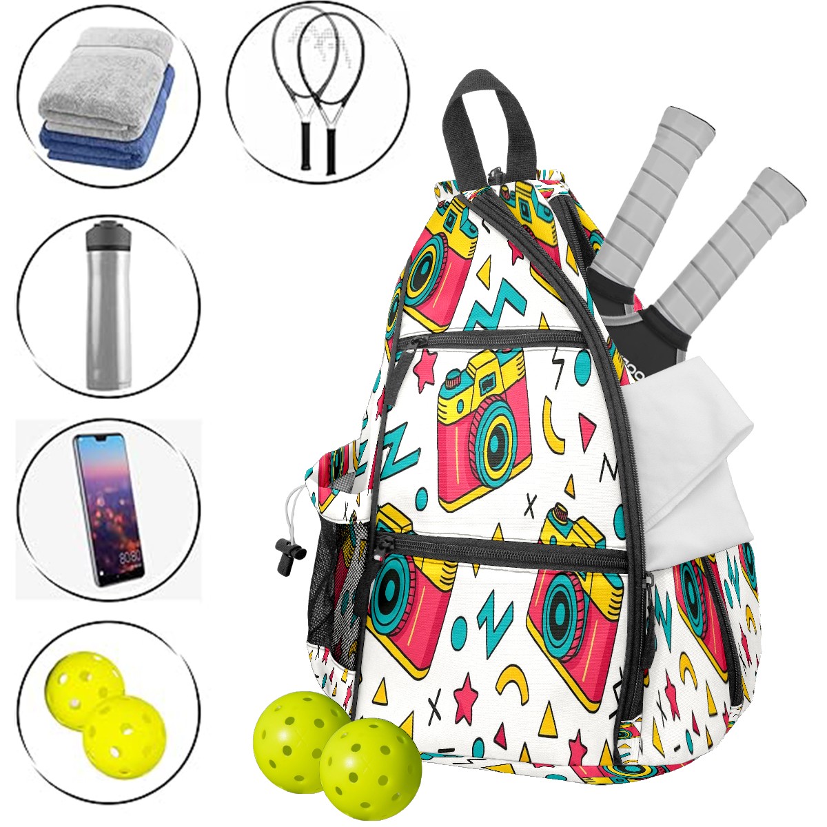 Pickleball Bag with Padded Back, Multicolor Retro Cameras Multi-Compartment Paddle Backpack, Lightweight Nylon Sports Bag for Men & Women
