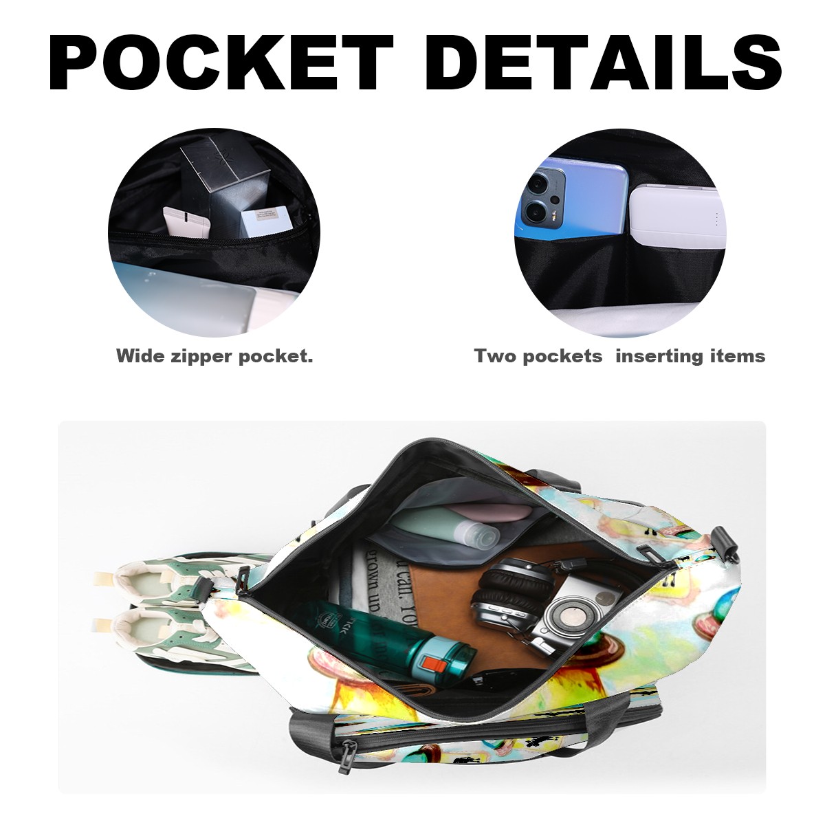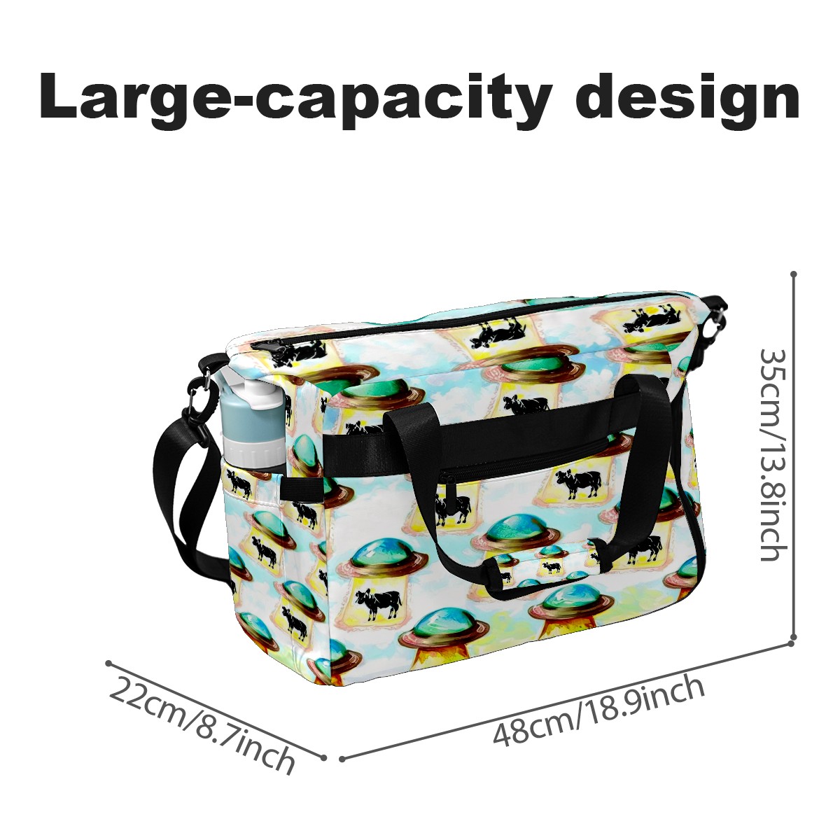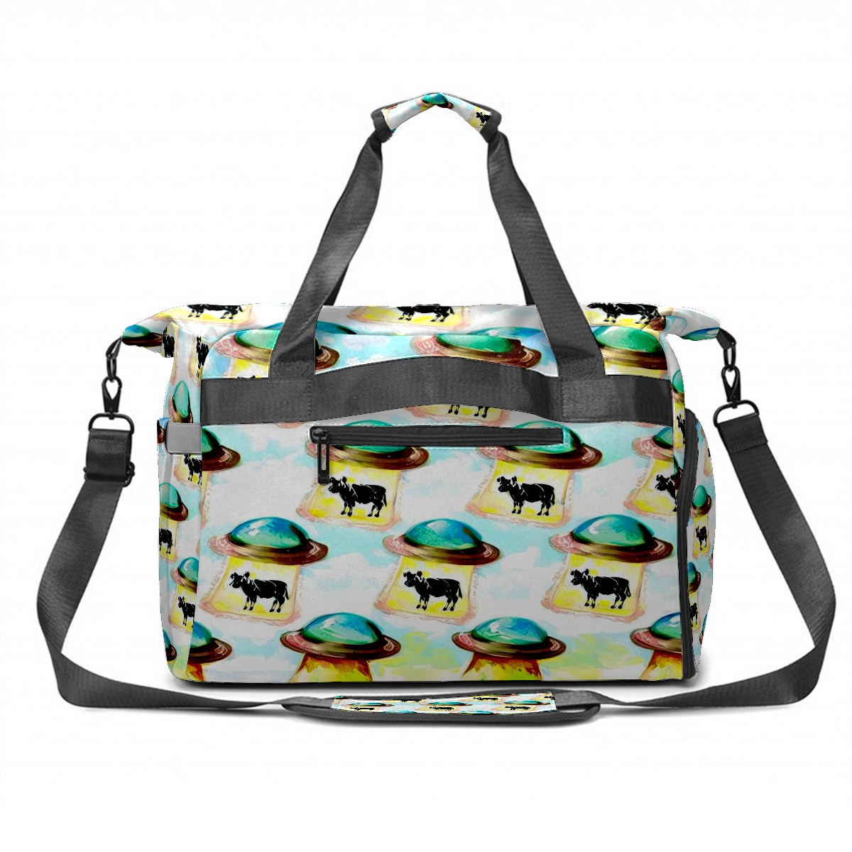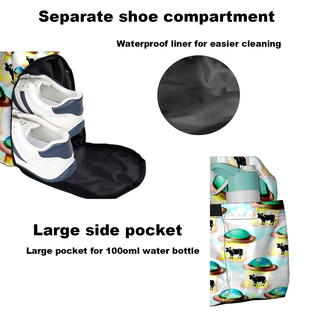 Women's Tennis Bag Large Capacity - Ventilated Shoe Compartment & Waterproof Wet Pocket, Multi-Functional Gym Duffel Bag for Tennis, Yoga, Travel (Green UFO Cows)