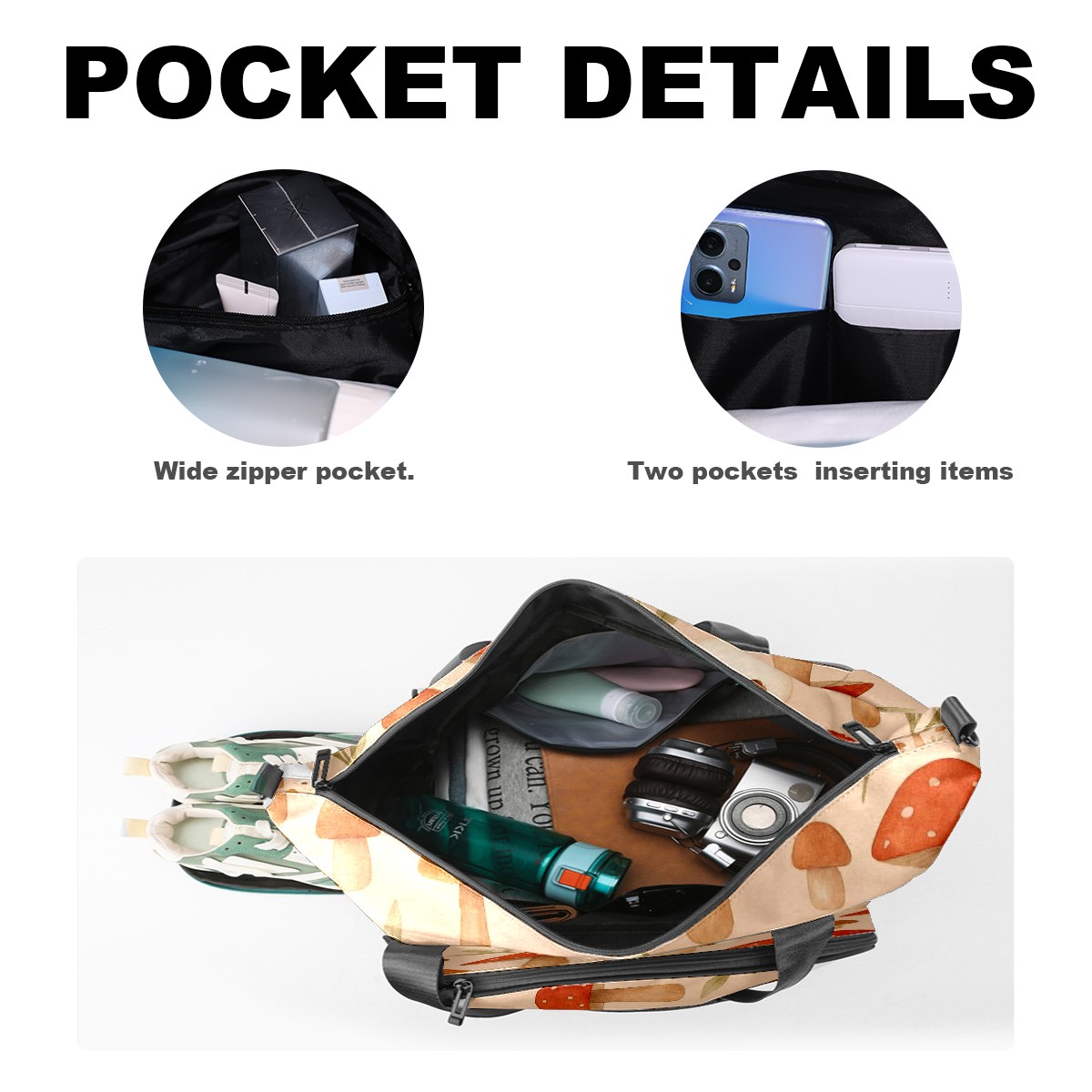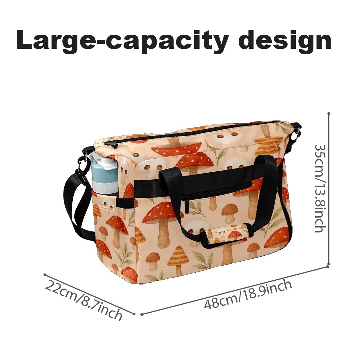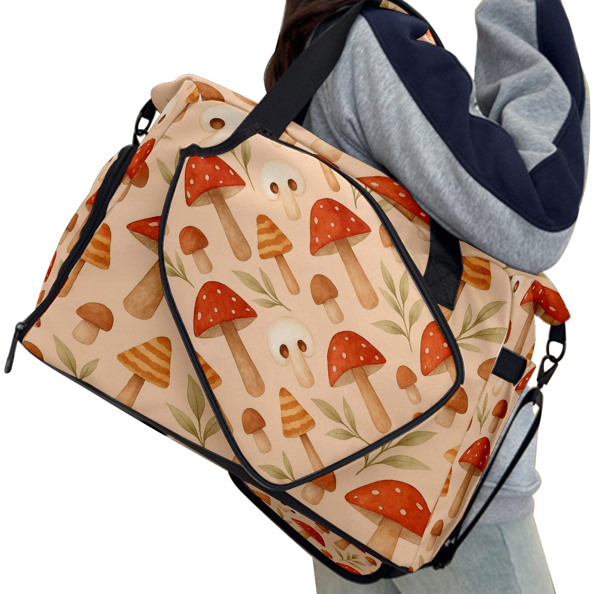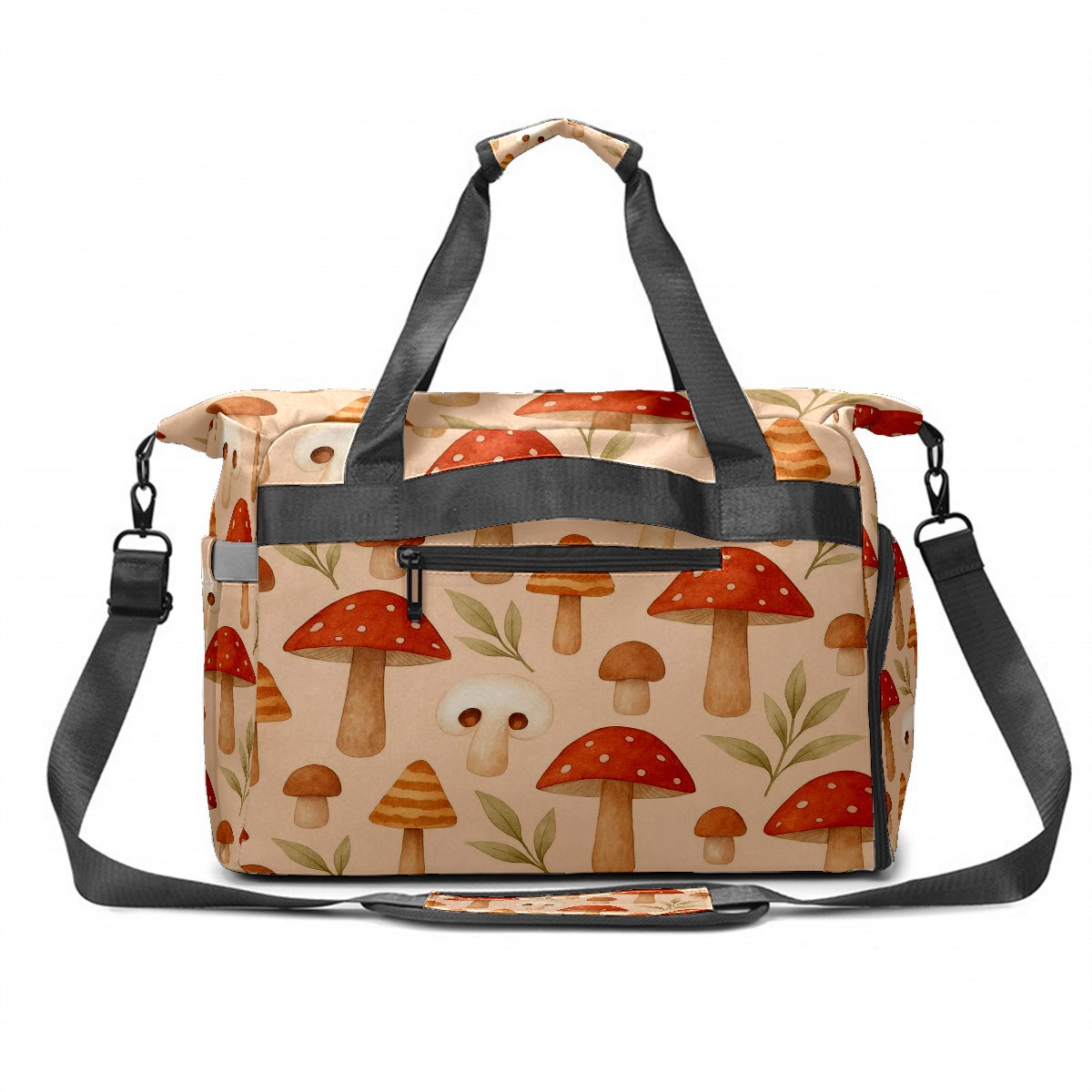 Women's Tennis Bag Large Capacity - Ventilated Shoe Compartment & Waterproof Wet Pocket, Multi-Functional Gym Duffel Bag for Tennis, Yoga, Travel (Beige Mushrooms)