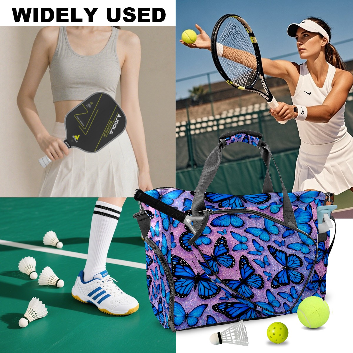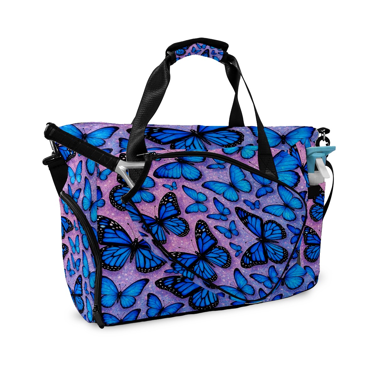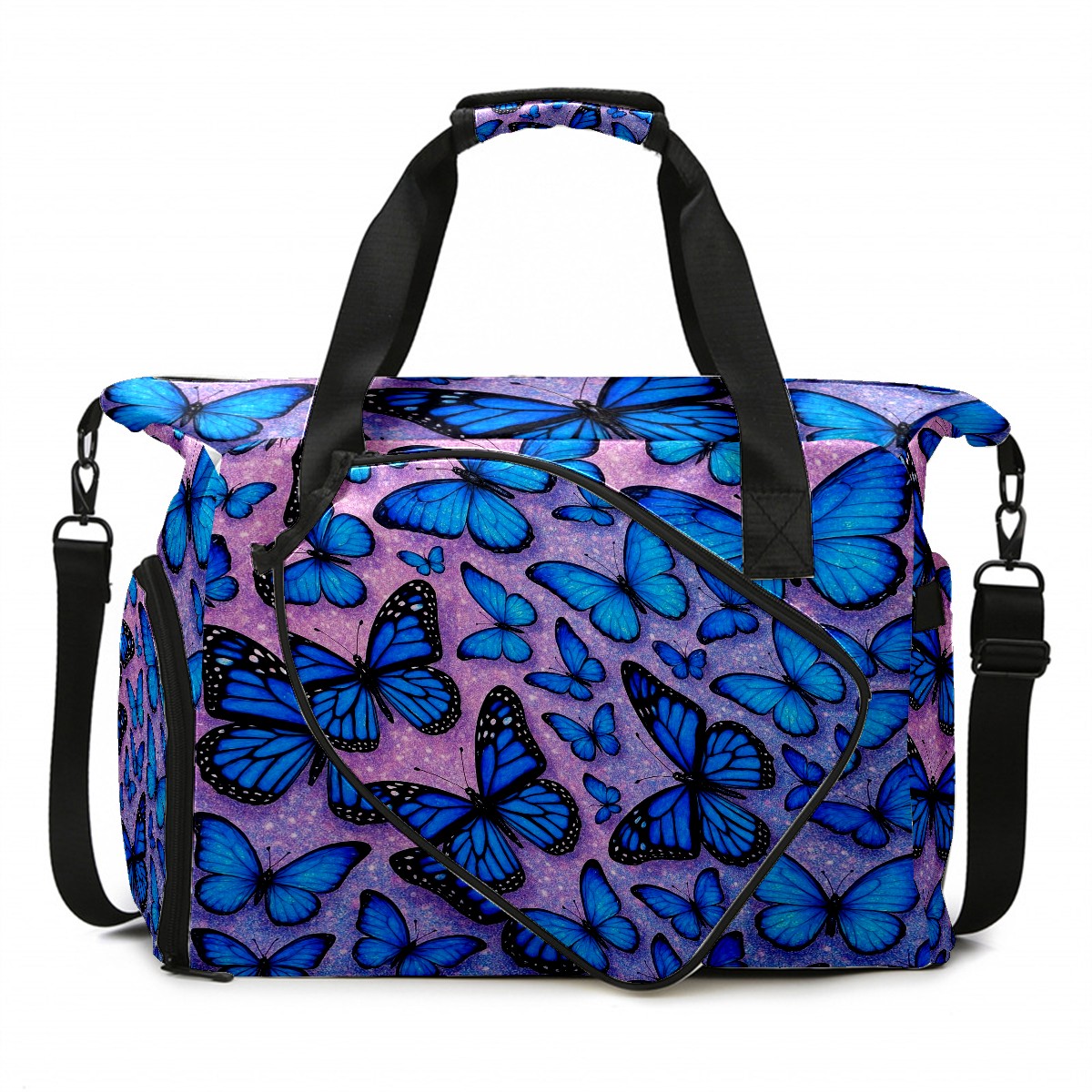 Women's Tennis Bag Large Capacity - Ventilated Shoe Compartment & Waterproof Wet Pocket, Multi-Functional Gym Duffel Bag for Tennis, Yoga, Travel (Blue Butterflies)