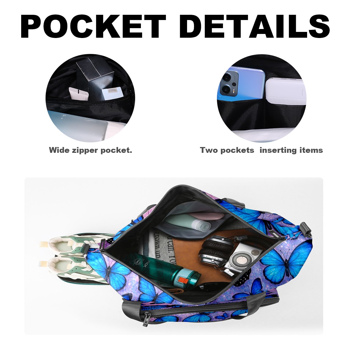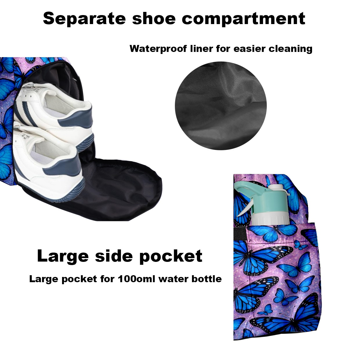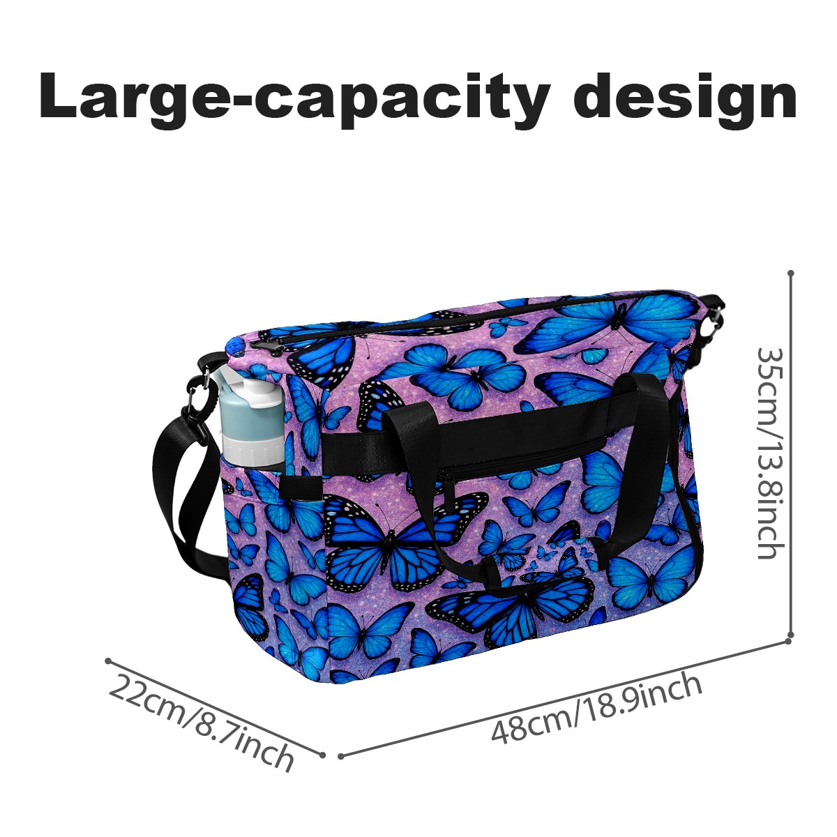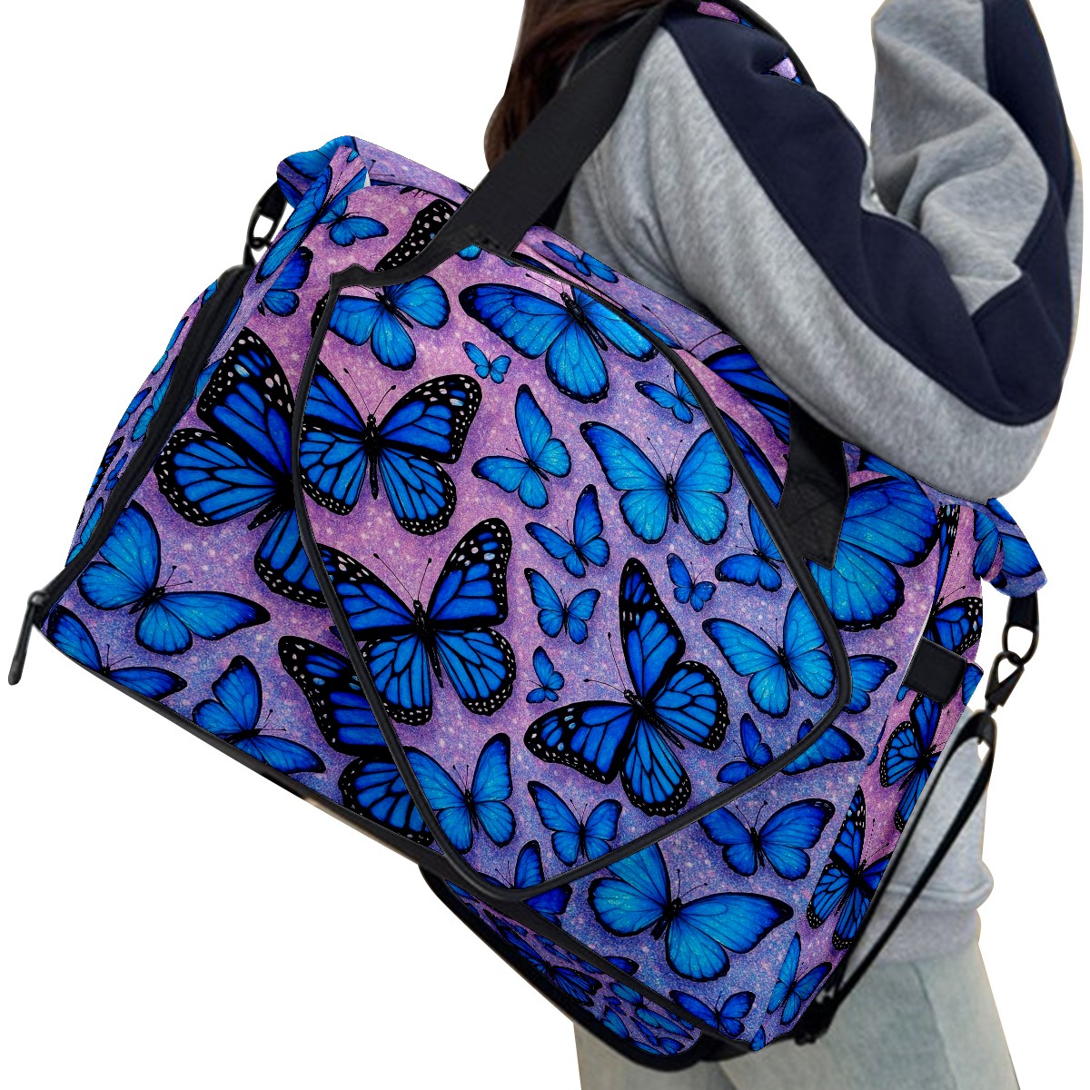 Women's Tennis Bag Large Capacity - Ventilated Shoe Compartment & Waterproof Wet Pocket, Multi-Functional Gym Duffel Bag for Tennis, Yoga, Travel (Blue Butterflies)