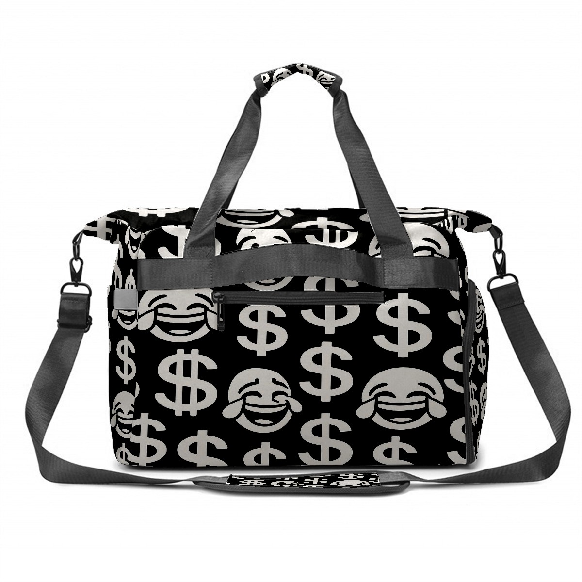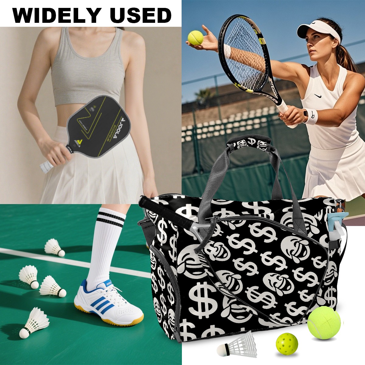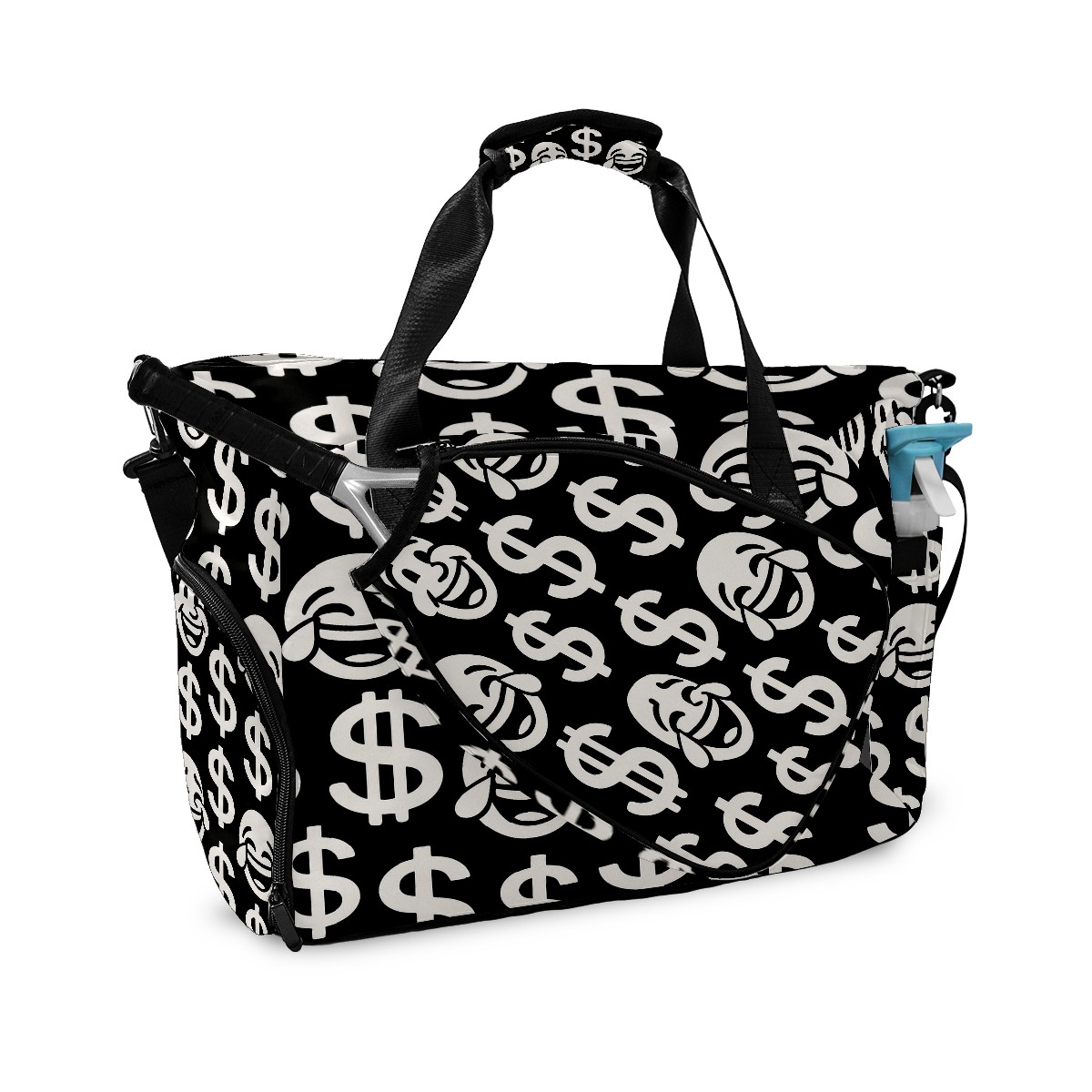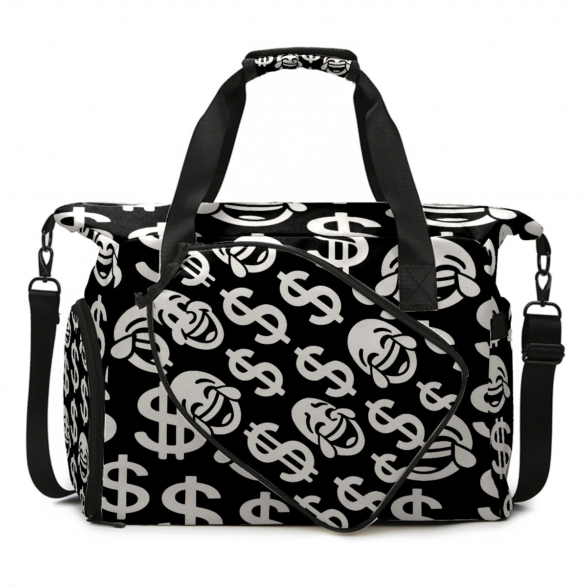 Women's Tennis Bag Large Capacity - Ventilated Shoe Compartment & Waterproof Wet Pocket, Multi-Functional Gym Duffel Bag for Tennis, Yoga, Travel (Black Dollar Smiles)