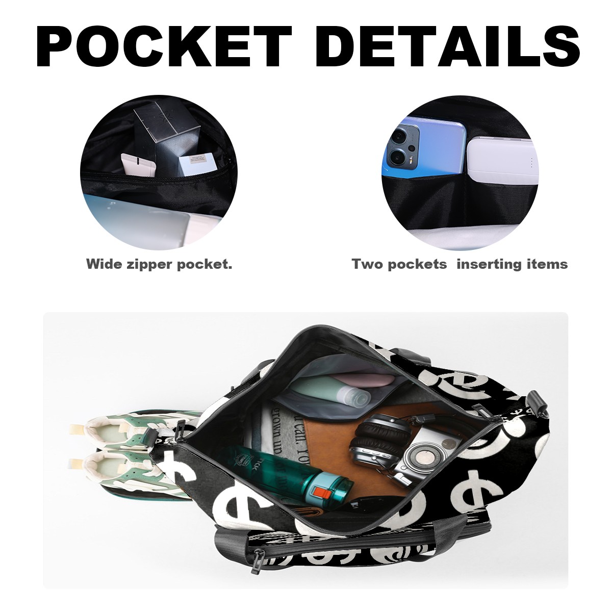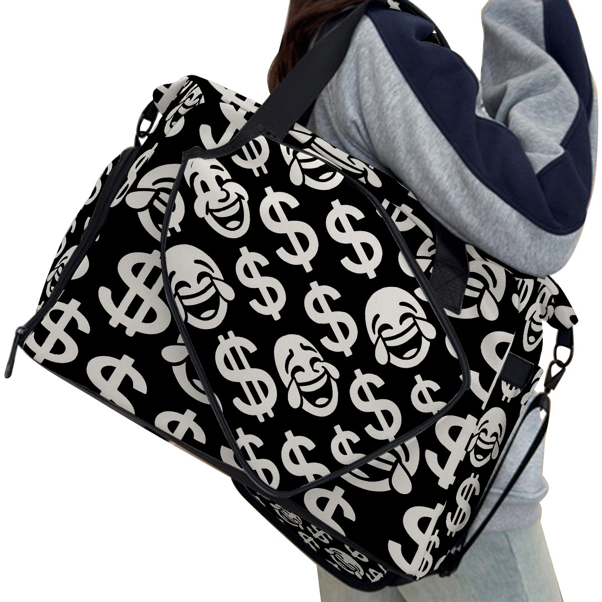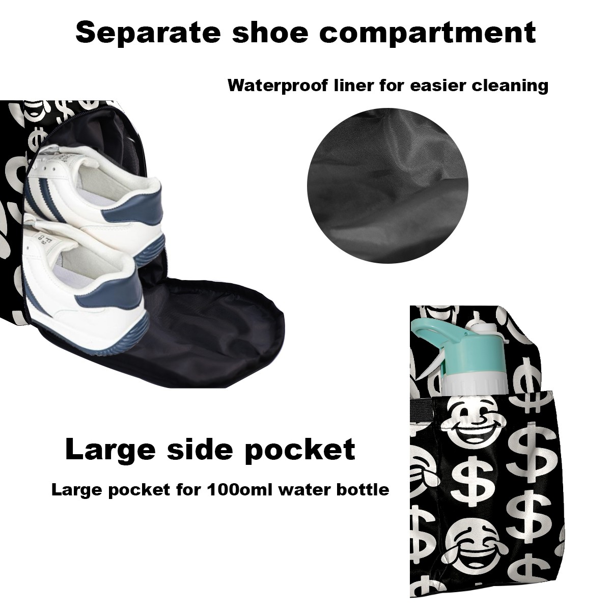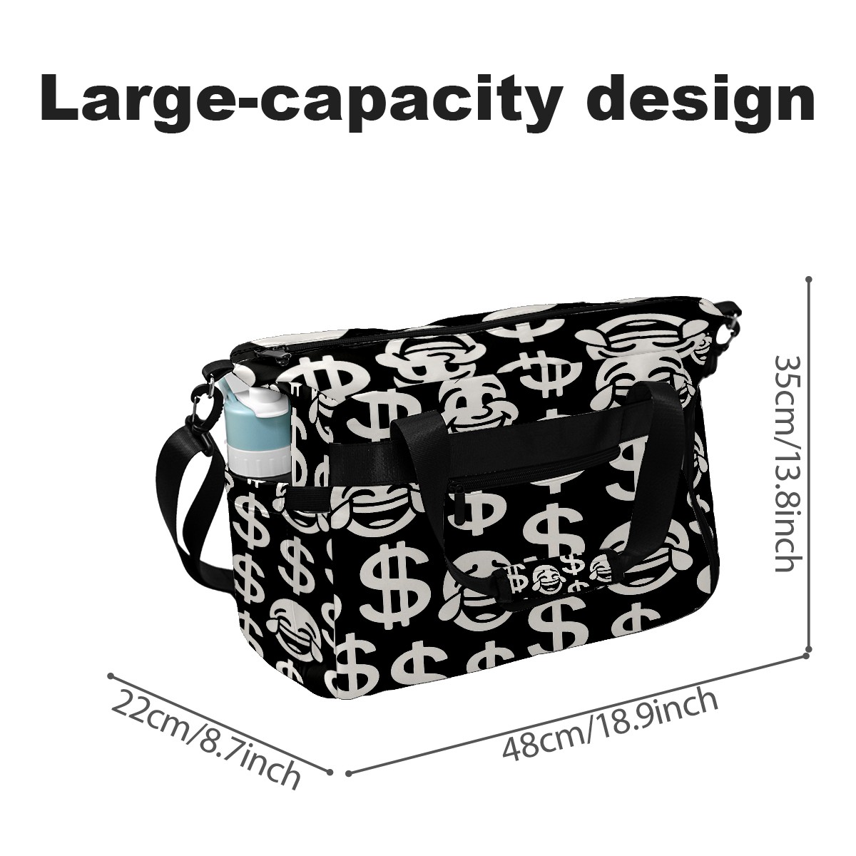 Women's Tennis Bag Large Capacity - Ventilated Shoe Compartment & Waterproof Wet Pocket, Multi-Functional Gym Duffel Bag for Tennis, Yoga, Travel (Black Dollar Smiles)