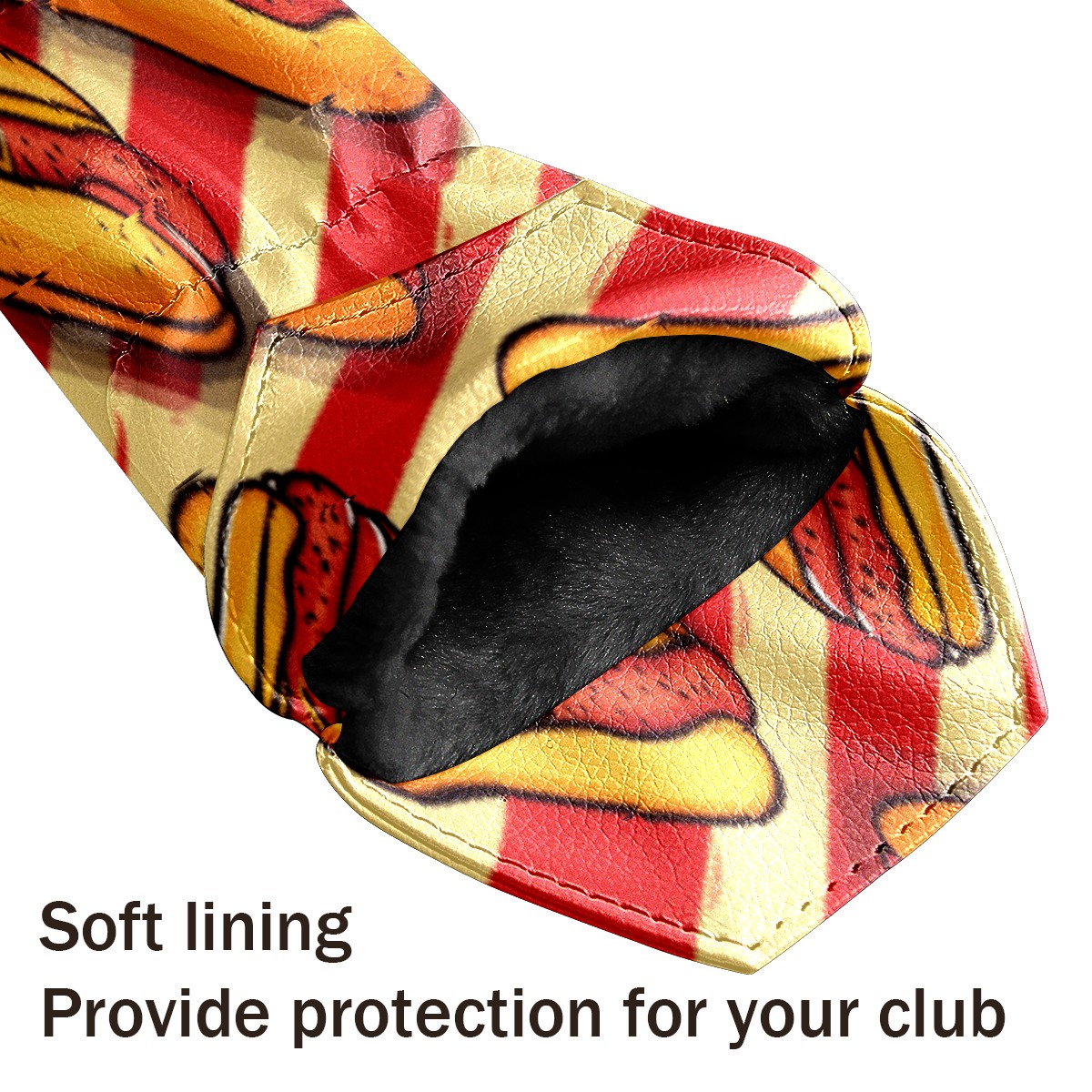 p>This golf headcover is made of top grade PU leather, which is wear-resistant, waterproof and stain-resistant, and can easily withstand the wind, rain and daily wear and tear; the velvet lining gently wraps around the cover, cushioning the impact and eliminating scratches and abrasions. The velvet lining cushions impacts and prevents scratches and abrasions. Surface stains wipe clean and the tear-resistant design lasts as long as new. Dual size fits all types of clubs, simple and advanced texture design, is a good choice for birthday and holiday gift.</p>