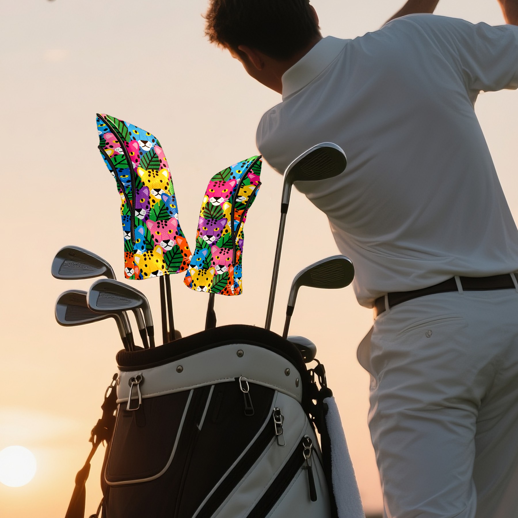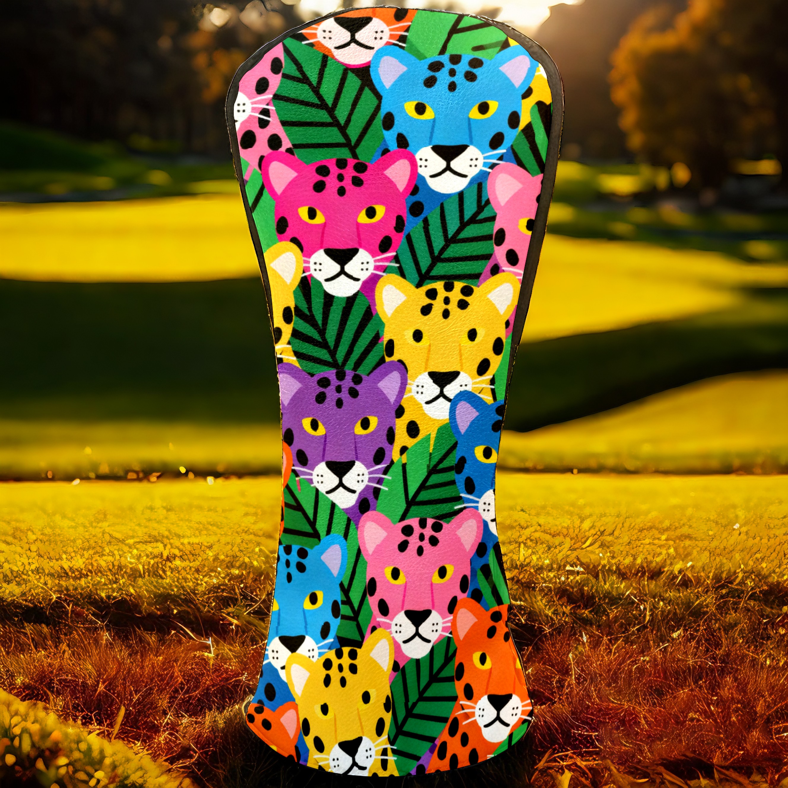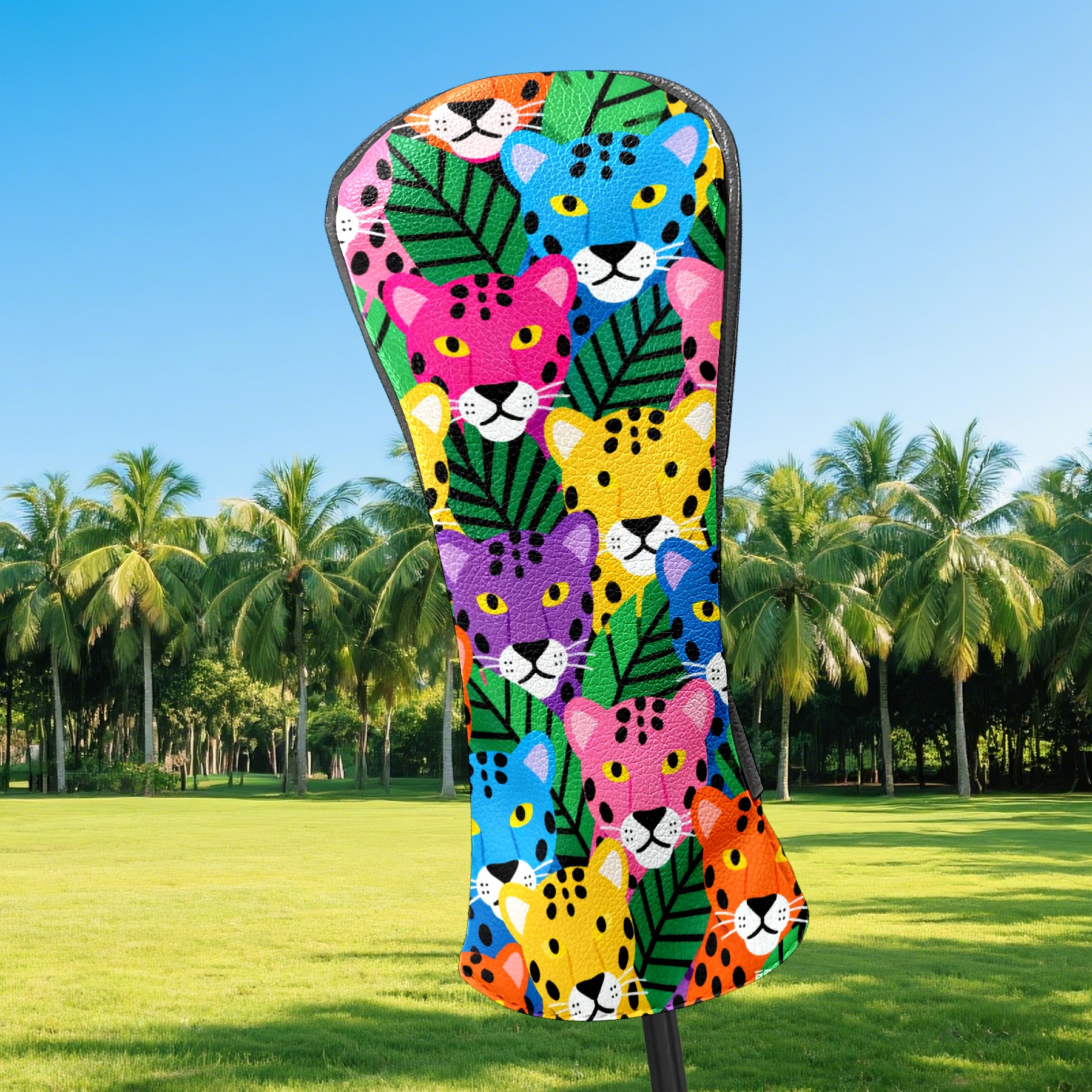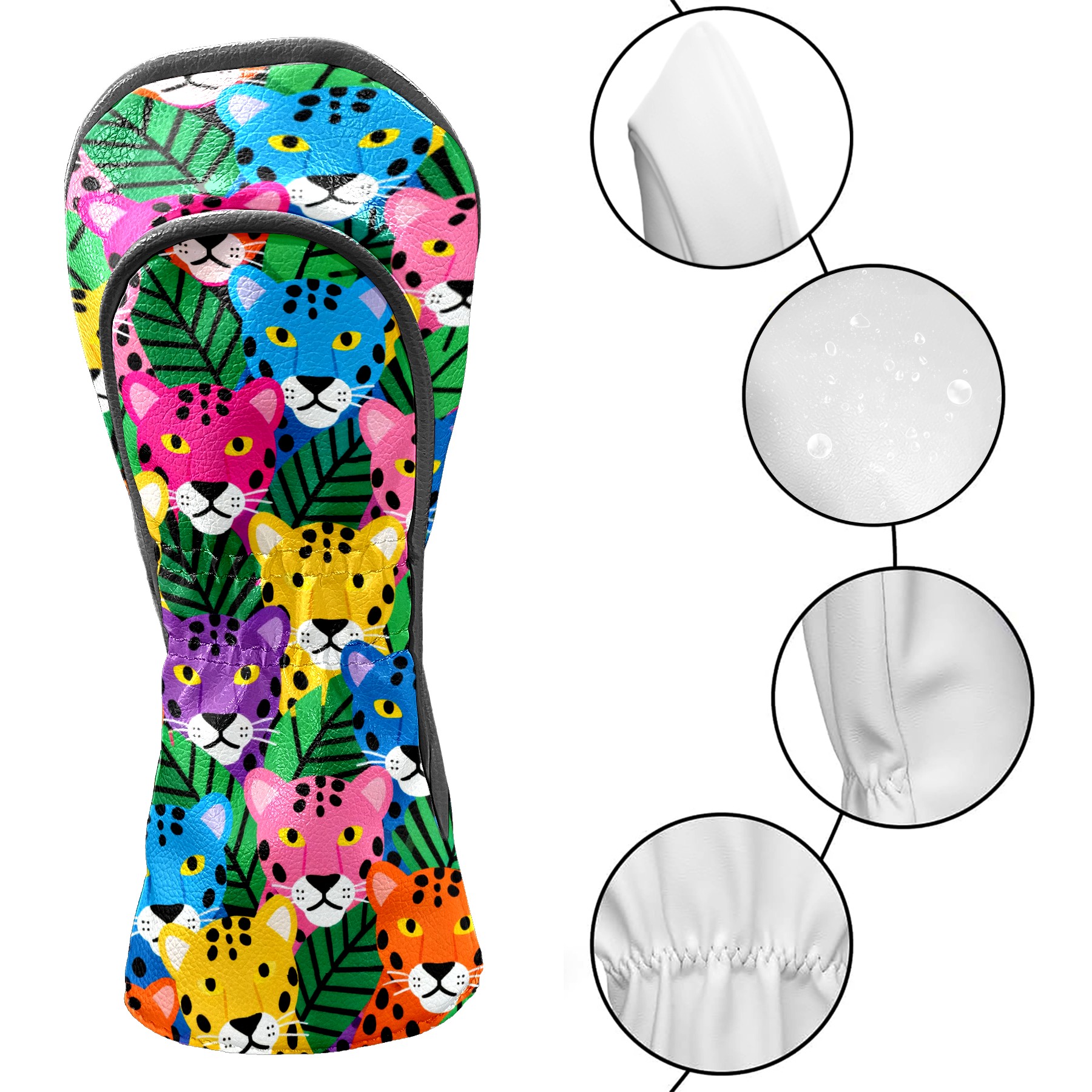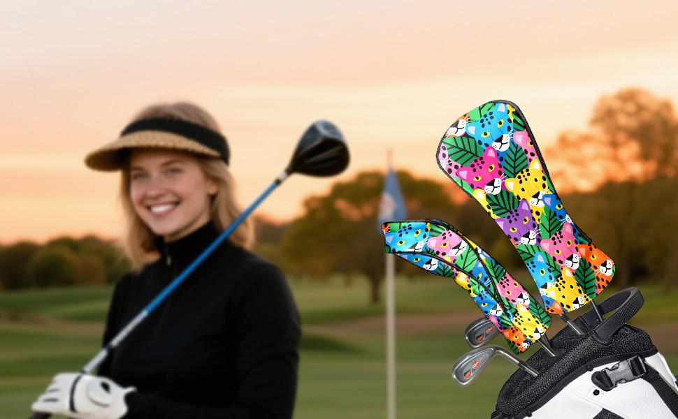 PU Leather Golf Head Covers Set – Fits Drivers/Fairway Woods/Hybrids, Ideal Gifts for Male & Female Golfers Colorful Leopard Head