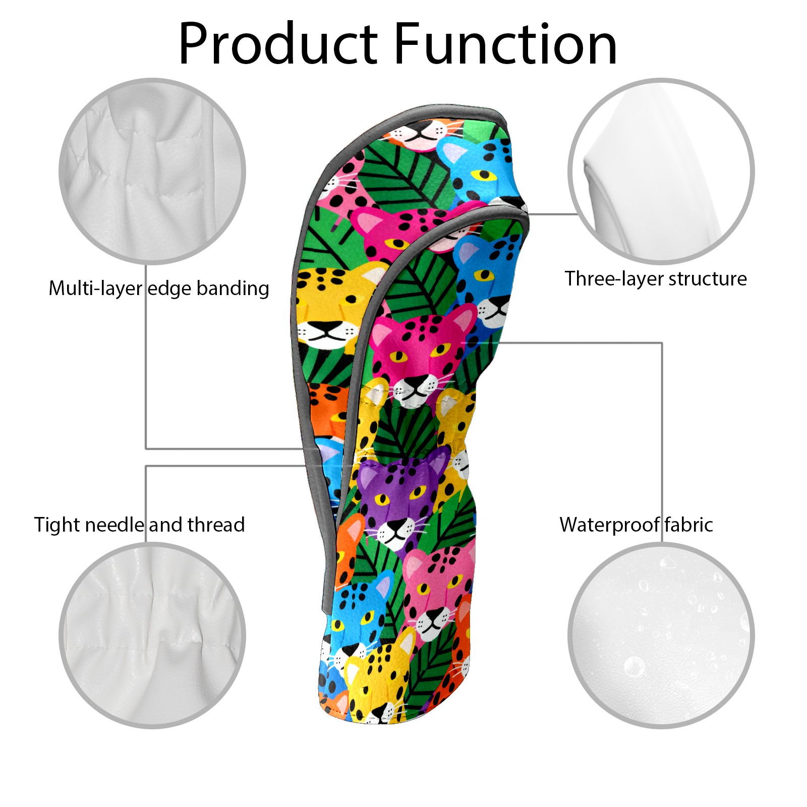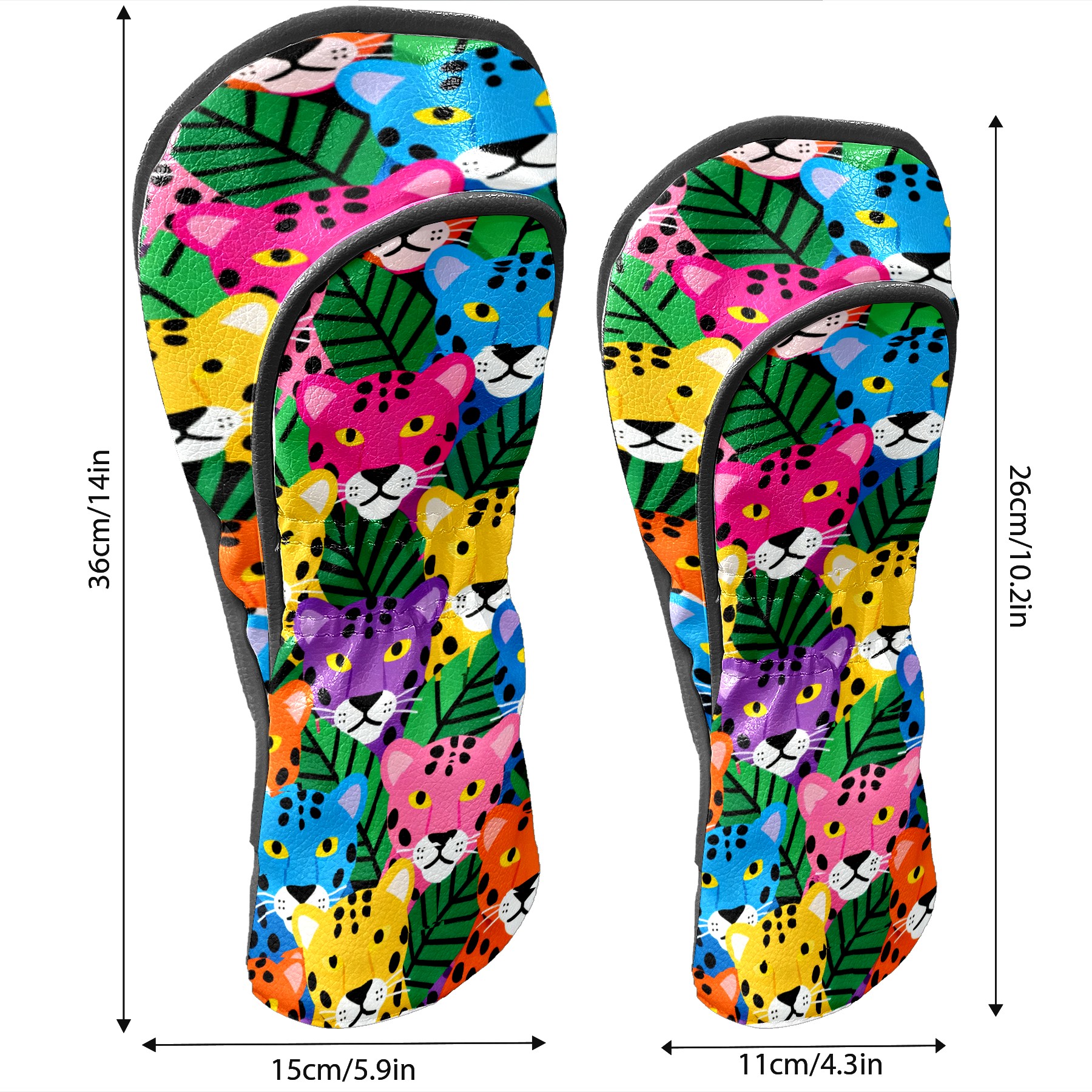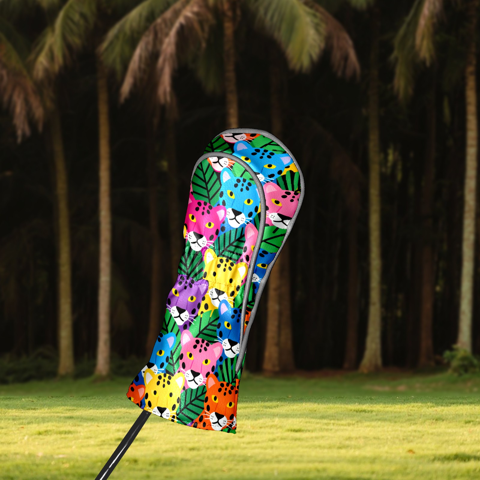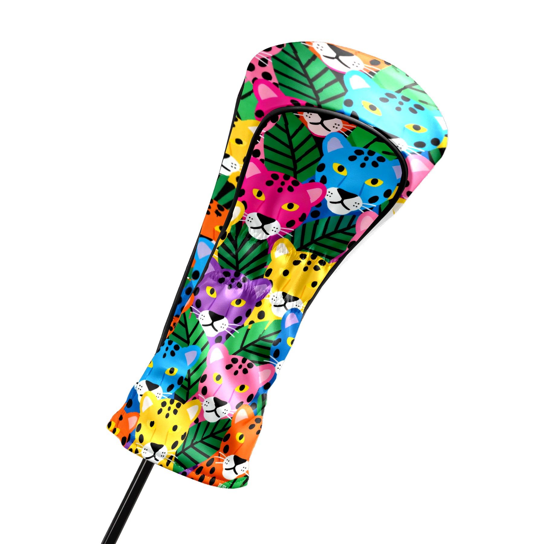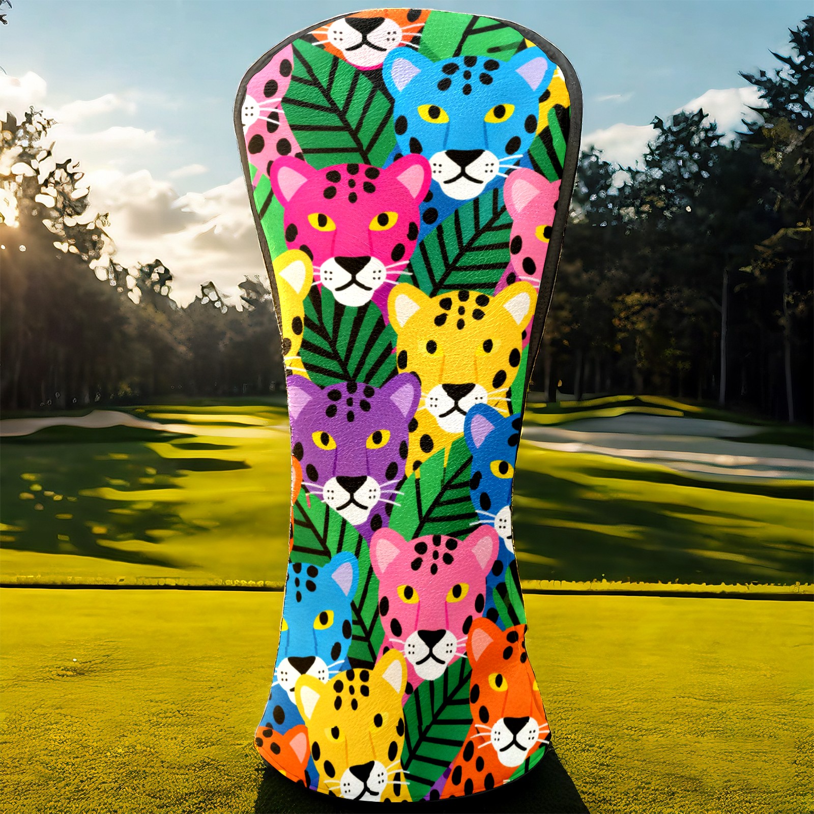 PU Leather Golf Head Covers Set – Fits Drivers/Fairway Woods/Hybrids, Ideal Gifts for Male & Female Golfers Colorful Leopard Head