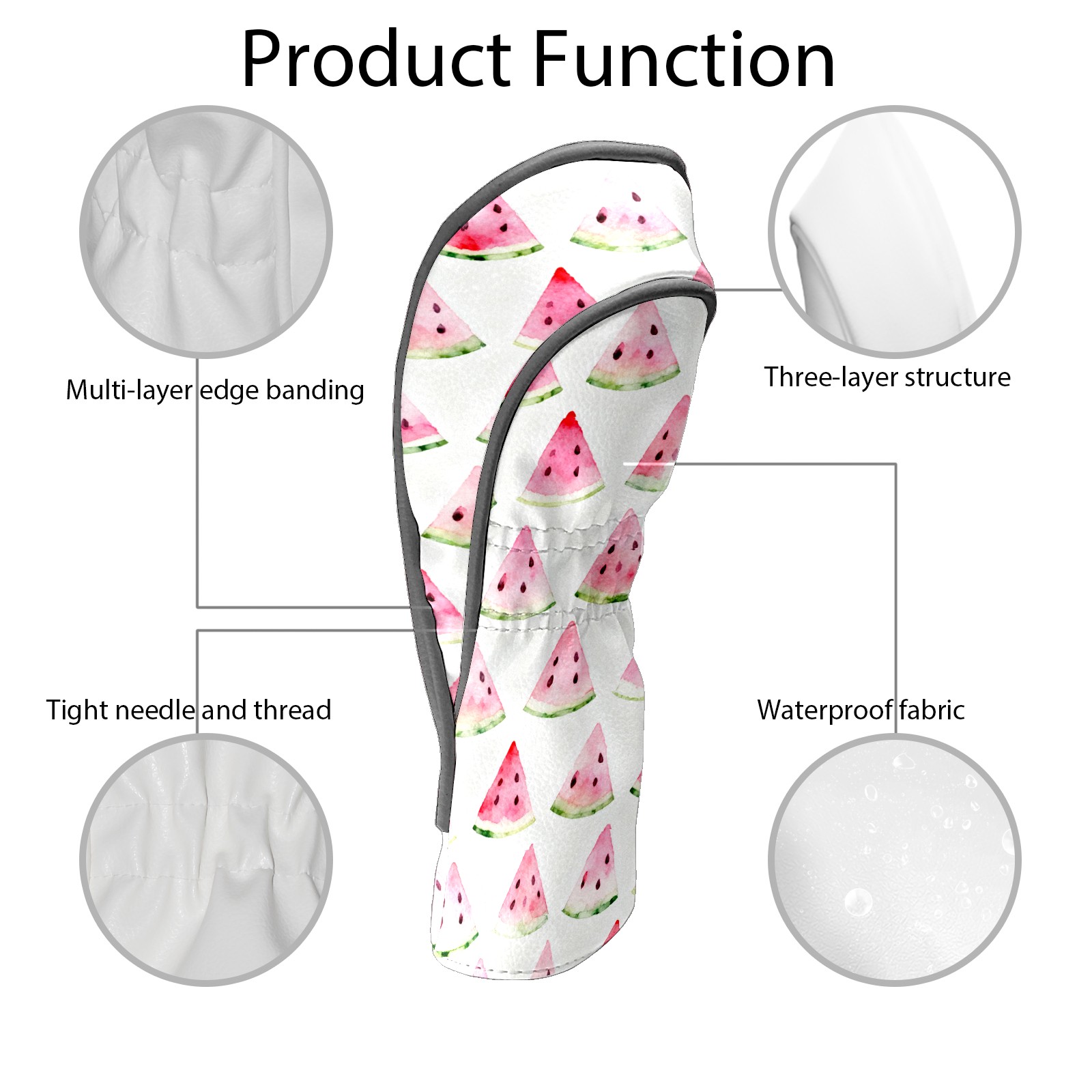 PU Leather Golf Head Covers Set – Fits Drivers/Fairway Woods/Hybrids, Ideal Gifts for Male & Female Golfers Pink Watermelon Slices