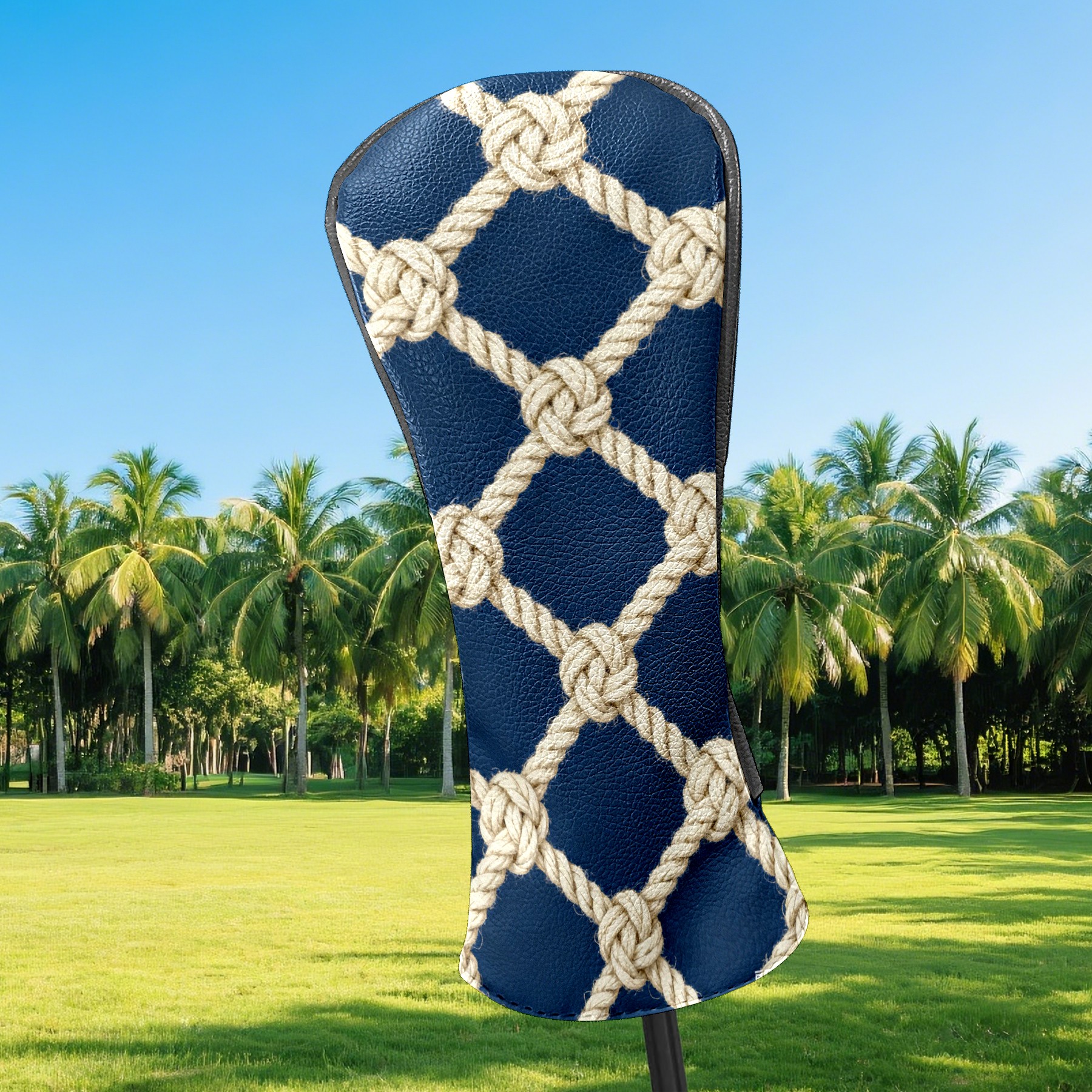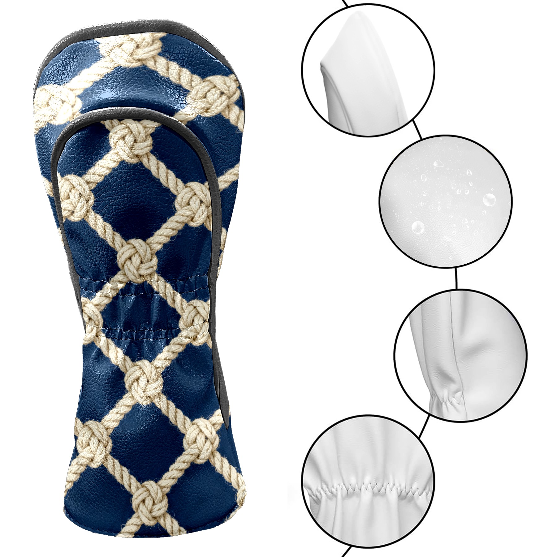 PU Leather Golf Head Covers Set – Fits Drivers/Fairway Woods/Hybrids, Ideal Gifts for Male & Female Golfers Beige Rope Texture
