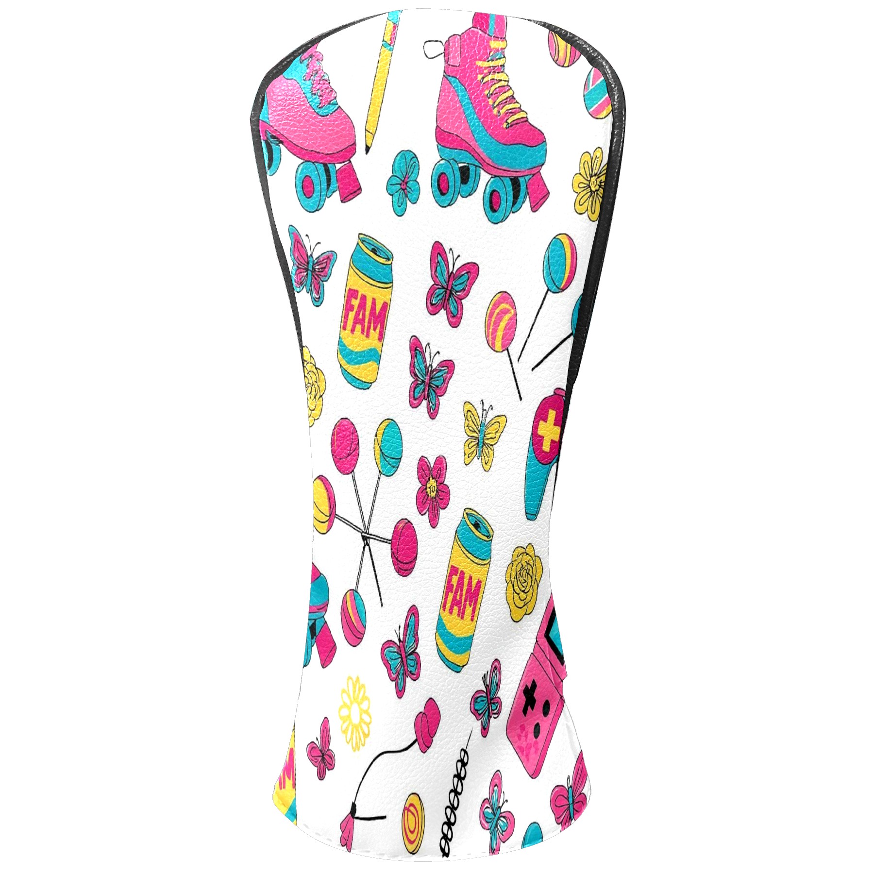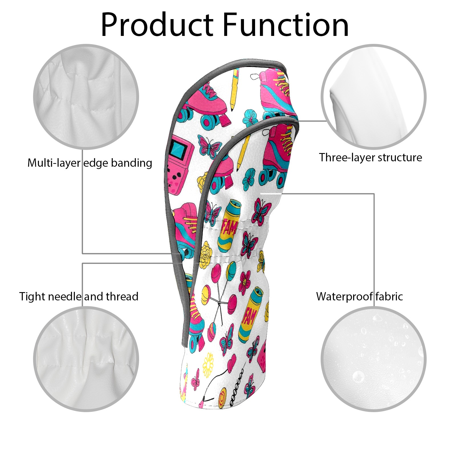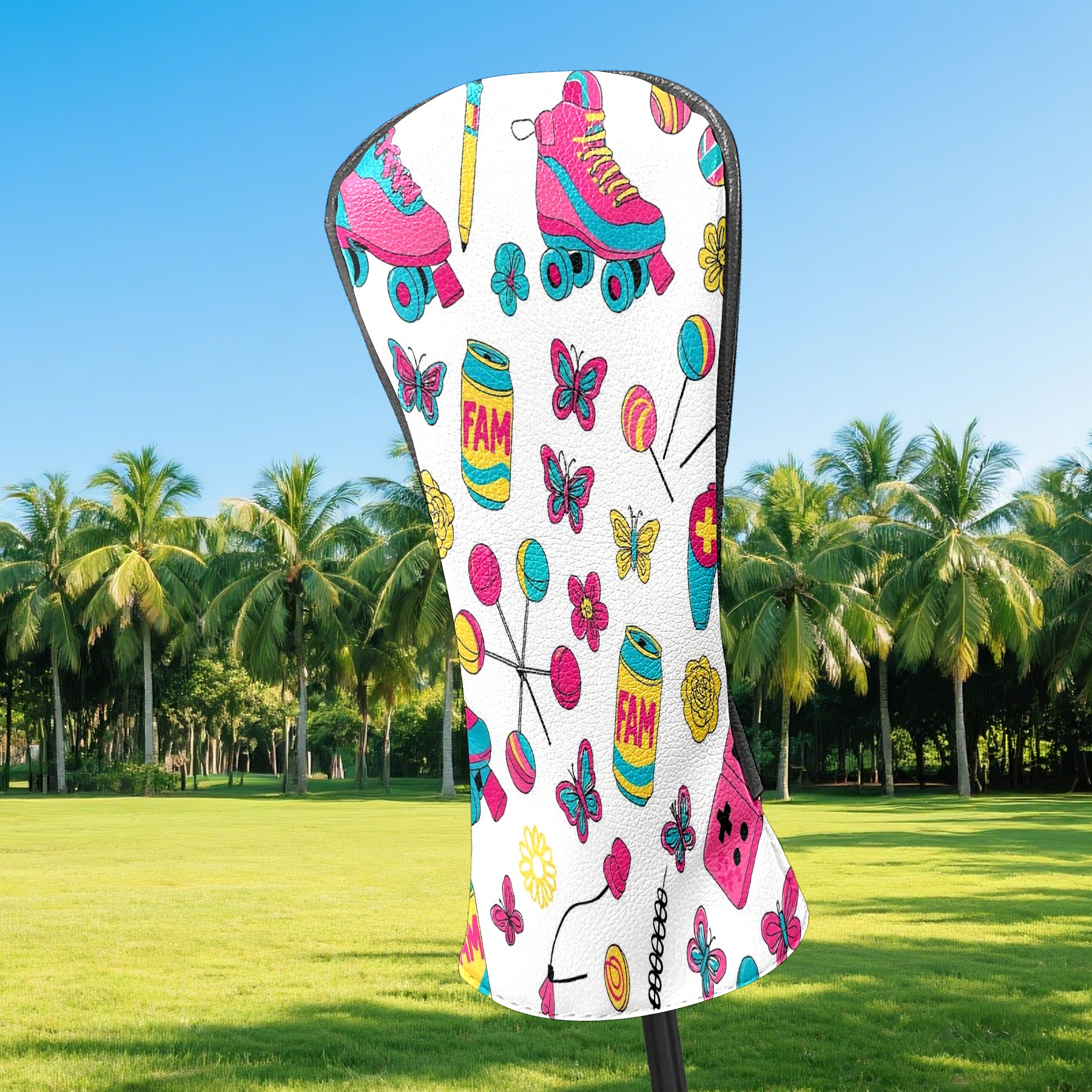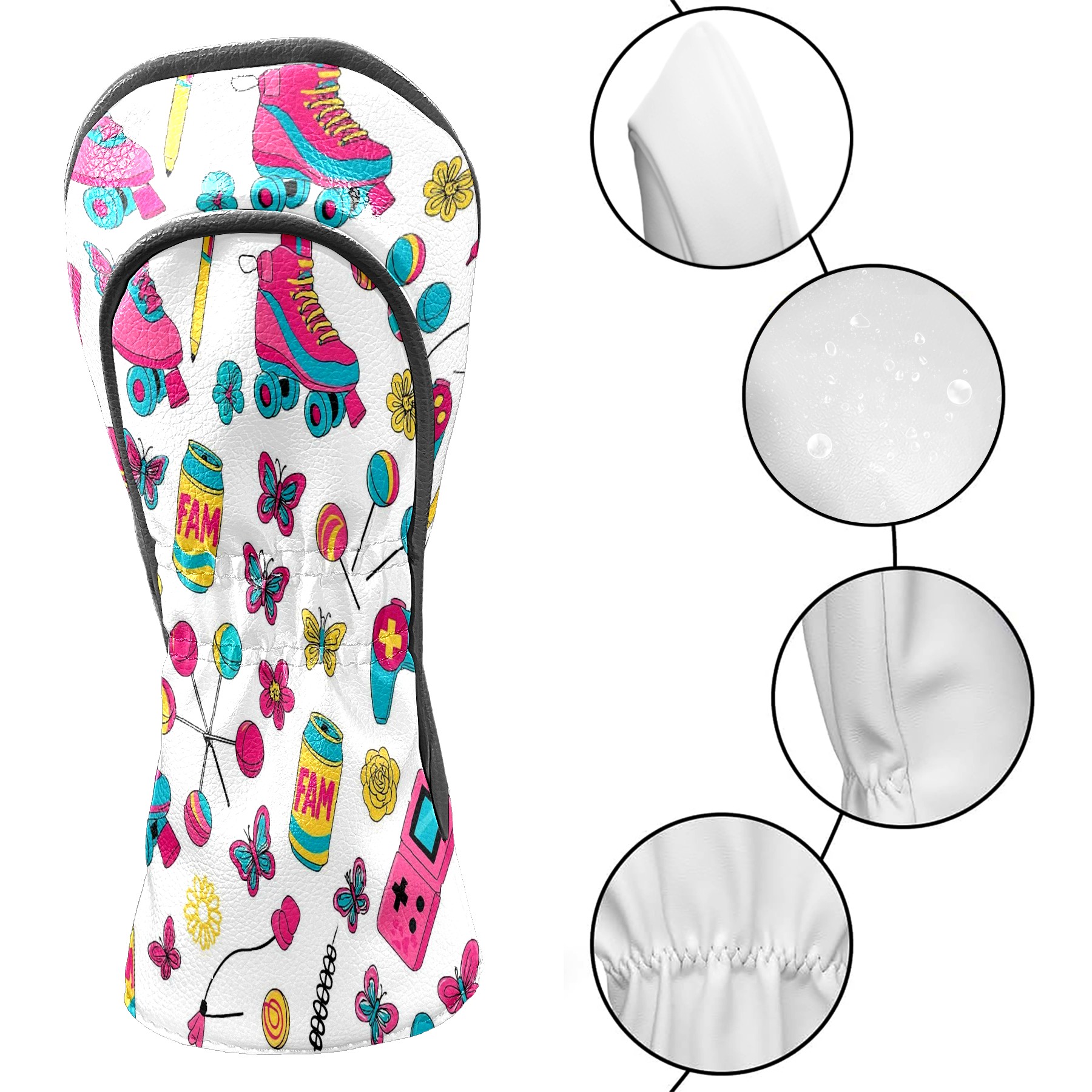 Counullo Golf Head Covers - Funny Multicolor Retro Games Driver Headcover, Durable PU Leather & Soft Velvet Lining, Secure Elastic Band, Perfect Christmas Golf Gift for Men