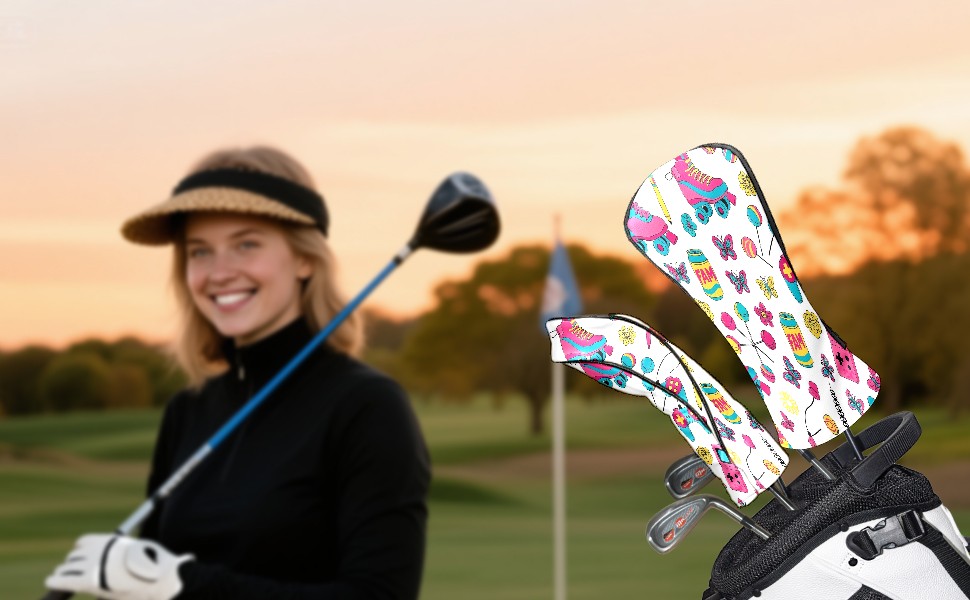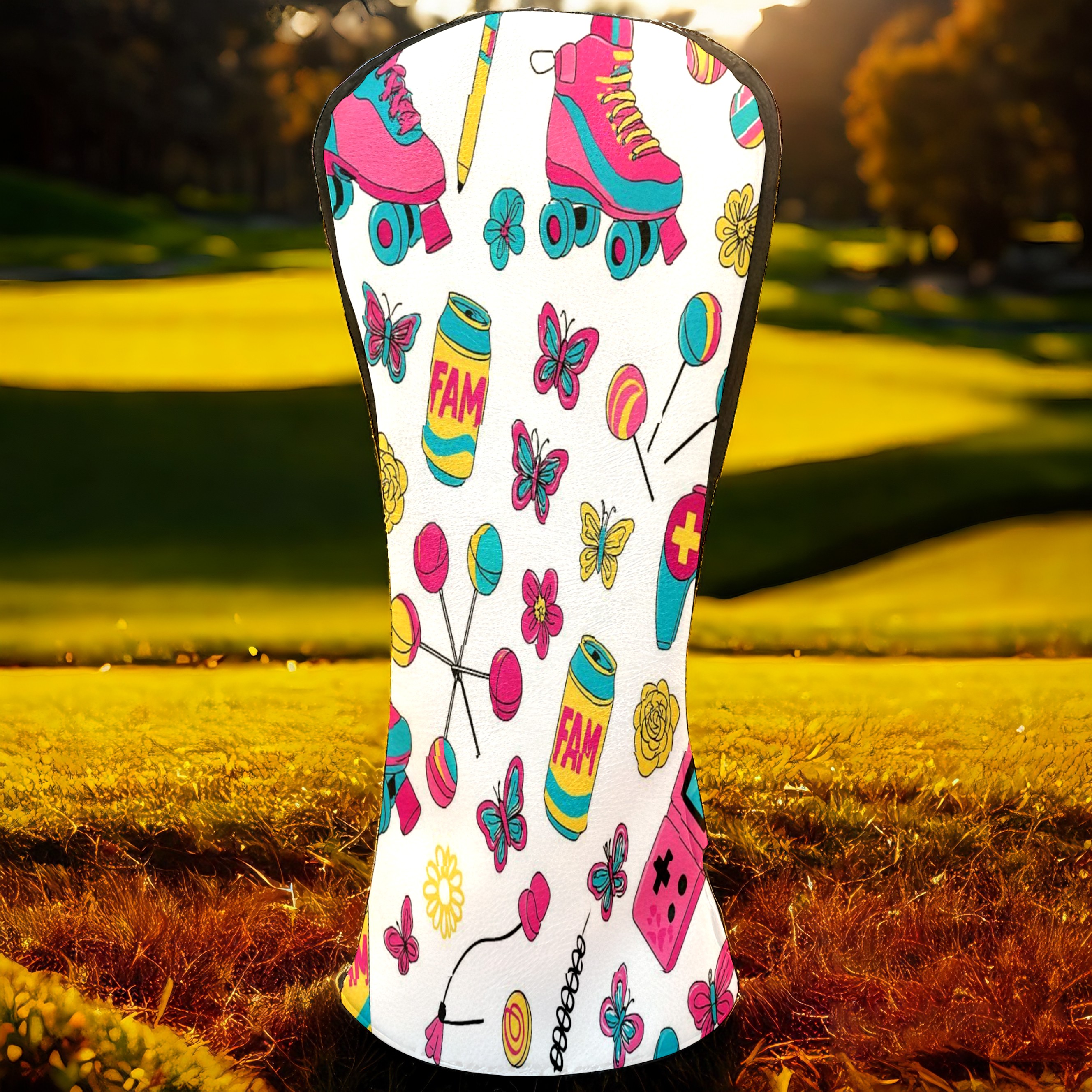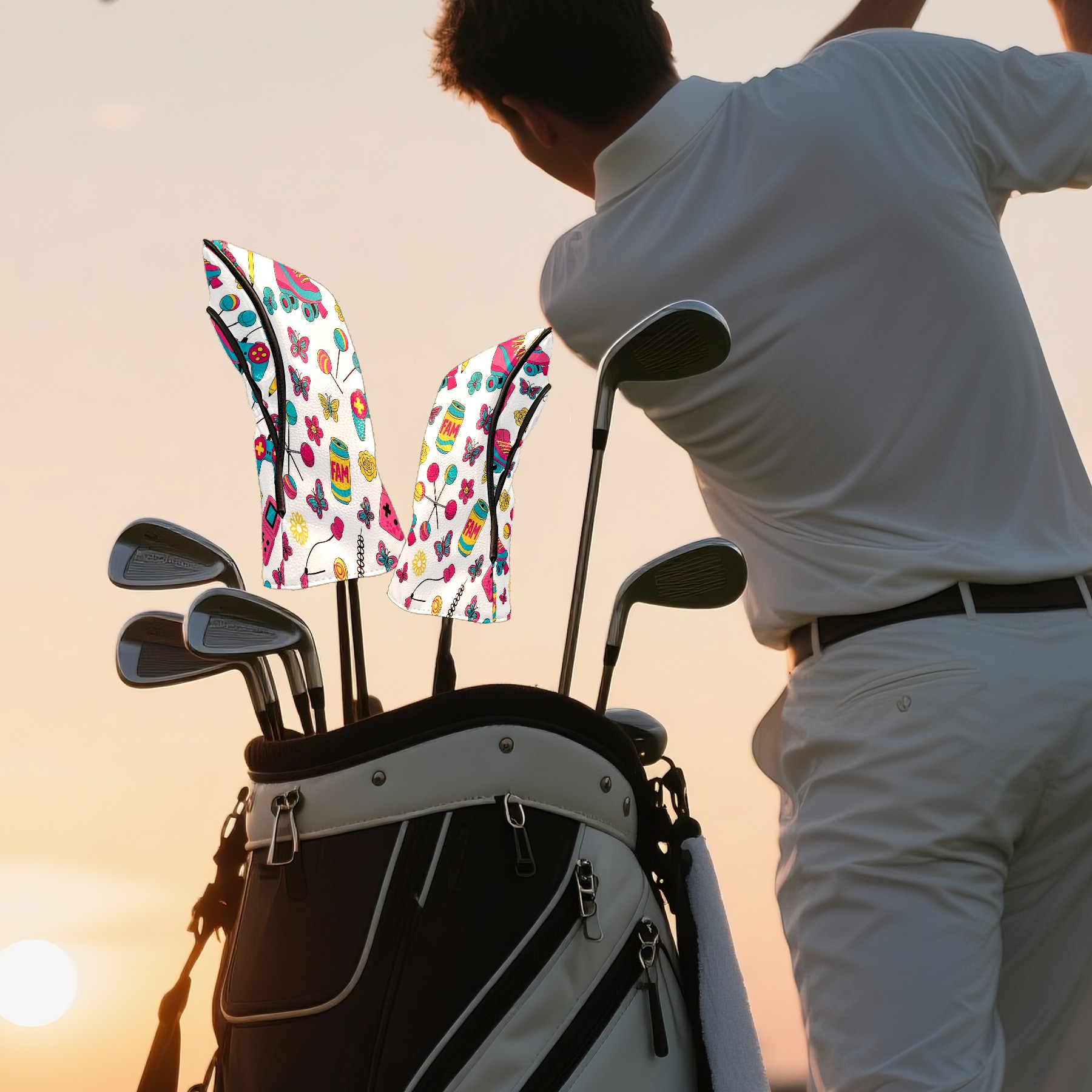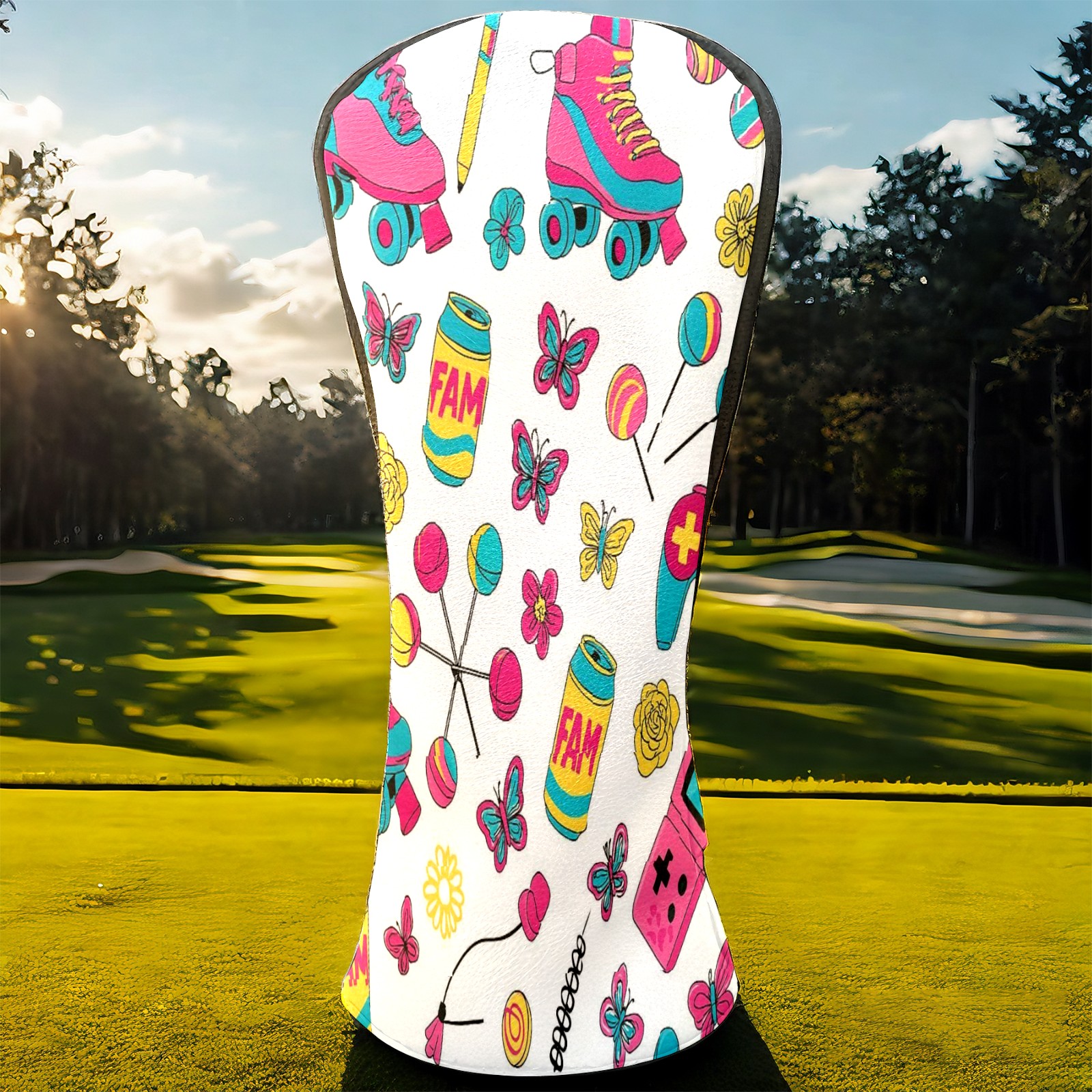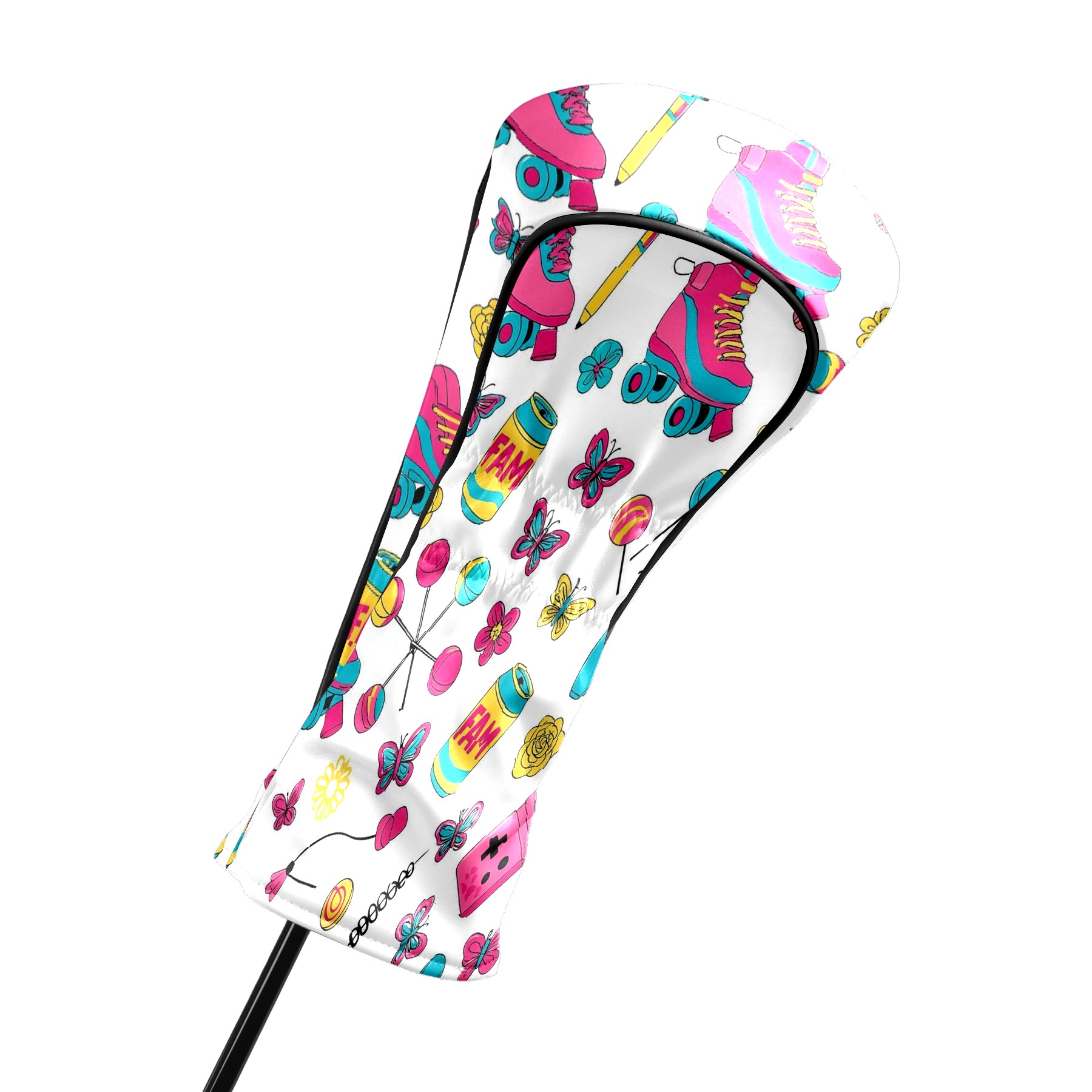 Counullo Golf Head Covers - Funny Multicolor Retro Games Driver Headcover, Durable PU Leather & Soft Velvet Lining, Secure Elastic Band, Perfect Christmas Golf Gift for Men