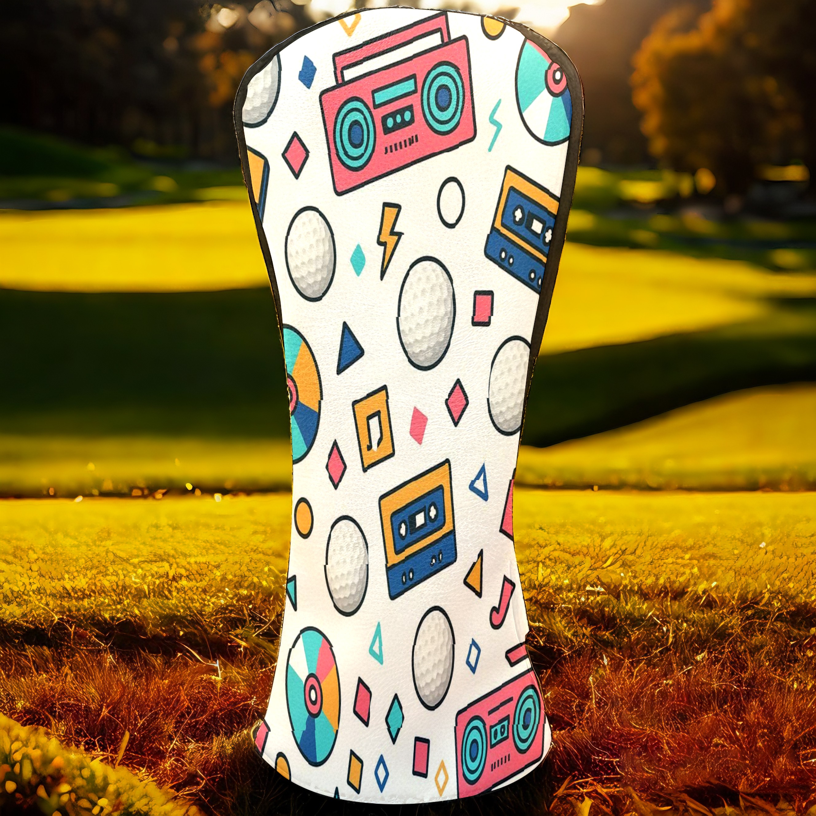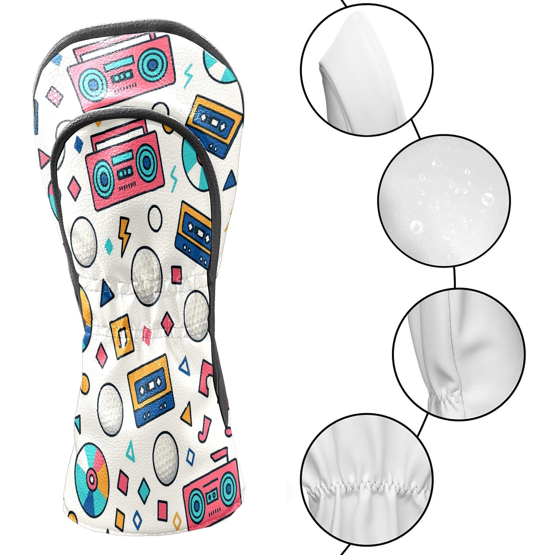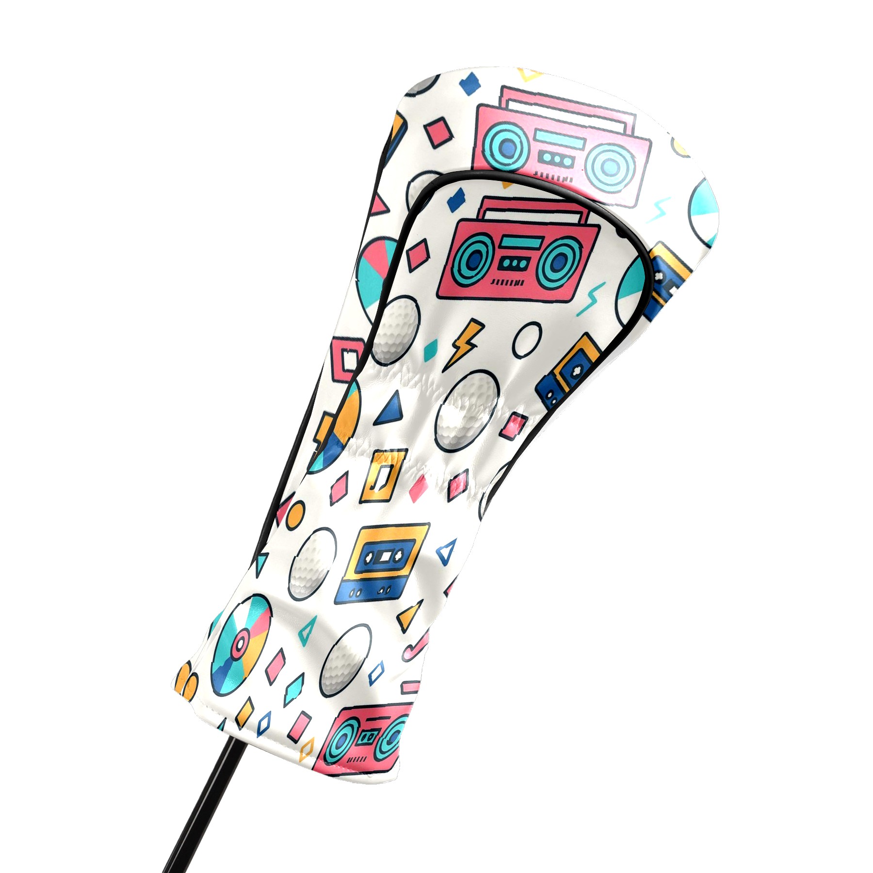 Counullo Golf Head Covers - Funny Multicolor Retro Music Driver Headcover, Durable PU Leather & Soft Velvet Lining, Secure Elastic Band, Perfect Christmas Golf Gift for Men