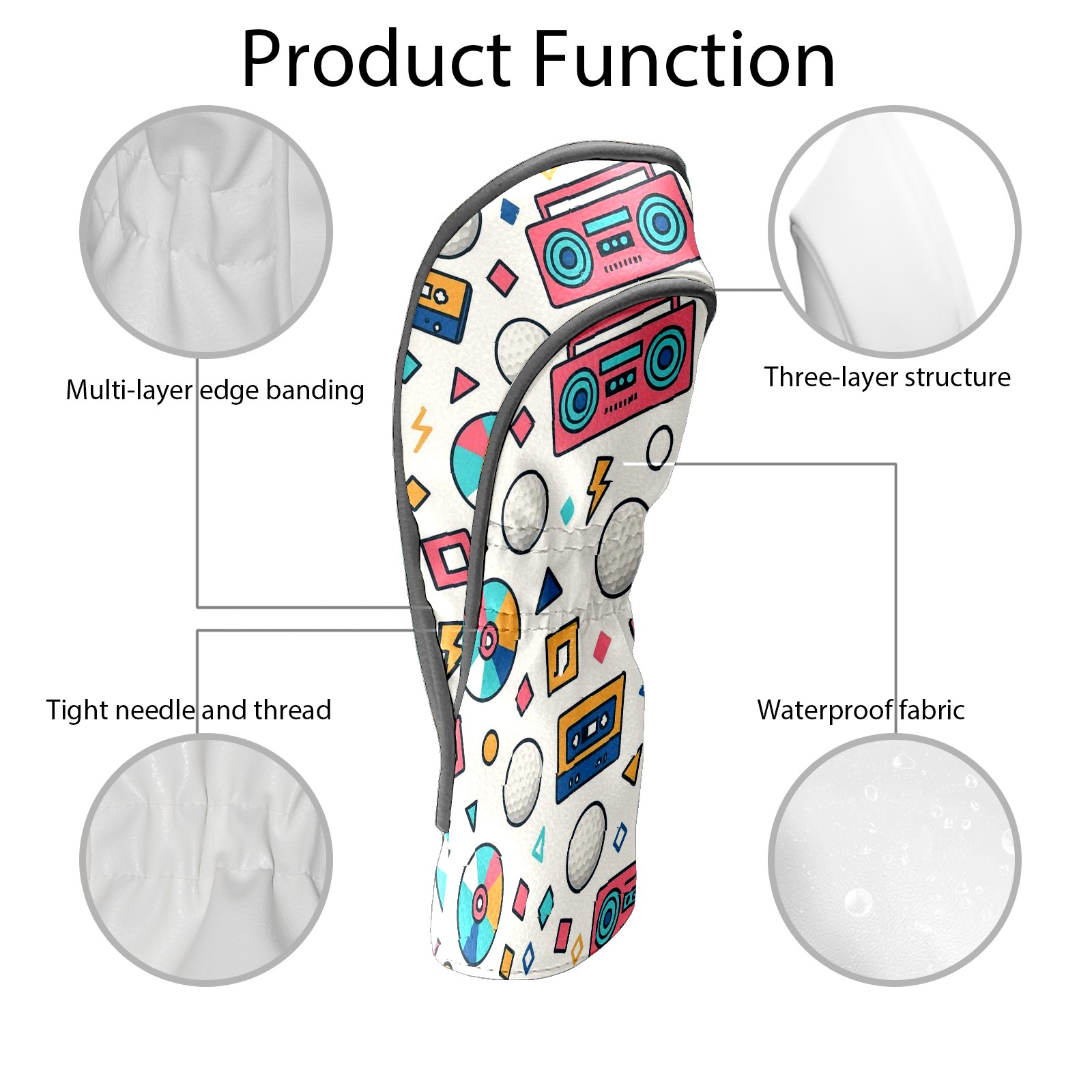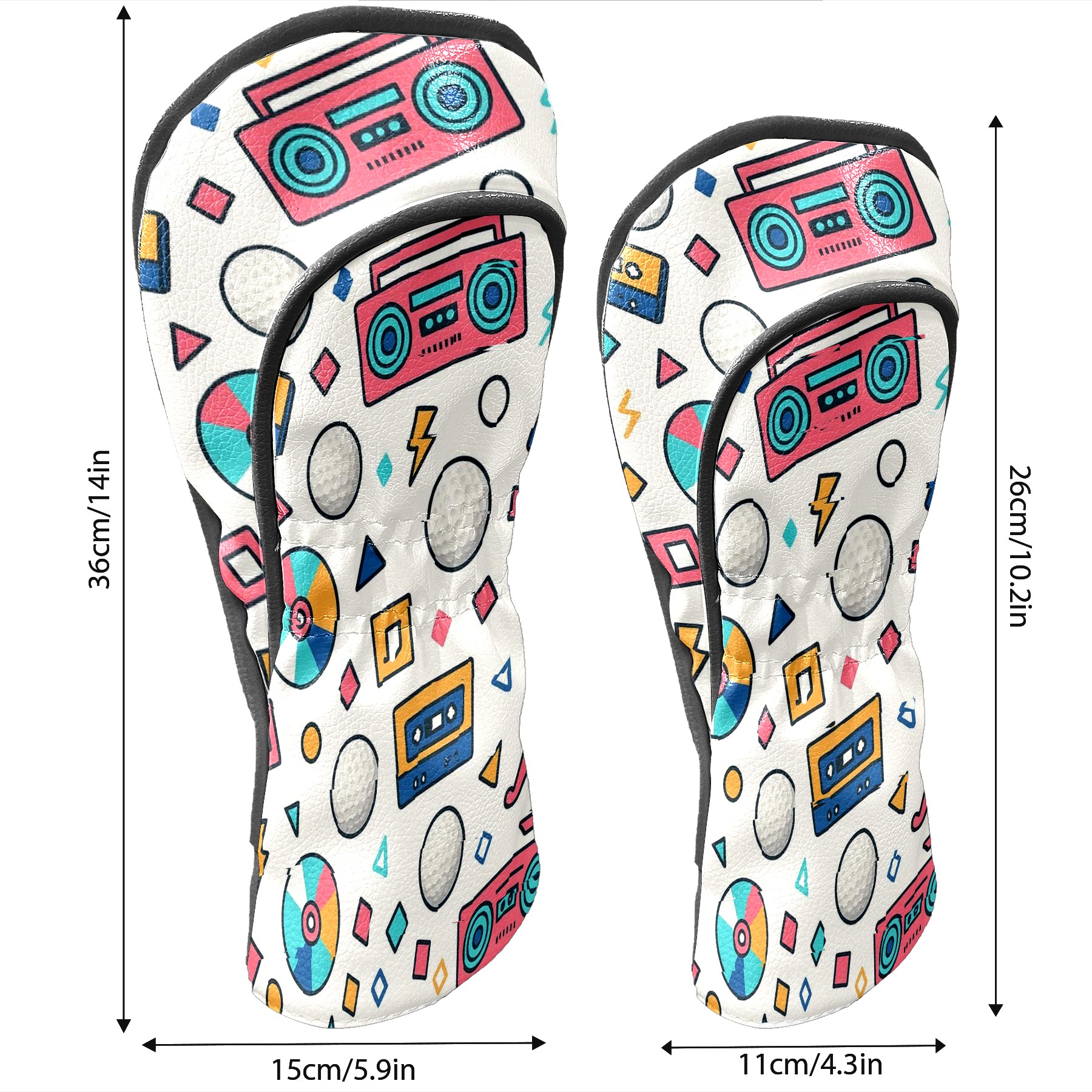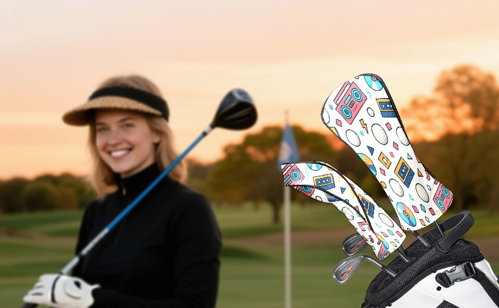 Counullo Golf Head Covers - Funny Multicolor Retro Music Driver Headcover, Durable PU Leather & Soft Velvet Lining, Secure Elastic Band, Perfect Christmas Golf Gift for Men
