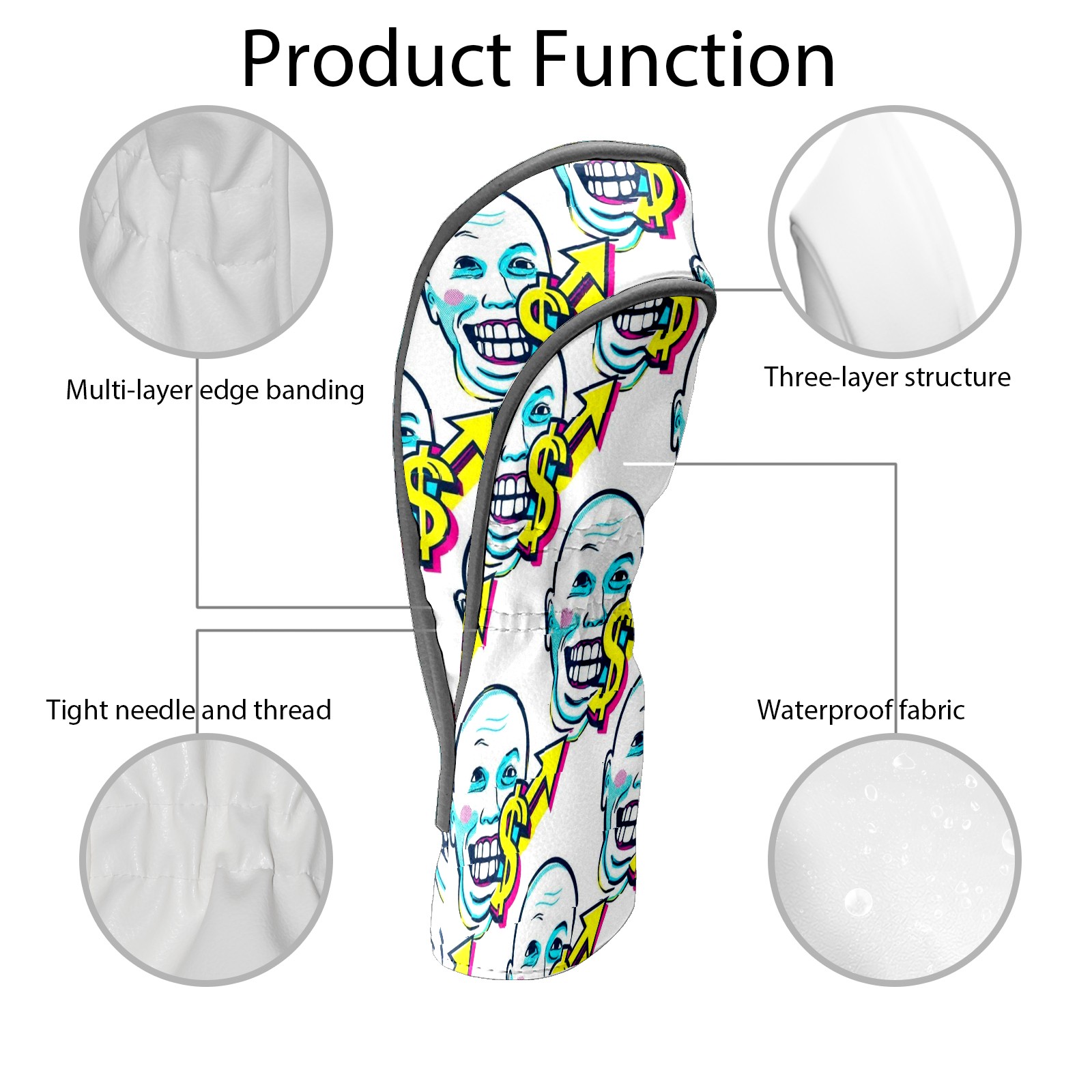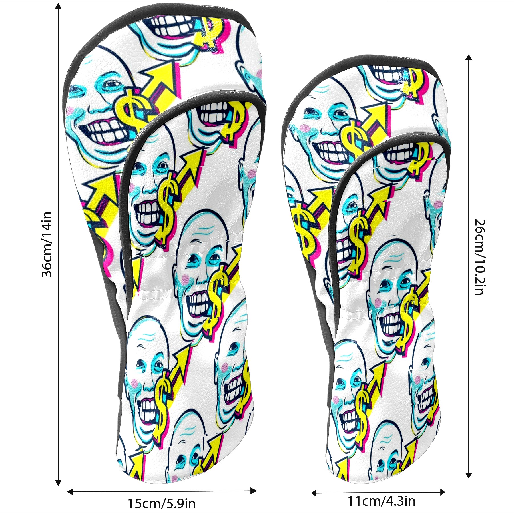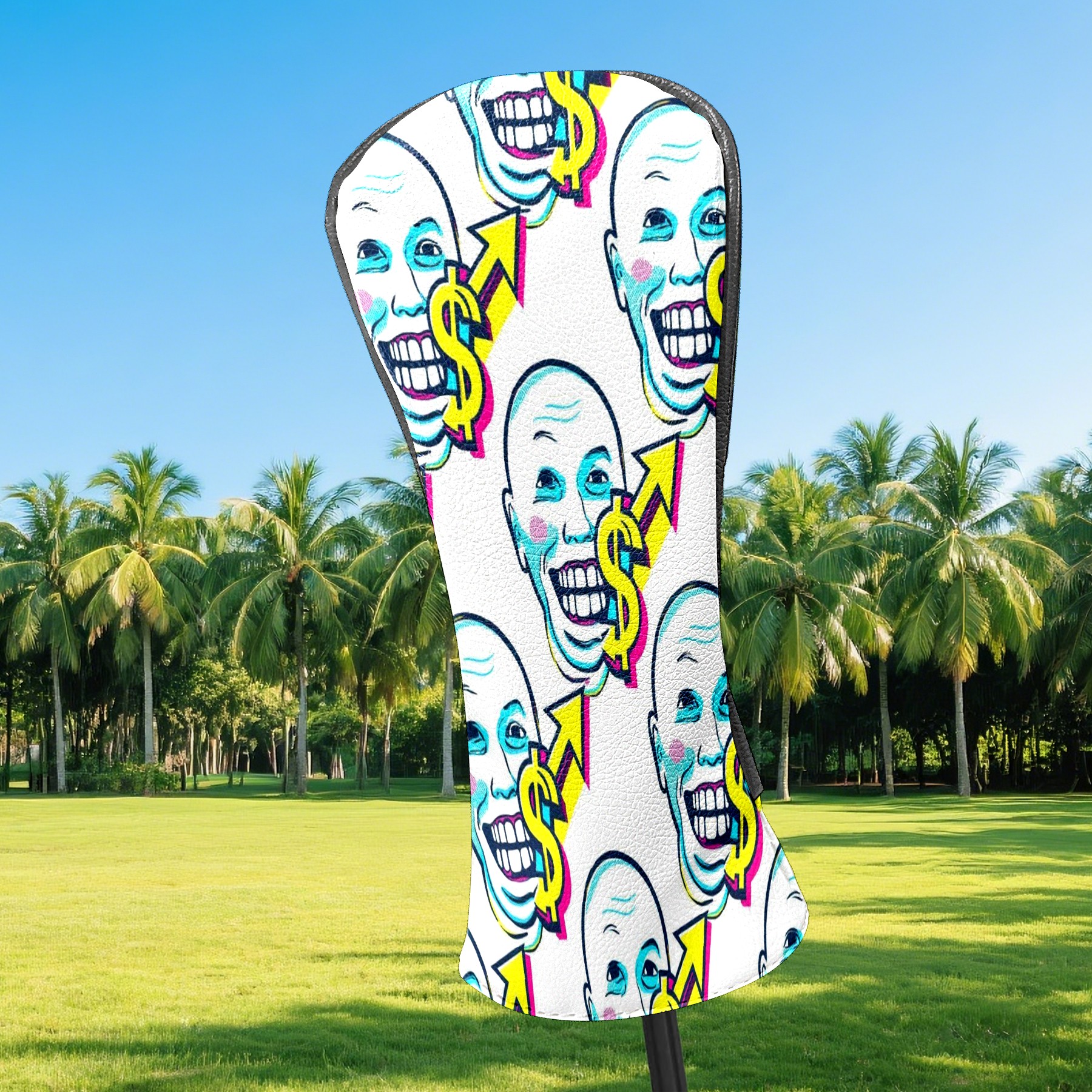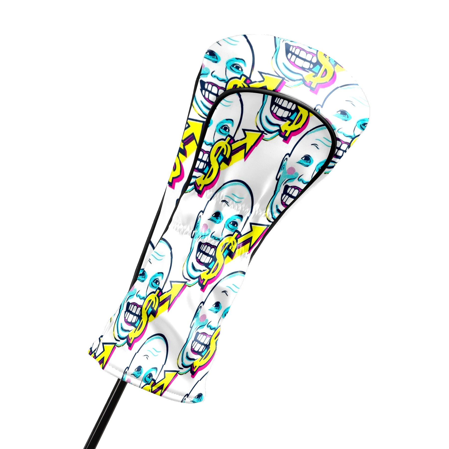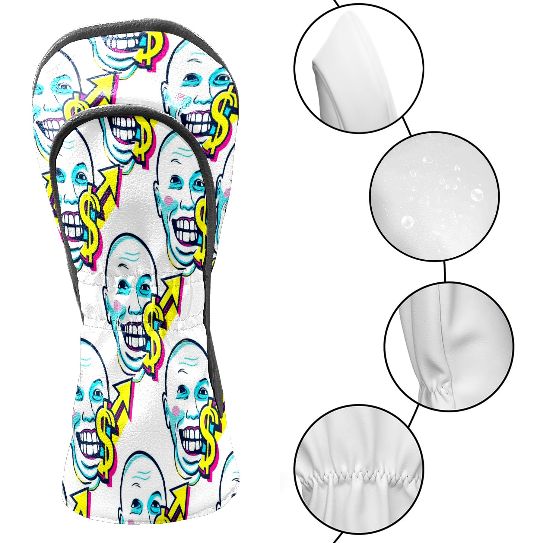 Counullo Golf Head Covers - Funny White Dollar Smiles Driver Headcover, Durable PU Leather & Soft Velvet Lining, Secure Elastic Band, Perfect Christmas Golf Gift for Men