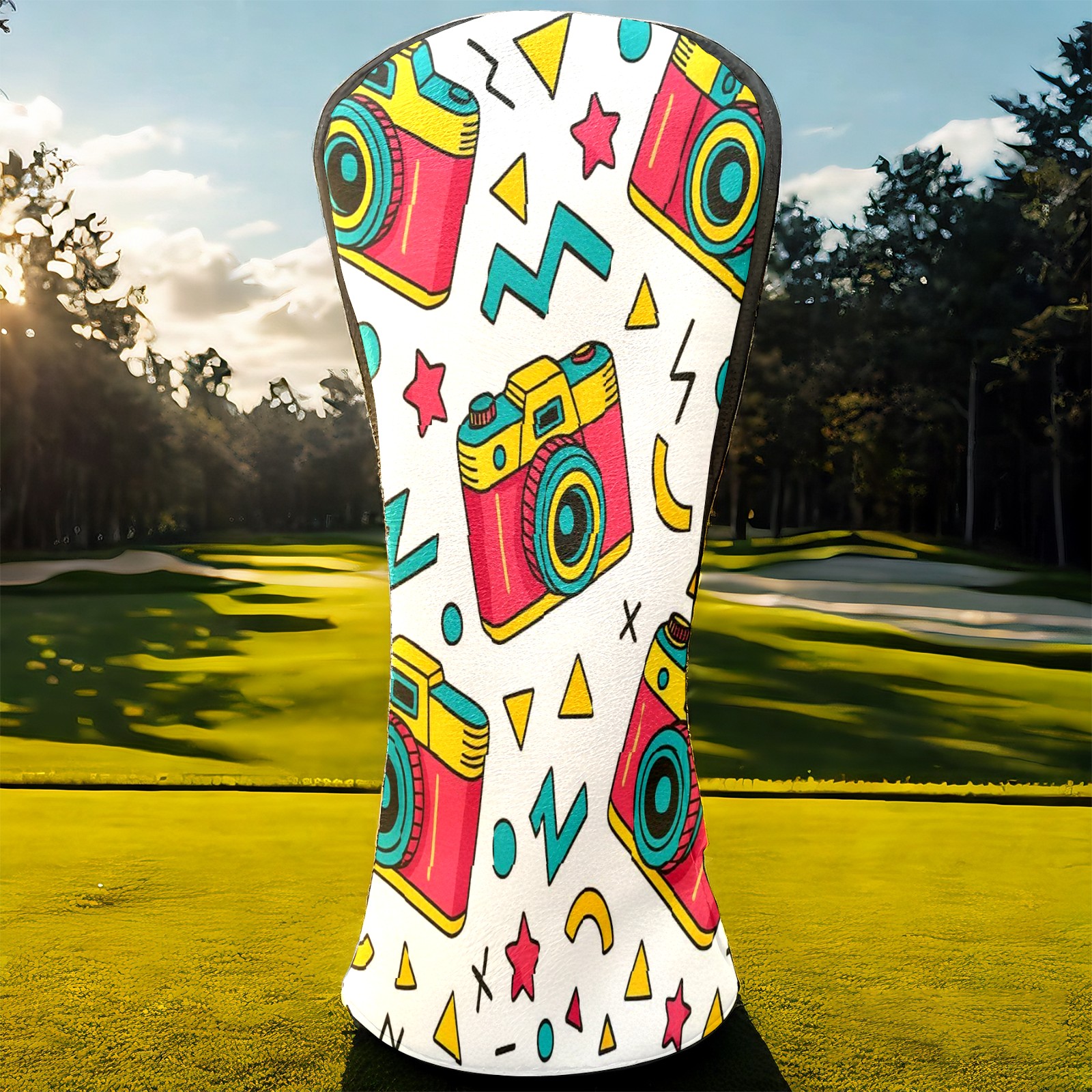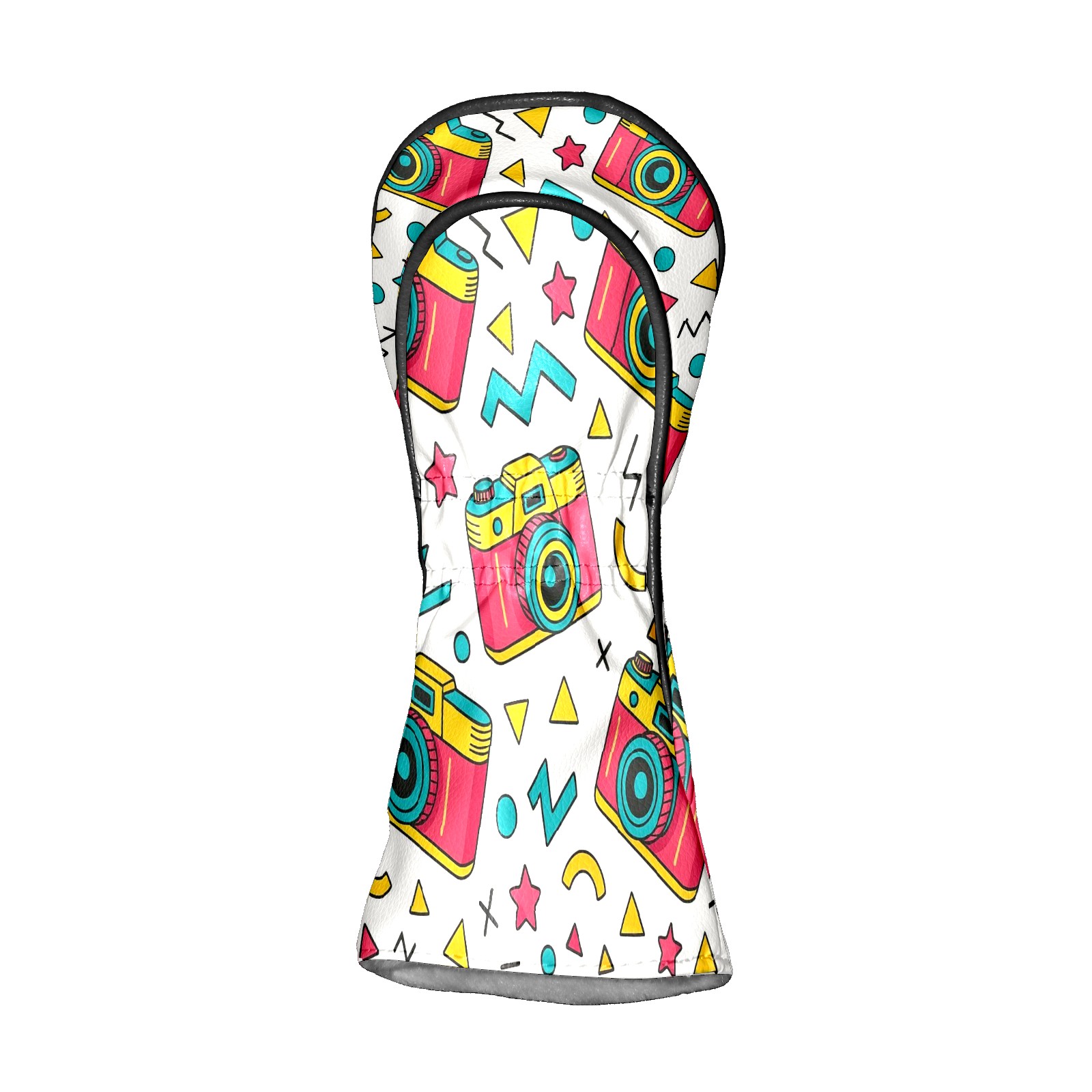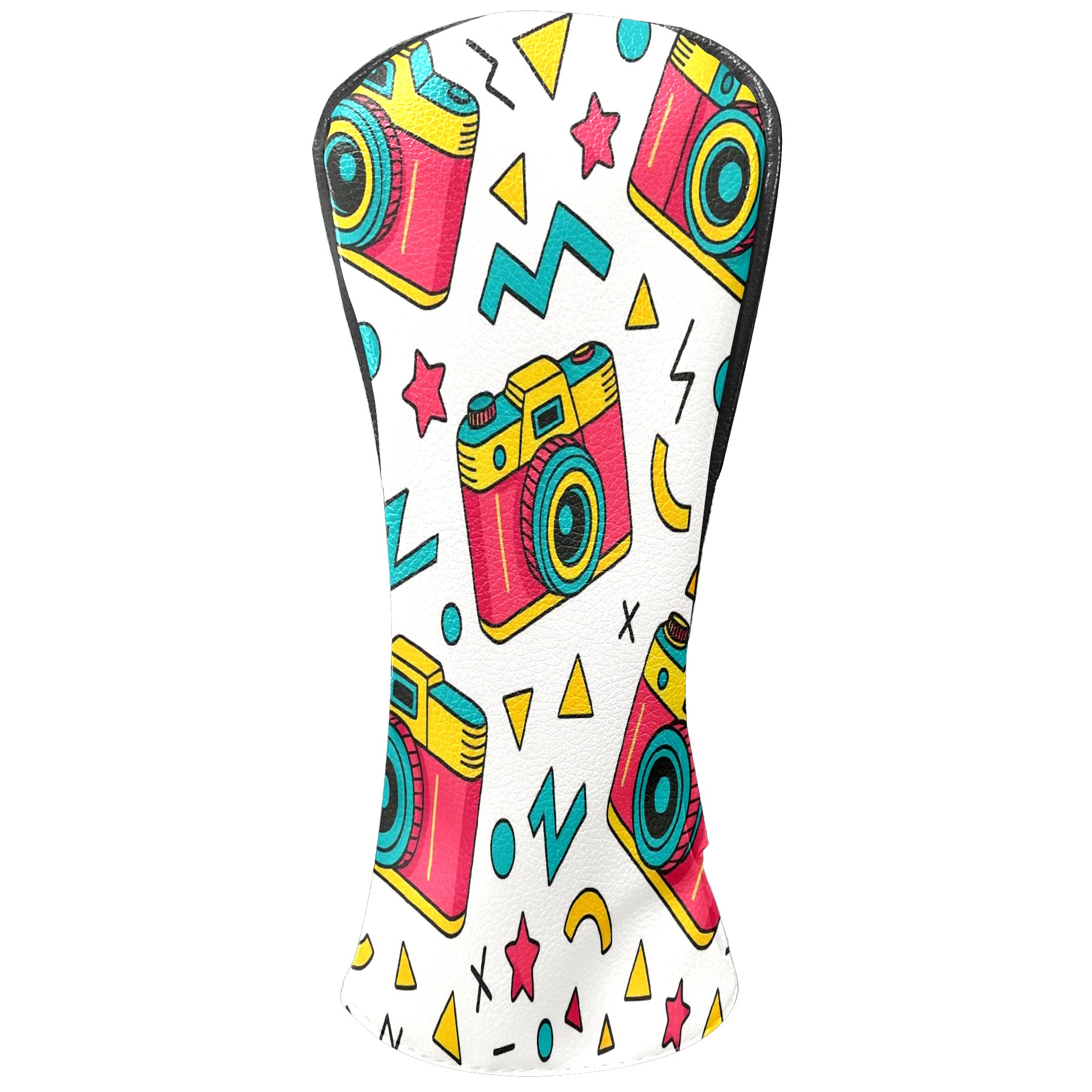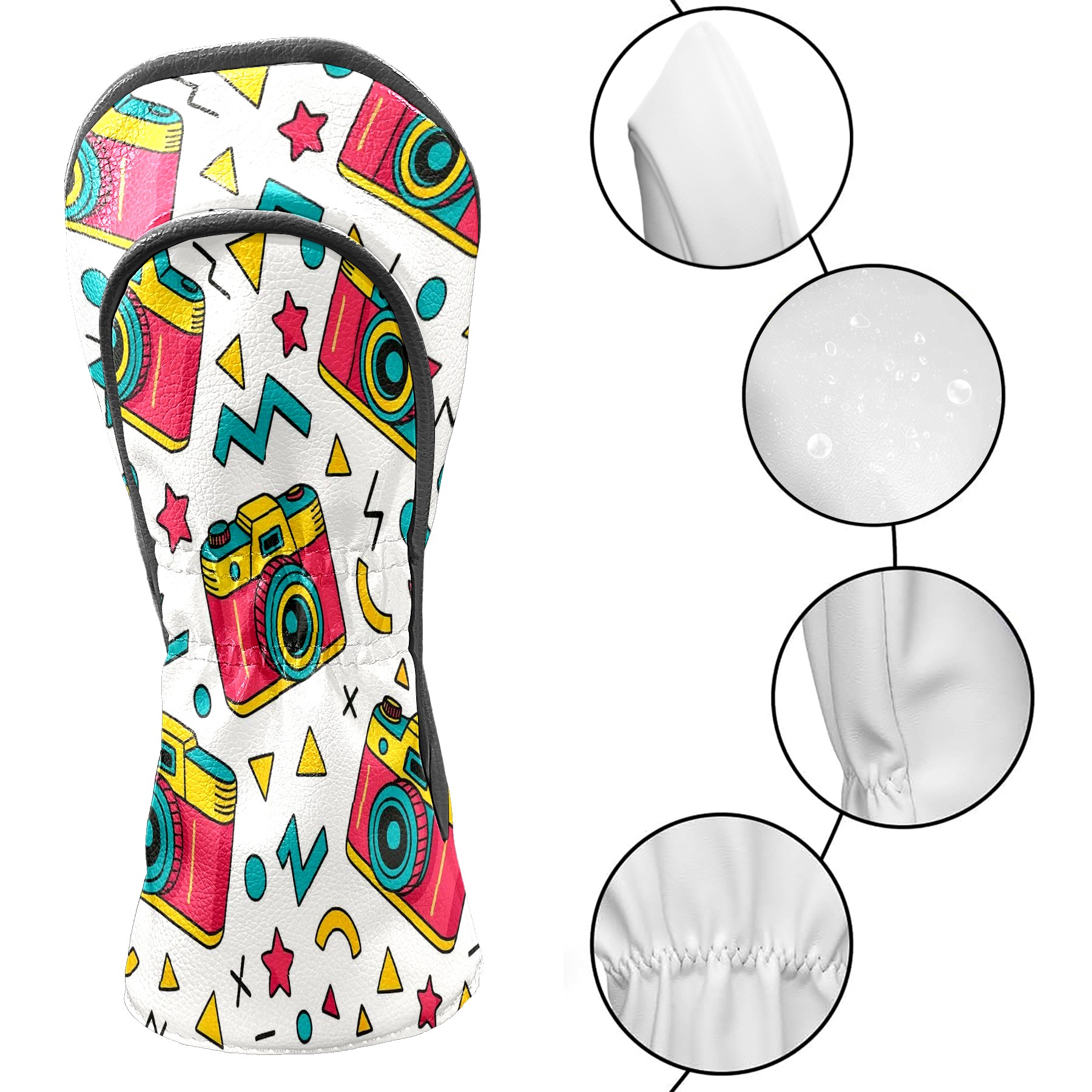 Counullo Golf Head Covers - Funny Multicolor Retro Cameras Driver Headcover, Durable PU Leather & Soft Velvet Lining, Secure Elastic Band, Perfect Christmas Golf Gift for Men