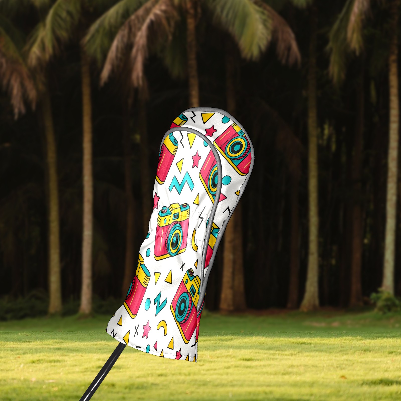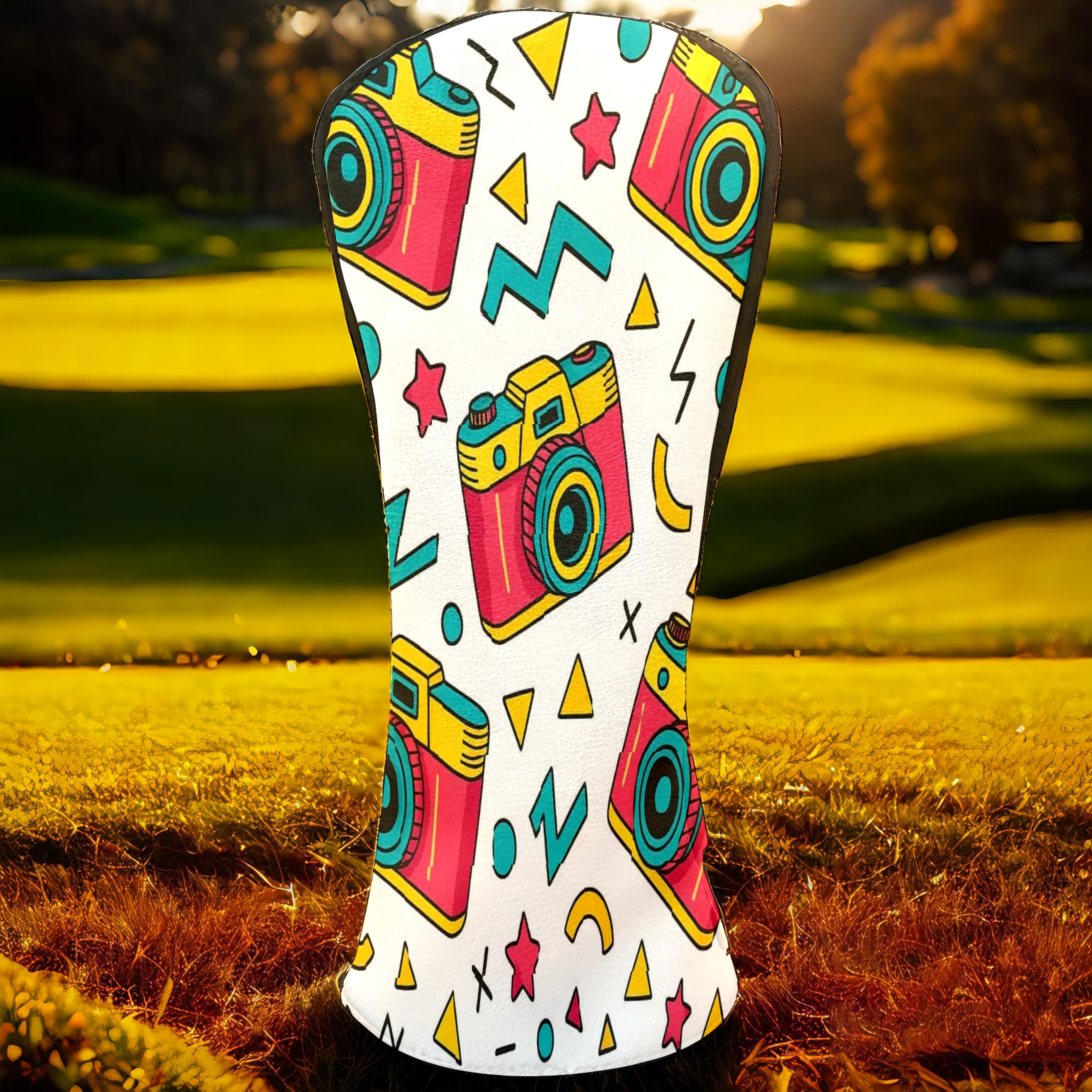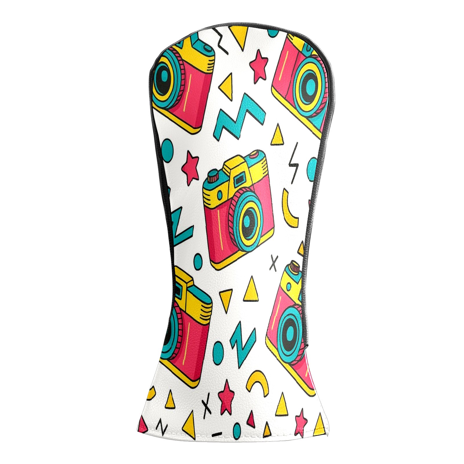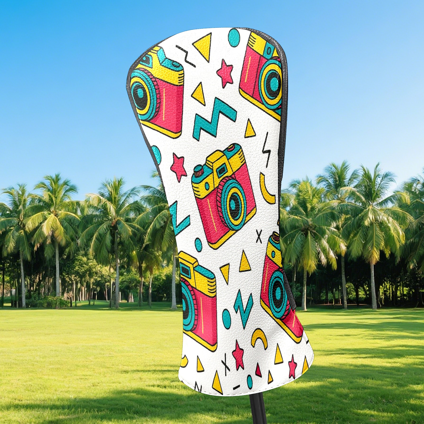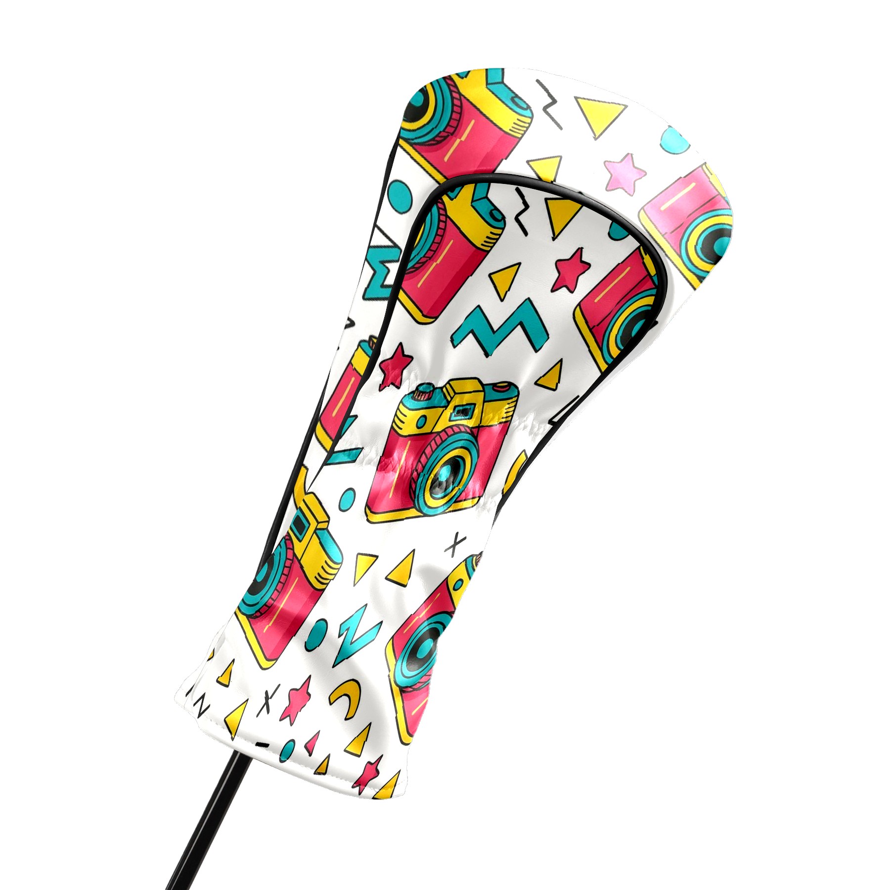 Counullo Golf Head Covers - Funny Multicolor Retro Cameras Driver Headcover, Durable PU Leather & Soft Velvet Lining, Secure Elastic Band, Perfect Christmas Golf Gift for Men