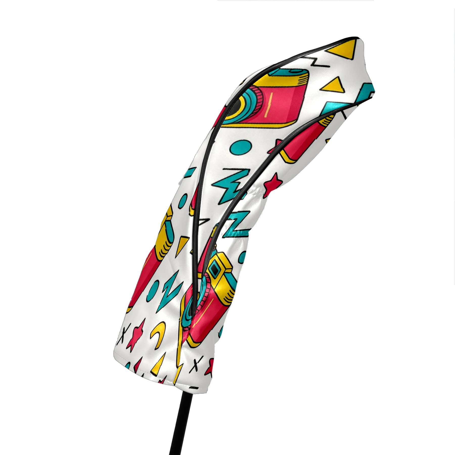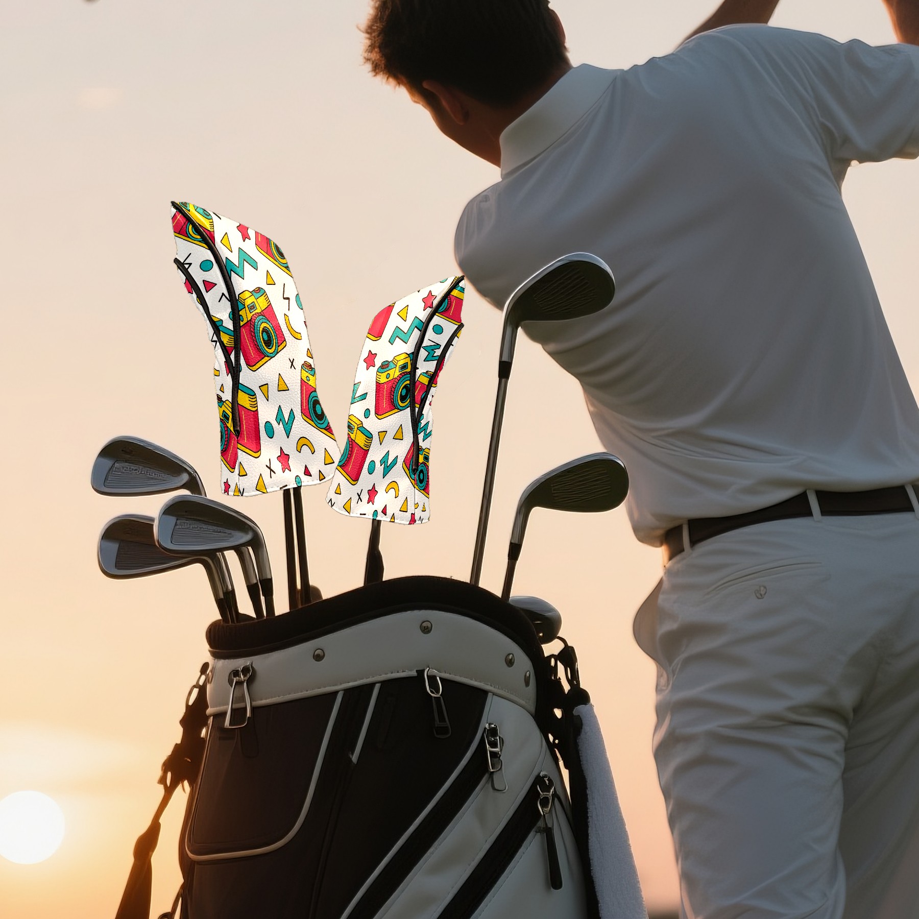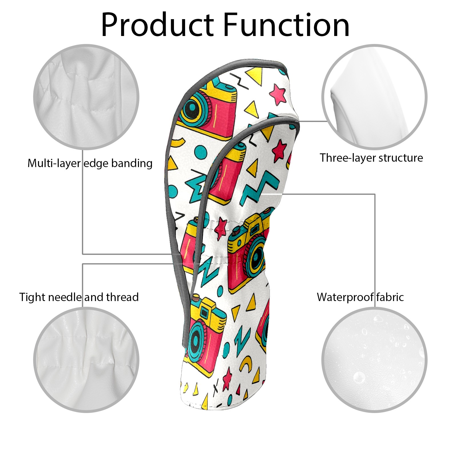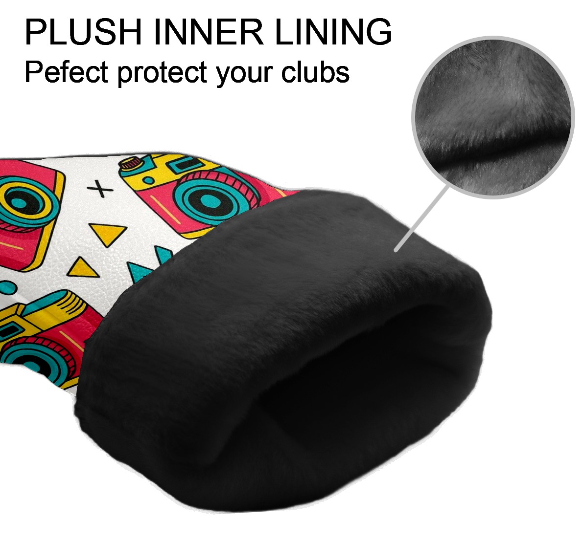 Counullo Golf Head Covers - Funny Multicolor Retro Cameras Driver Headcover, Durable PU Leather & Soft Velvet Lining, Secure Elastic Band, Perfect Christmas Golf Gift for Men