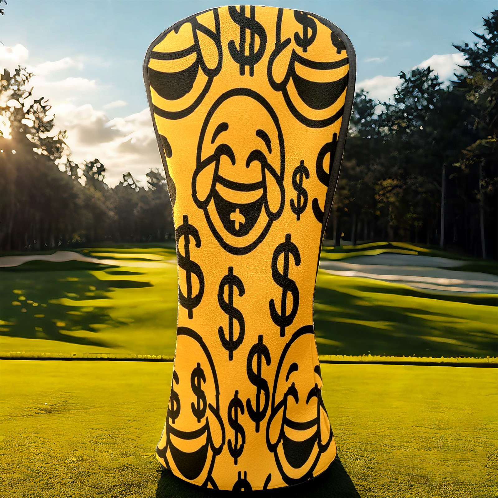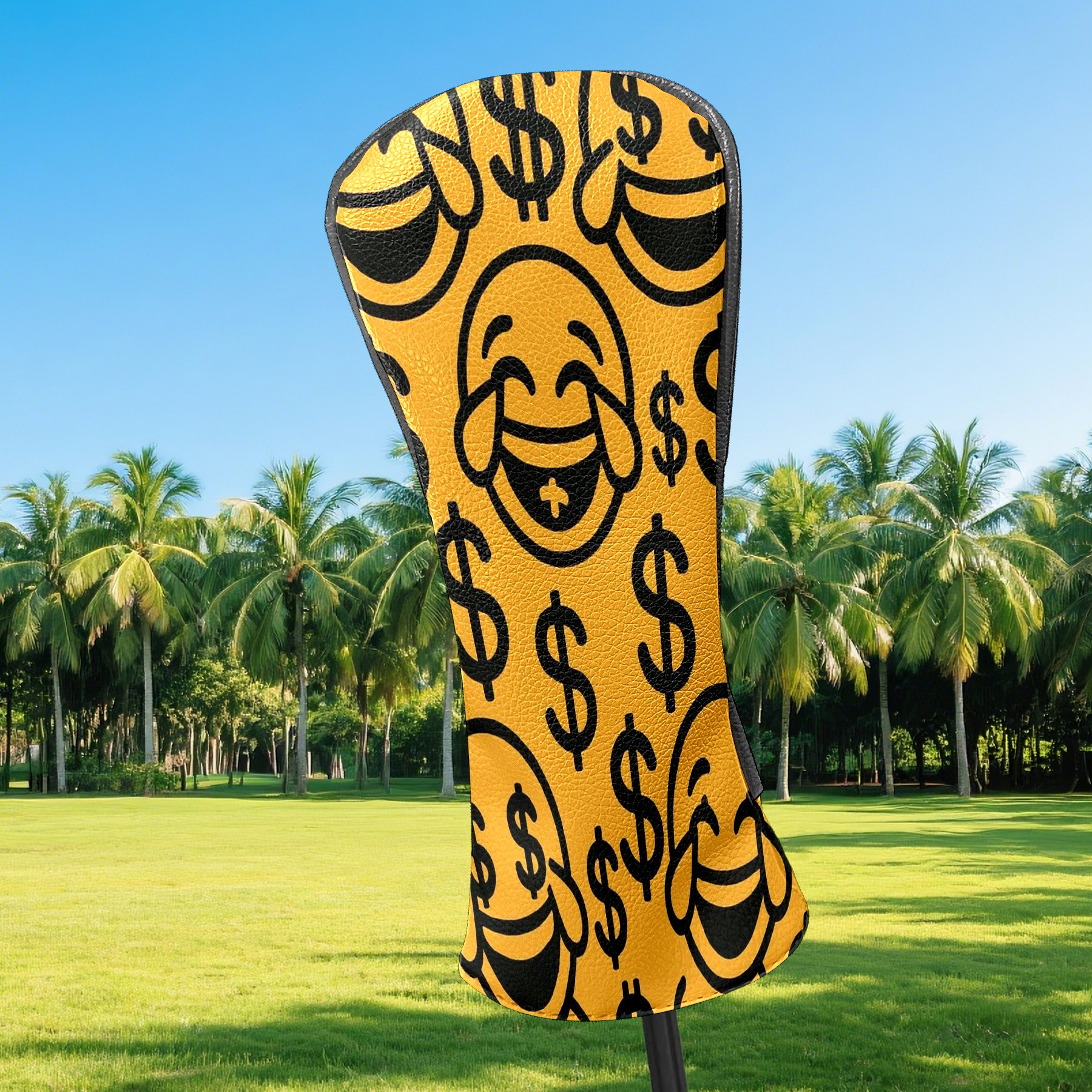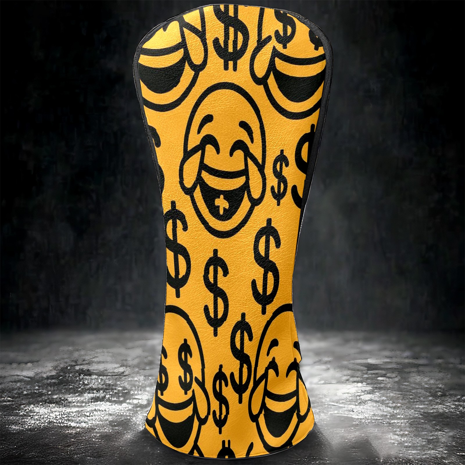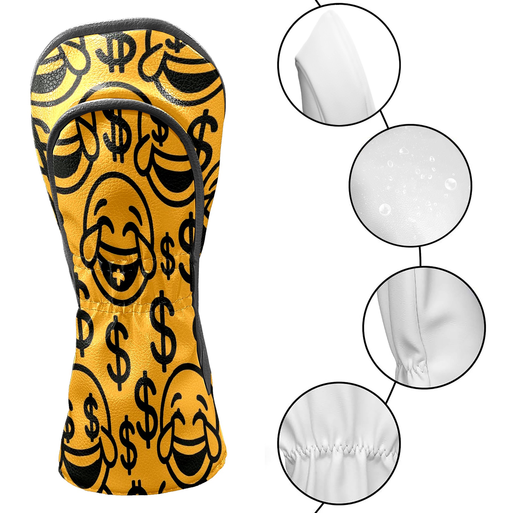Counullo Golf Head Covers - Funny Yellow Dollar Smiles Driver Headcover, Durable PU Leather & Soft Velvet Lining, Secure Elastic Band, Perfect Christmas Golf Gift for Men