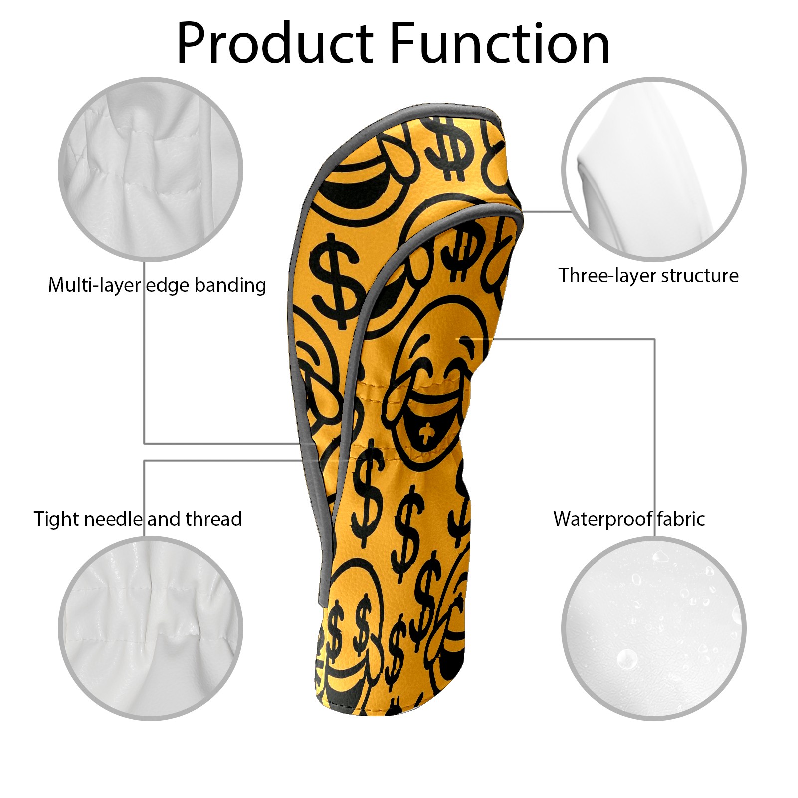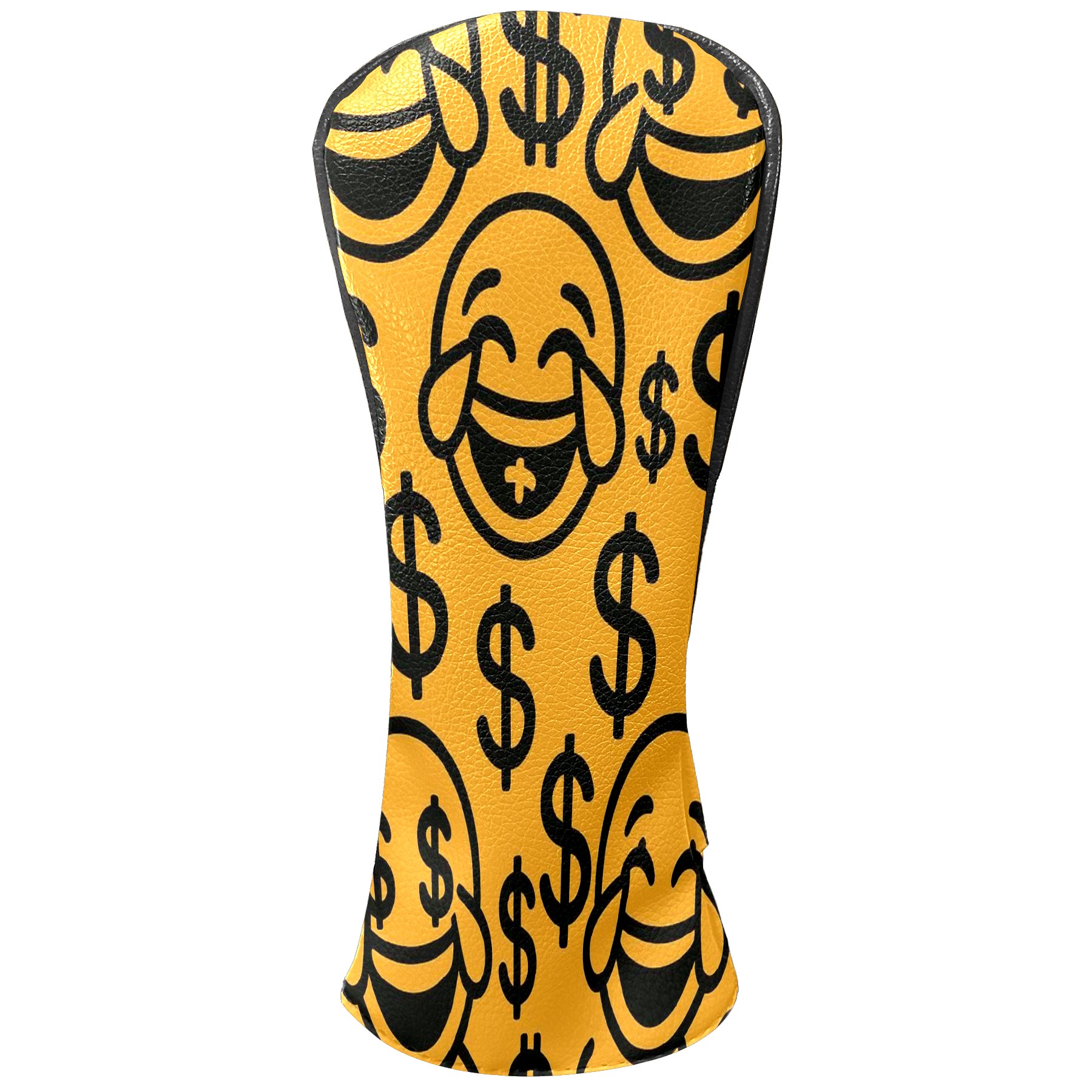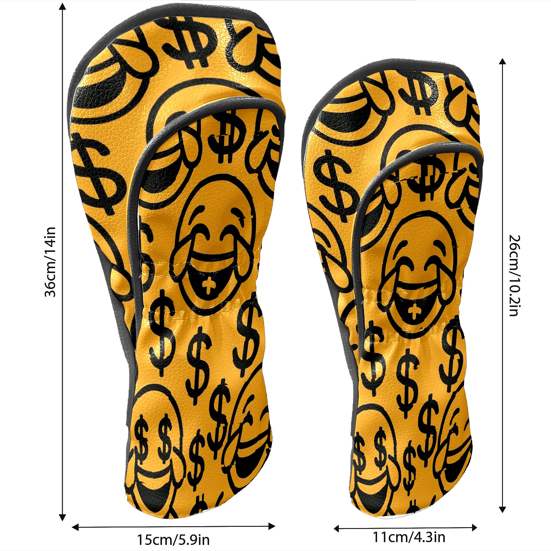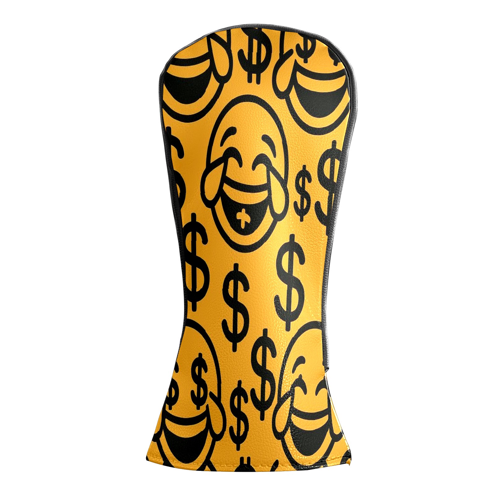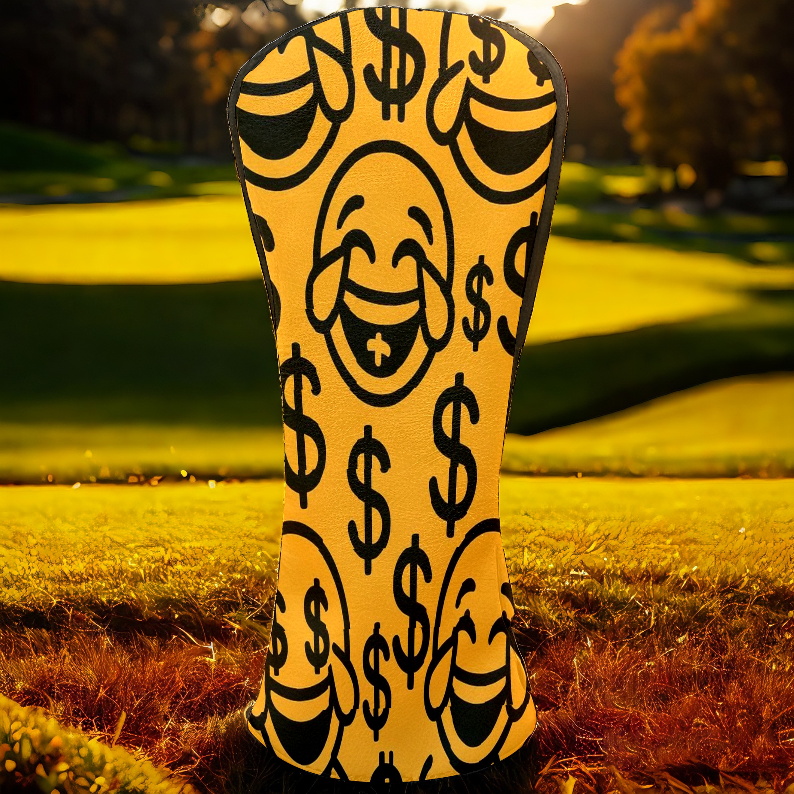 Counullo Golf Head Covers - Funny Yellow Dollar Smiles Driver Headcover, Durable PU Leather & Soft Velvet Lining, Secure Elastic Band, Perfect Christmas Golf Gift for Men