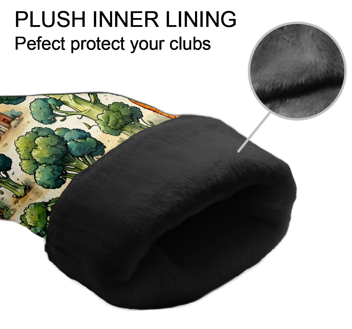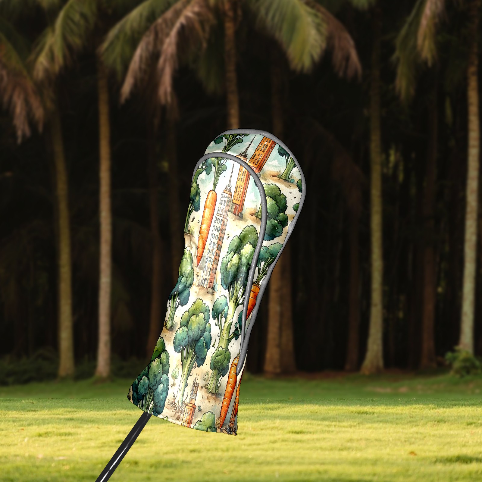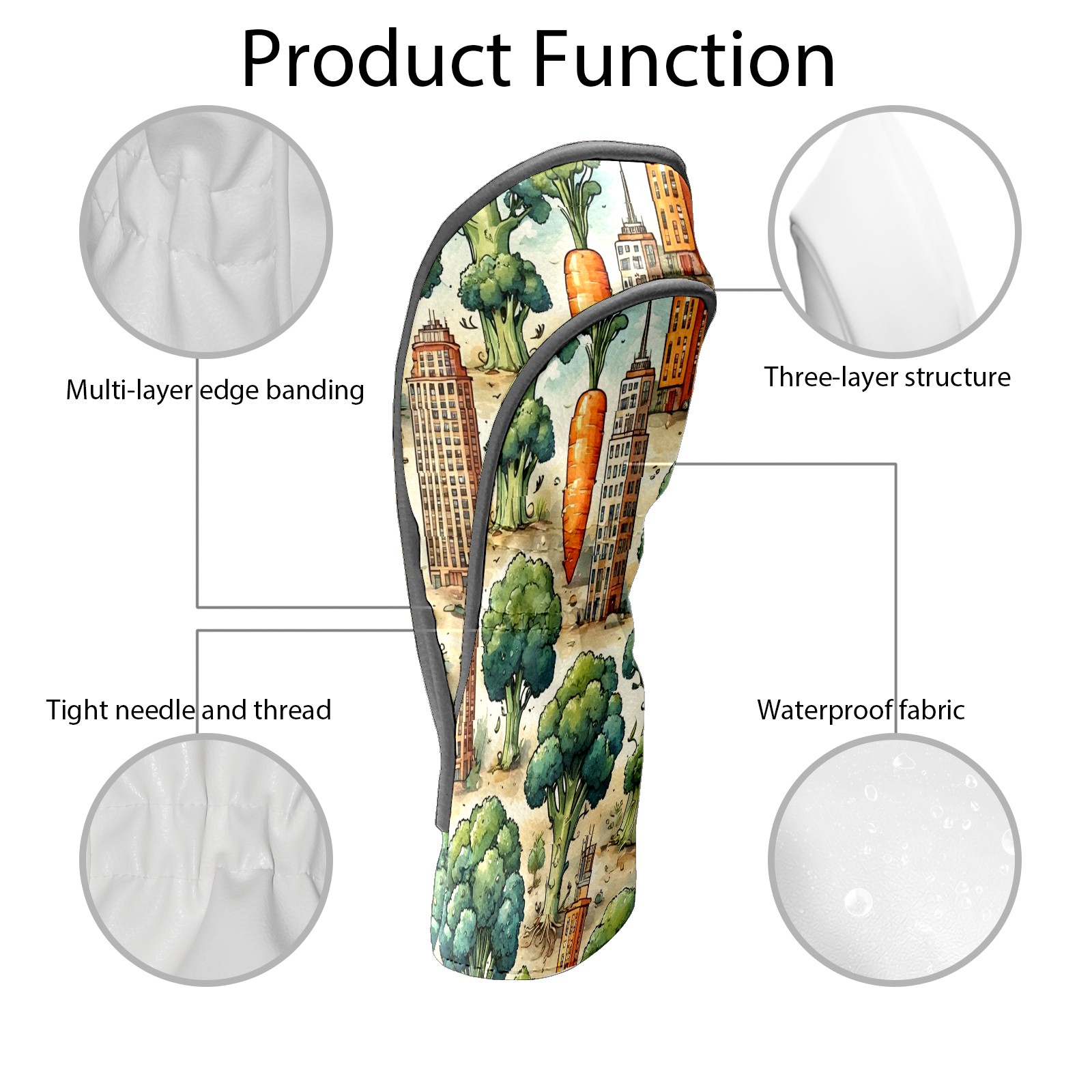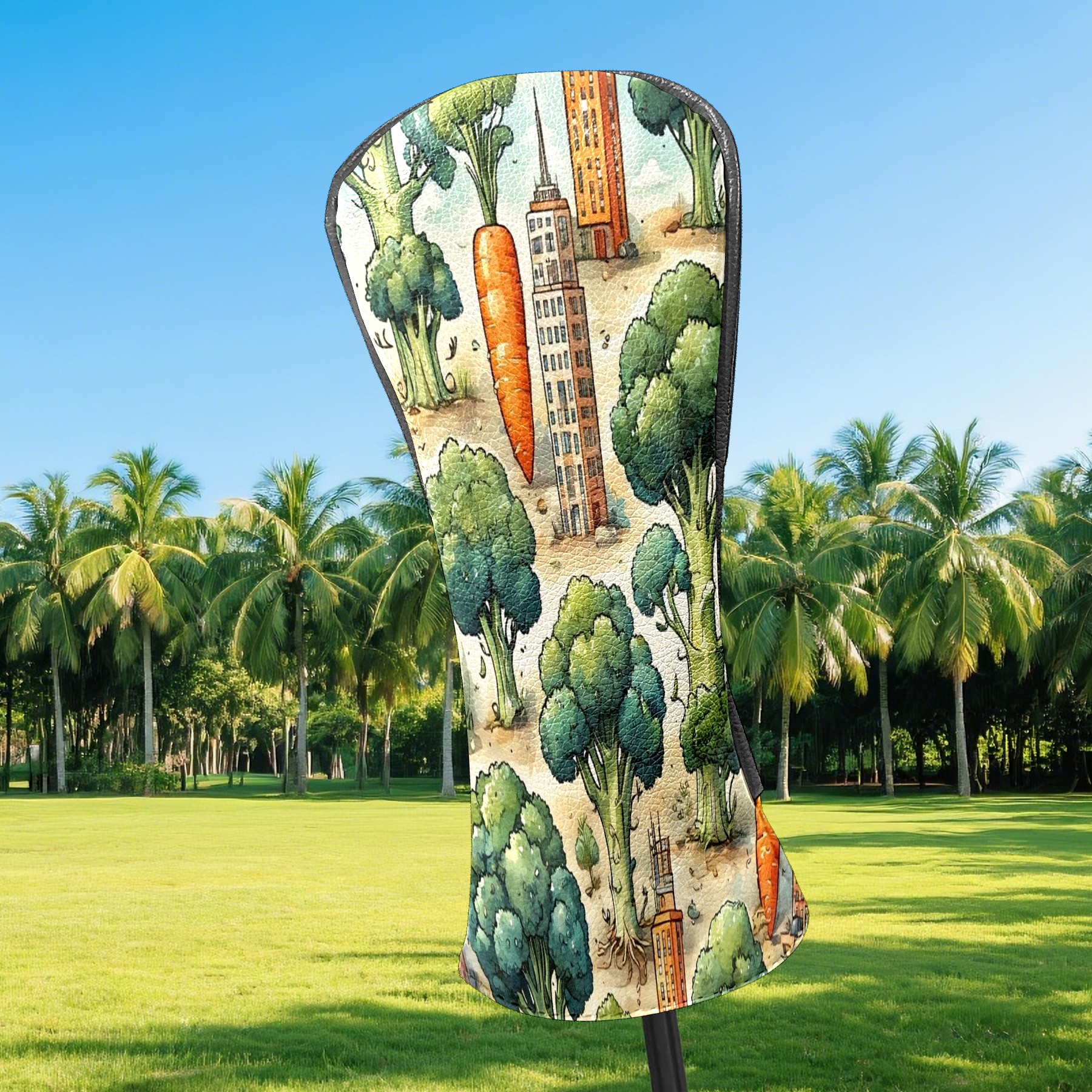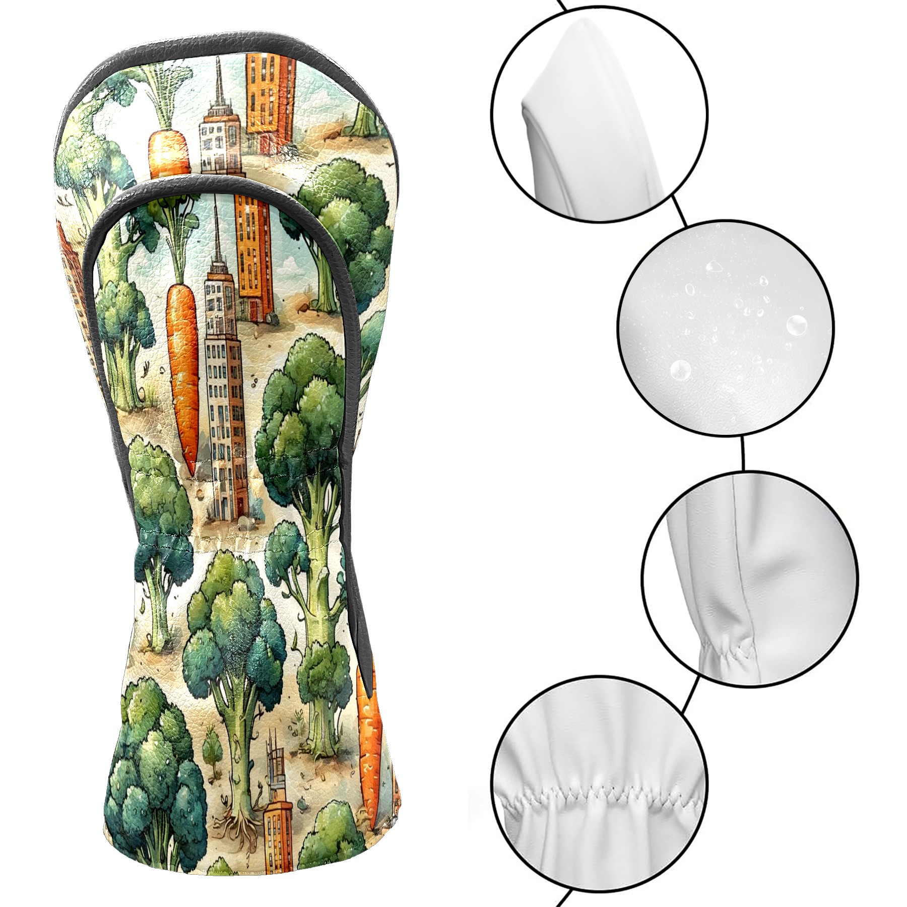 Counullo Golf Head Covers - Funny Green Vegetable City Driver Headcover, Durable PU Leather & Soft Velvet Lining, Secure Elastic Band, Perfect Christmas Golf Gift for Men