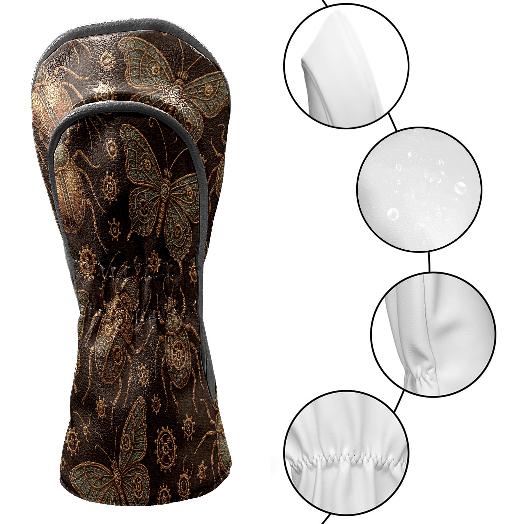 Counullo Golf Head Covers - Funny Brown Butterflies Bugs Driver Headcover, Durable PU Leather & Soft Velvet Lining, Secure Elastic Band, Perfect Christmas Golf Gift for Men