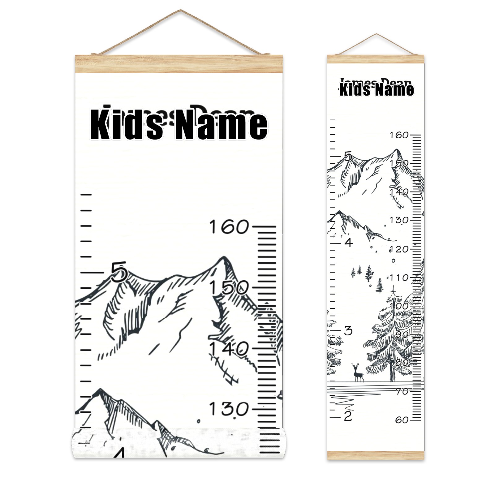 Personalized Kids Name Growth Chart Ruler for Wall Wood Frame Canvas Height Measure Chart 13.4x56 in Hanging Growth Chart Winter Mountain11.12 Boys Girls Room Decor