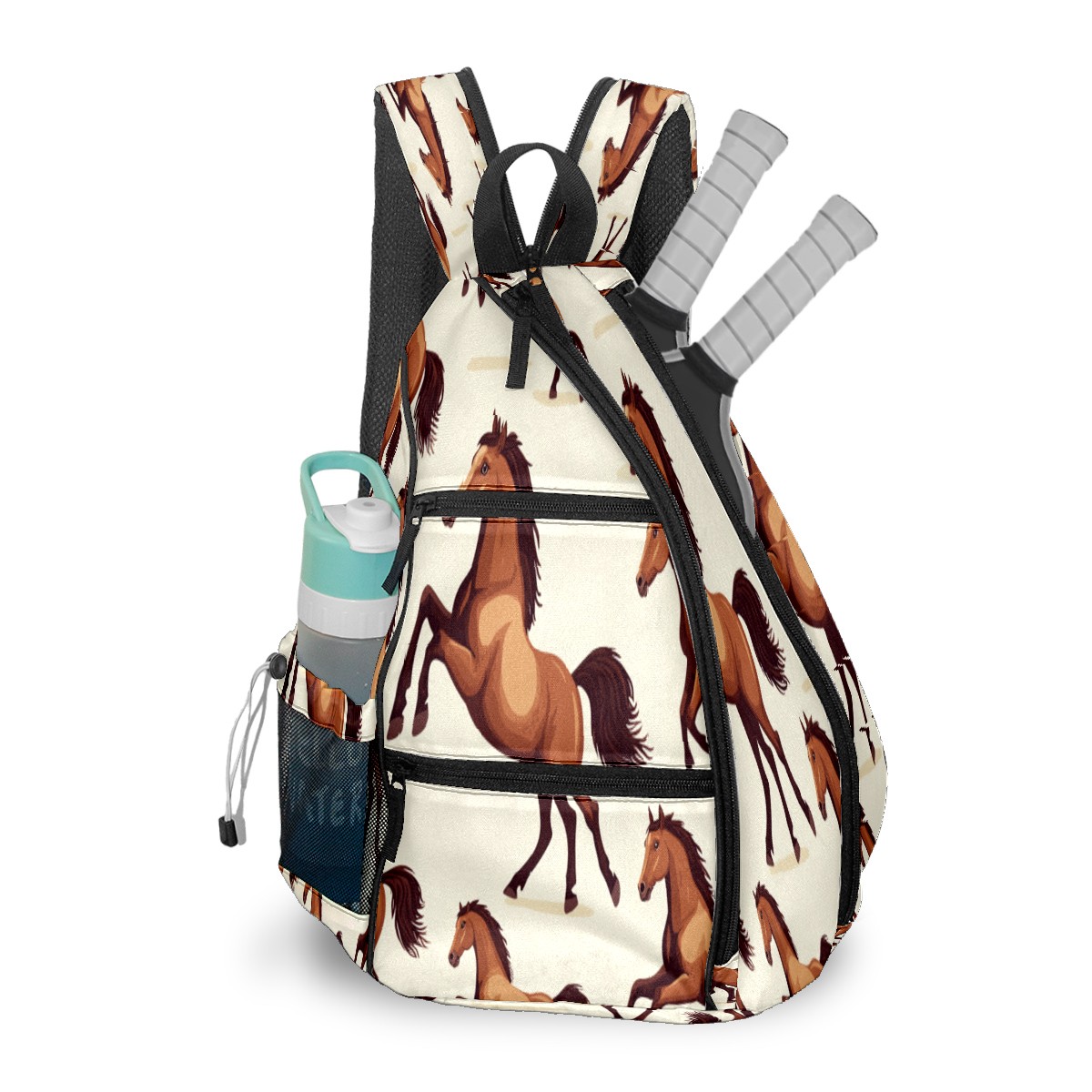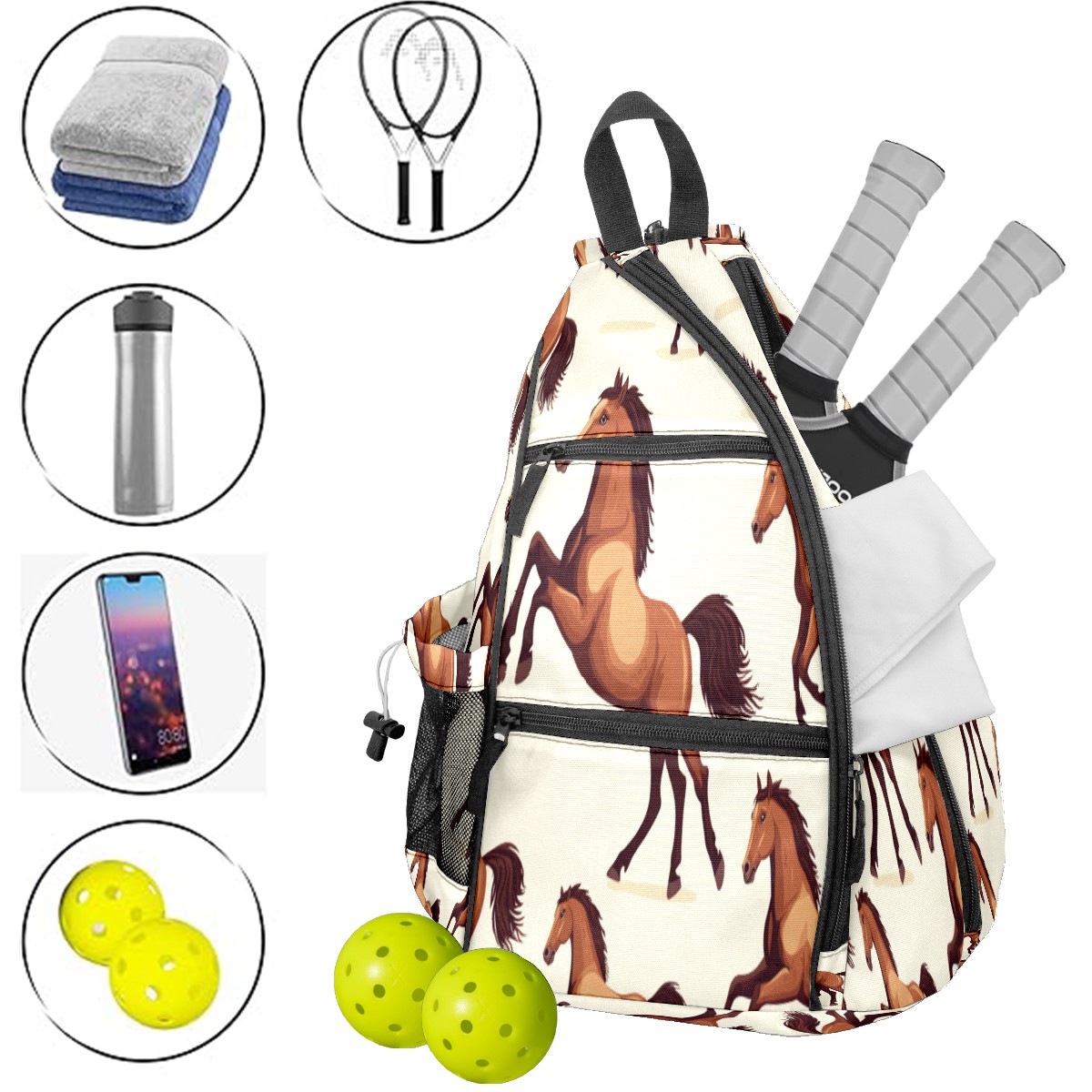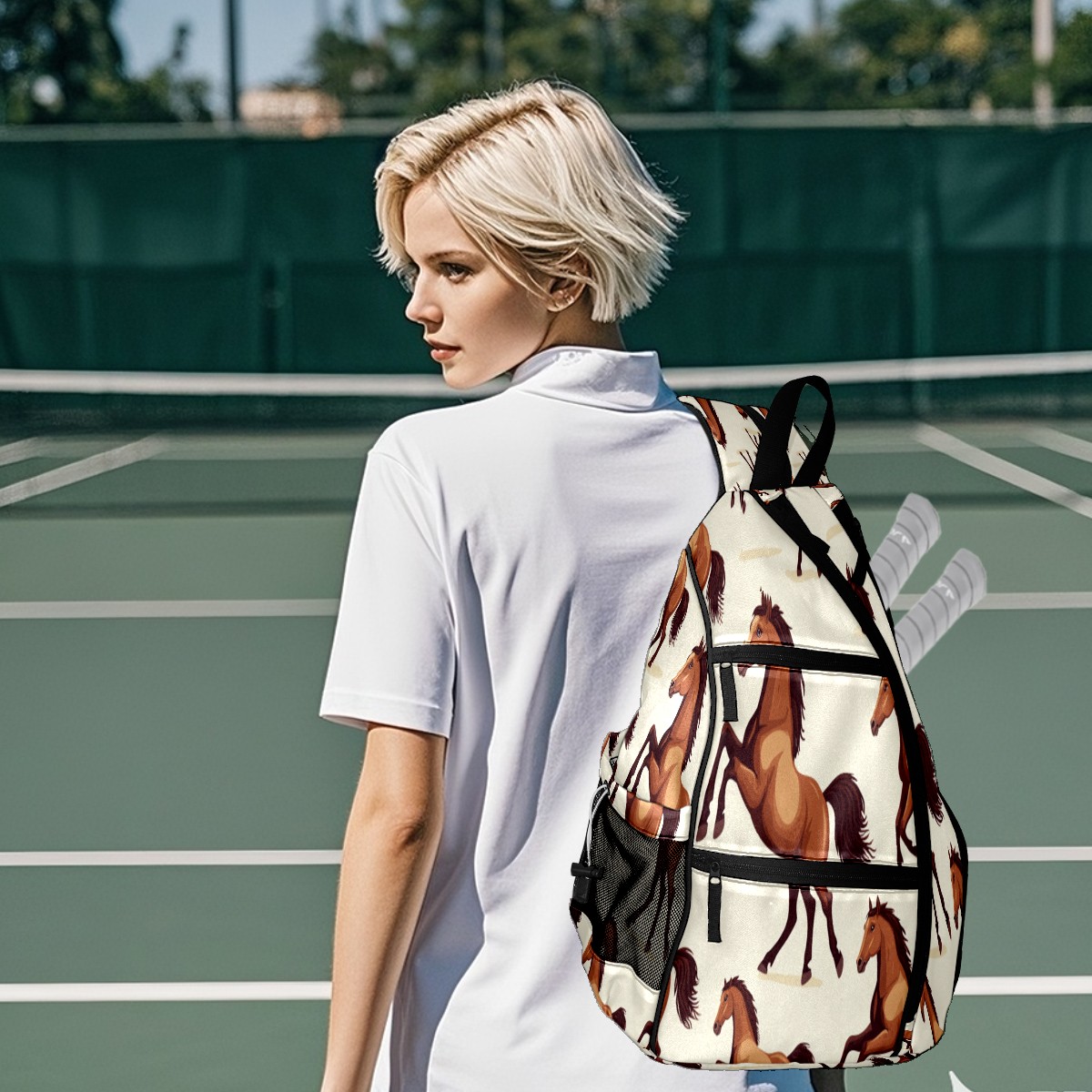 Pickleball Bag - Brown Standing Horse Unisex Pickleball Backpack with Fence Hook, Adjustable Shoulder Straps, Security Pocket, Perfect Gift