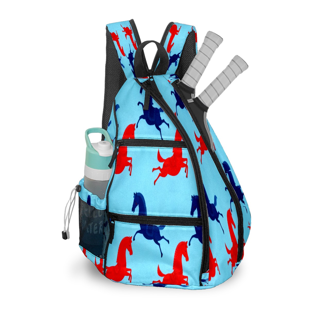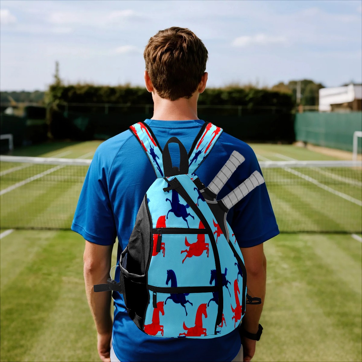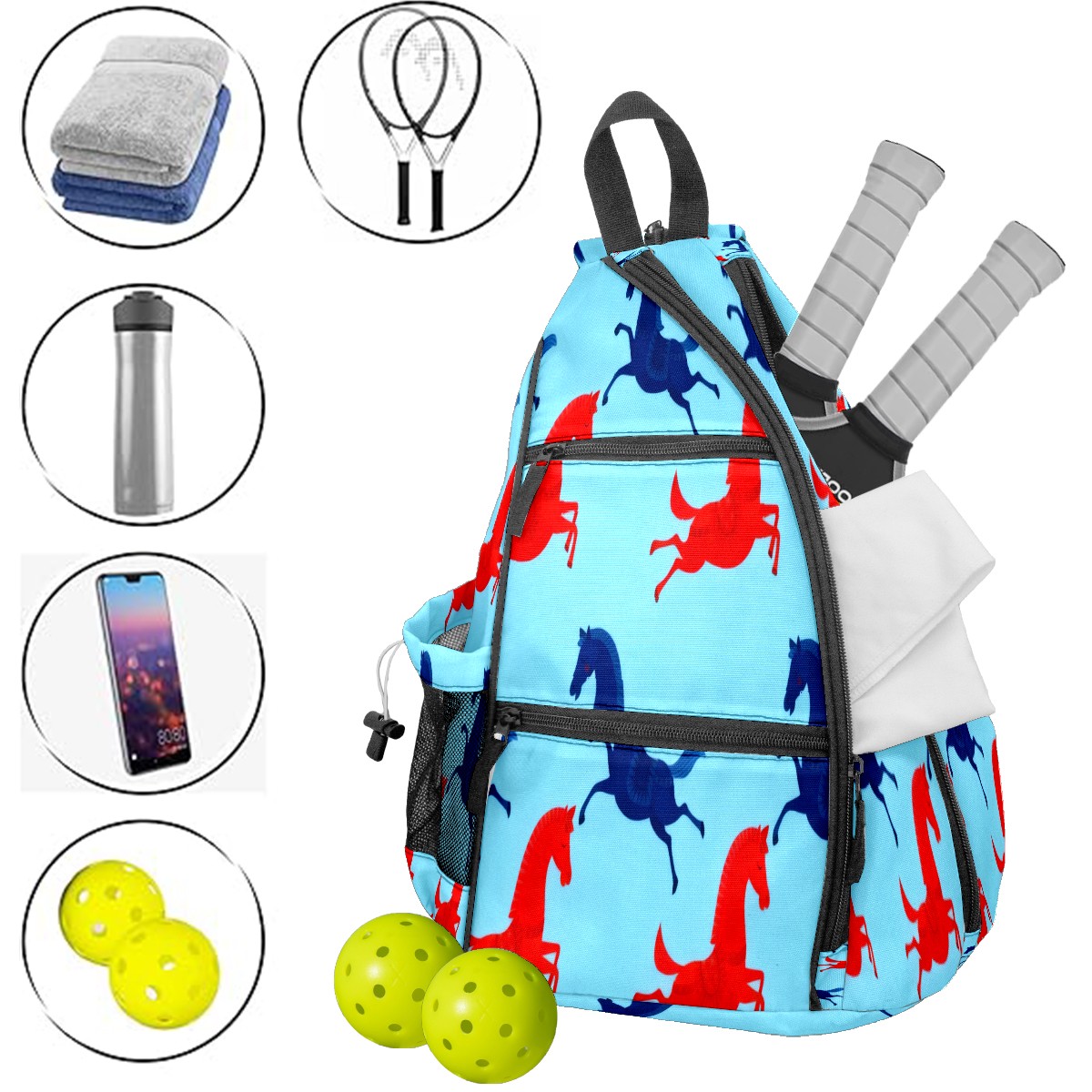 Pickleball Bag - Red Blue Galloping Horse Unisex Pickleball Backpack with Fence Hook, Adjustable Shoulder Straps, Security Pocket, Perfect Gift