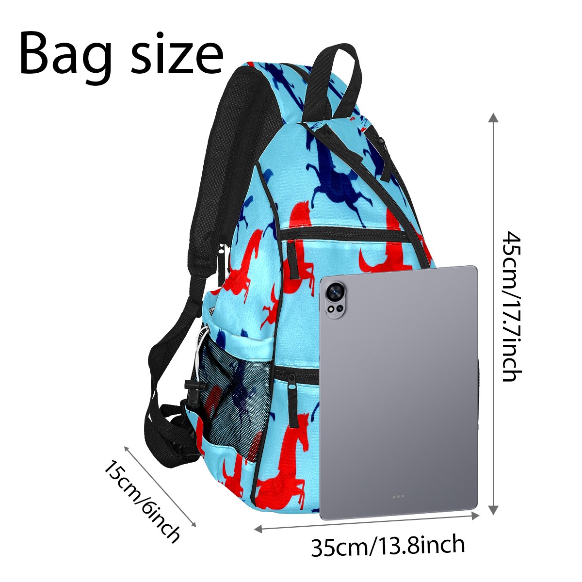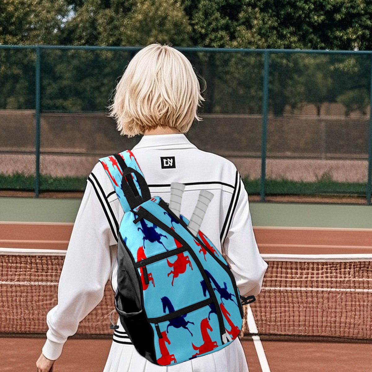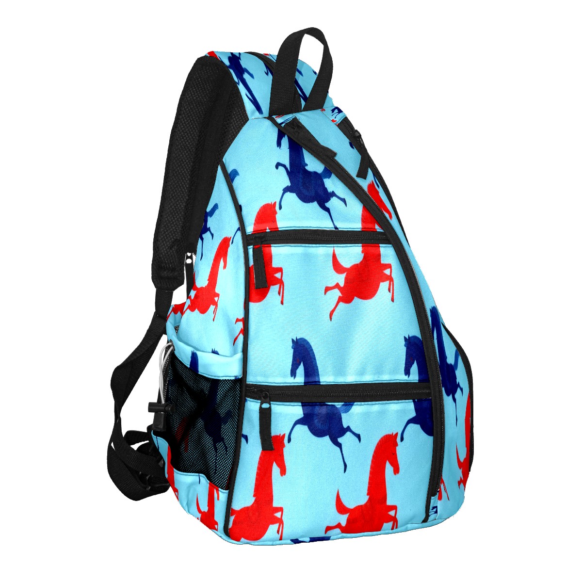 Pickleball Bag - Red Blue Galloping Horse Unisex Pickleball Backpack with Fence Hook, Adjustable Shoulder Straps, Security Pocket, Perfect Gift