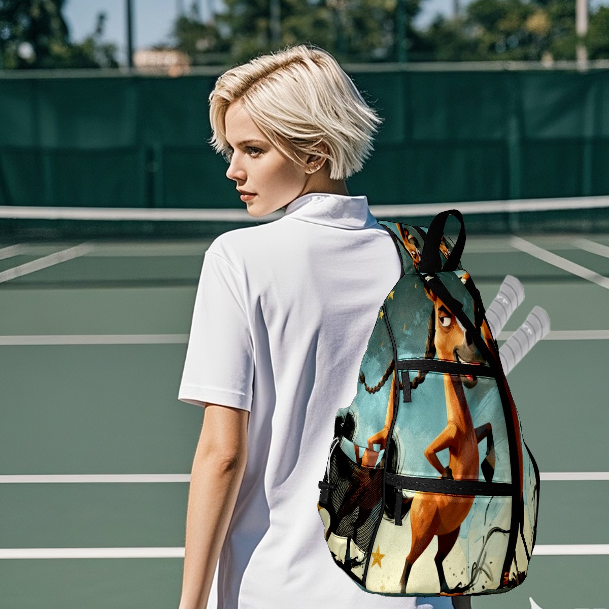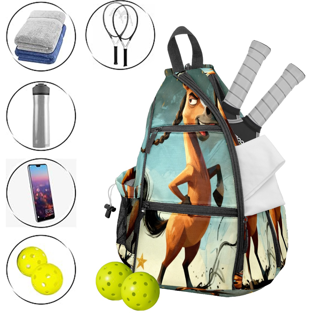 Pickleball Bag - Braided Horse Unisex Pickleball Backpack with Fence Hook, Adjustable Shoulder Straps, Security Pocket Gift for pickle ball Lovers