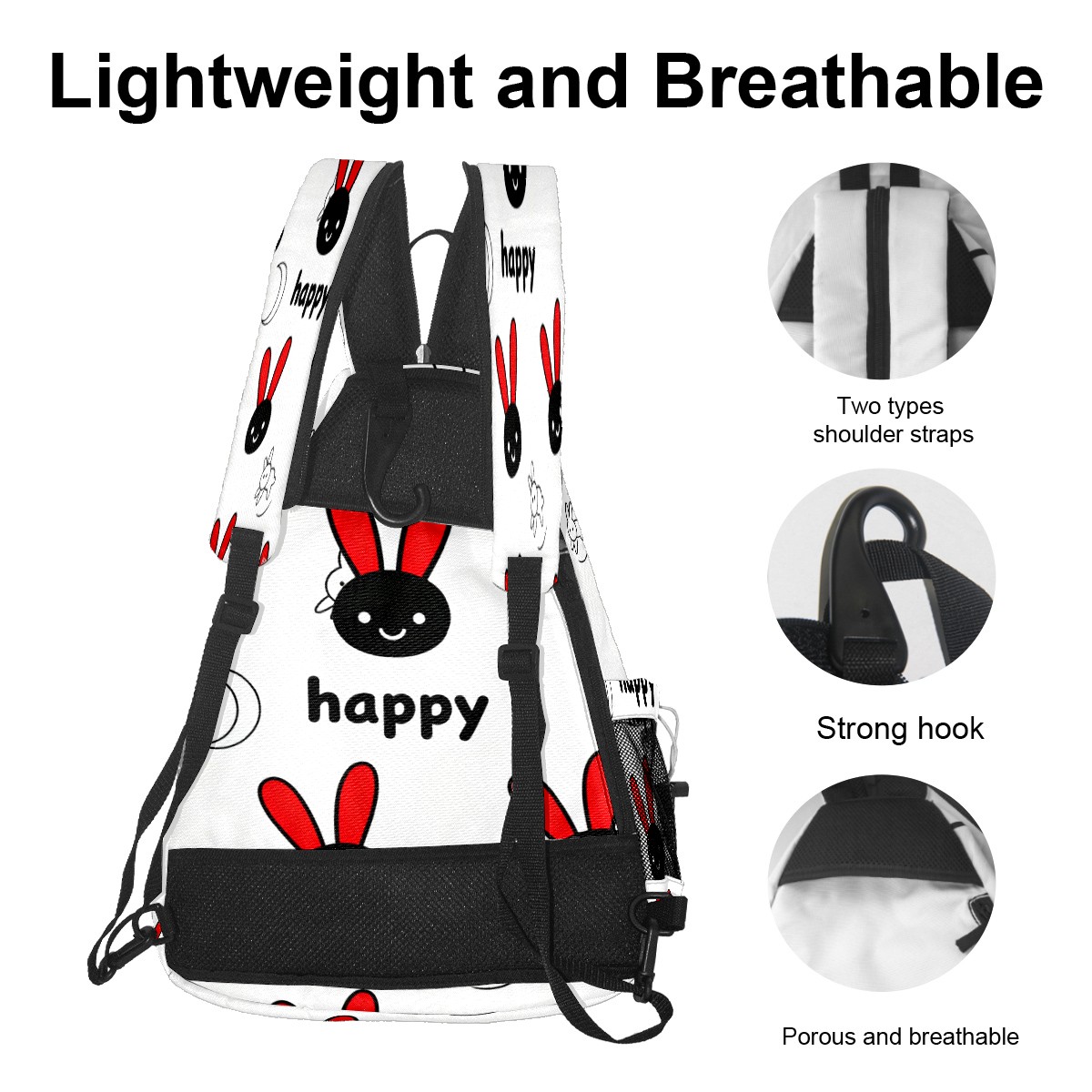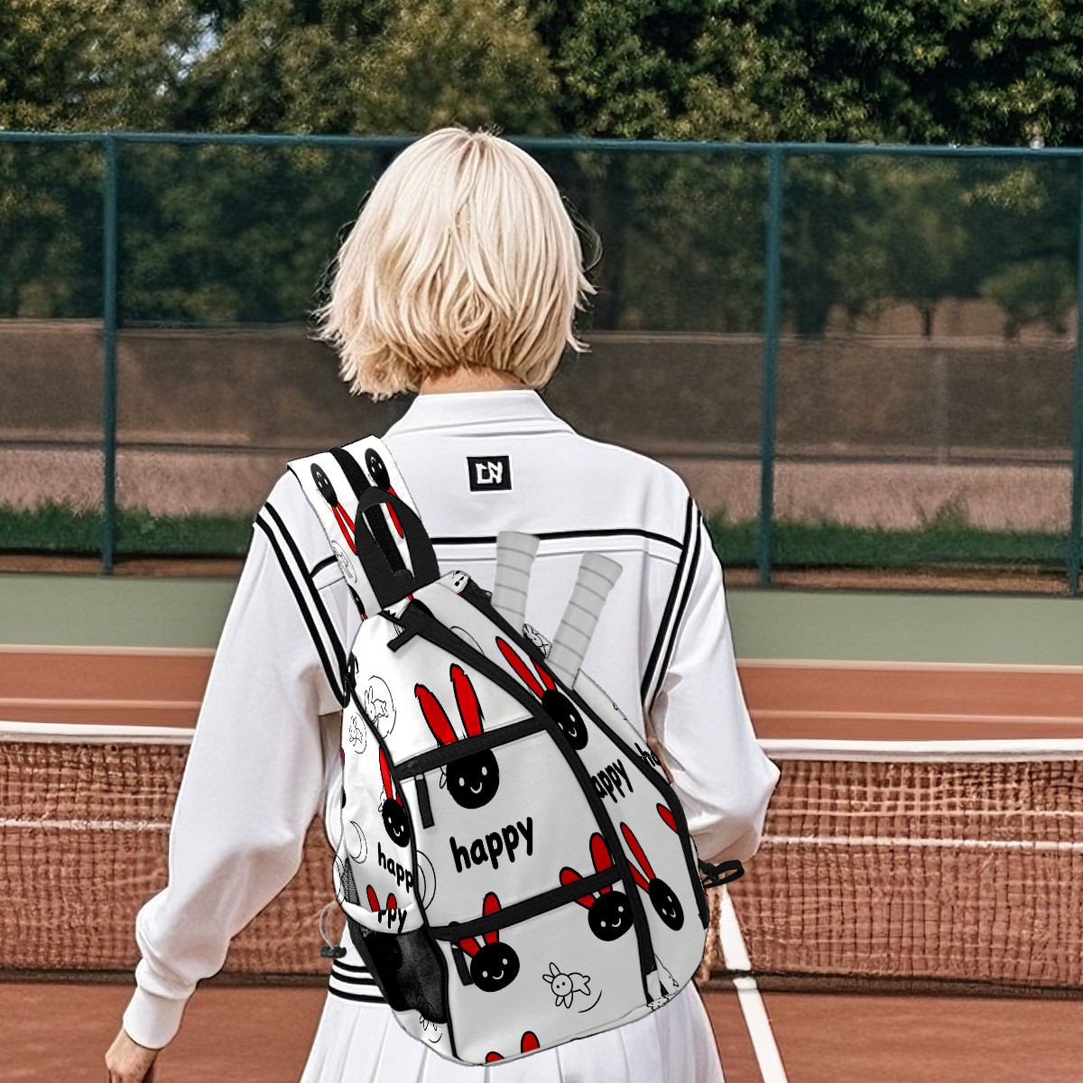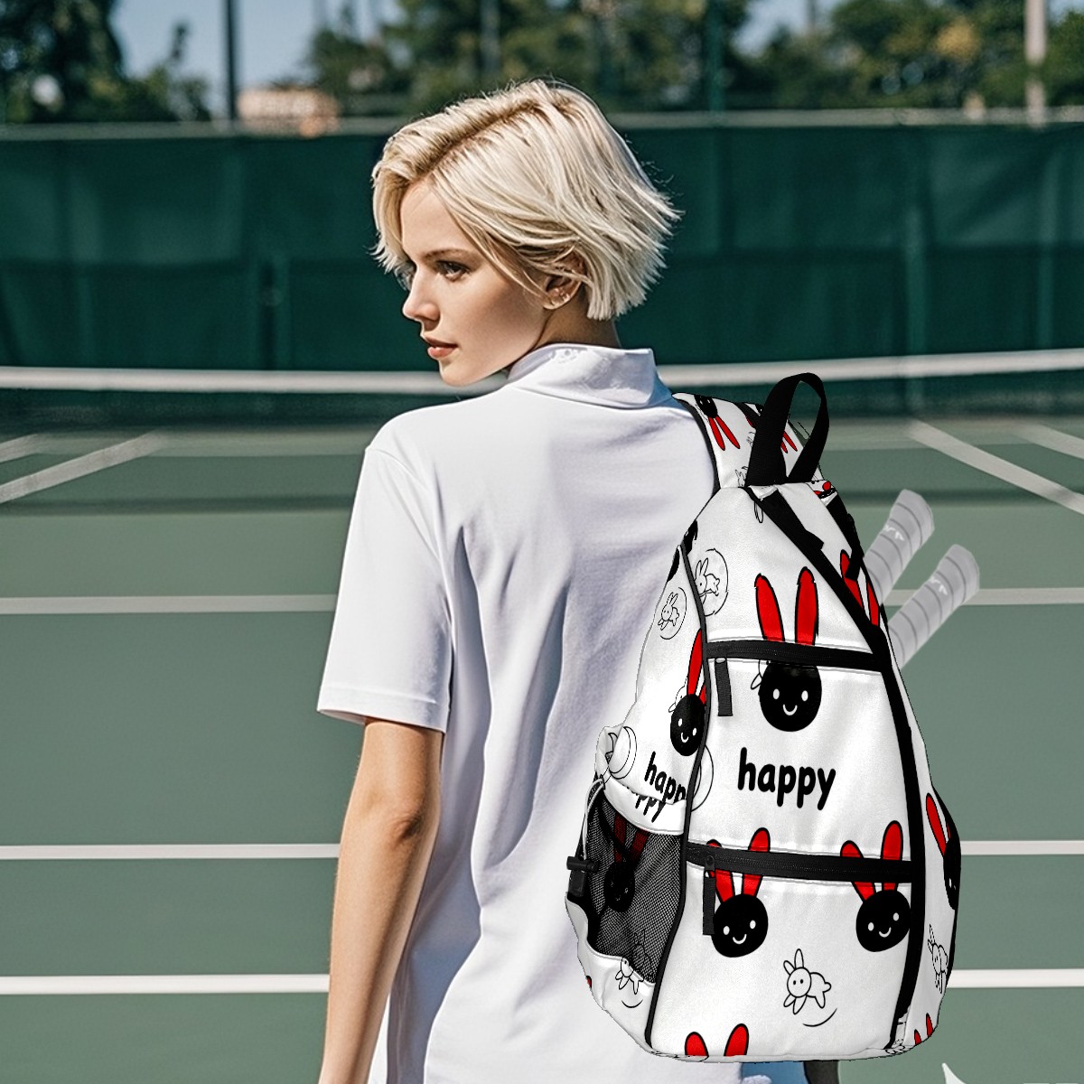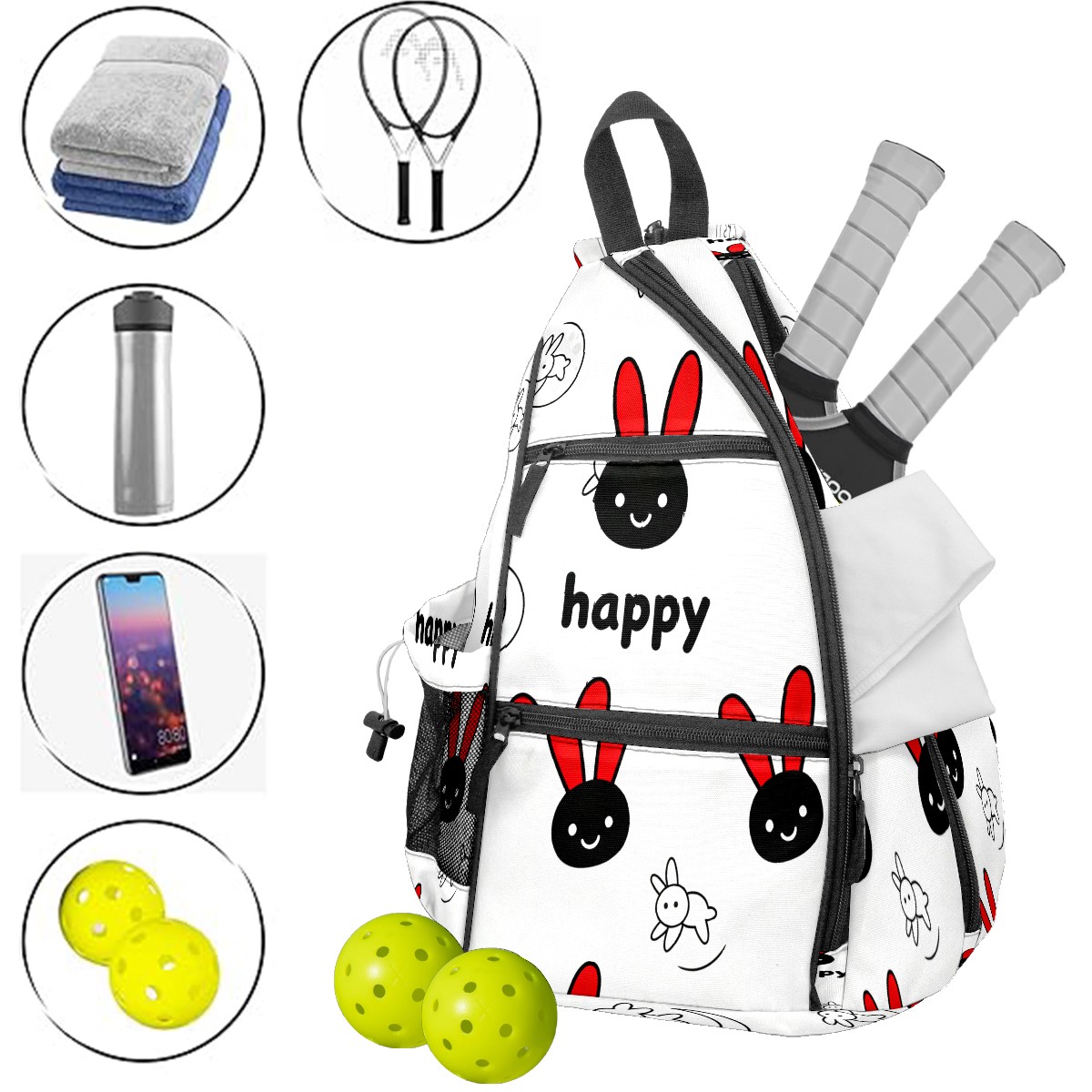 Pickleball Bag - Happy Rabbit 1 Unisex Pickleball Backpack with Fence Hook, Adjustable Shoulder Straps, Security Pocket Gift for pickle ball Lovers