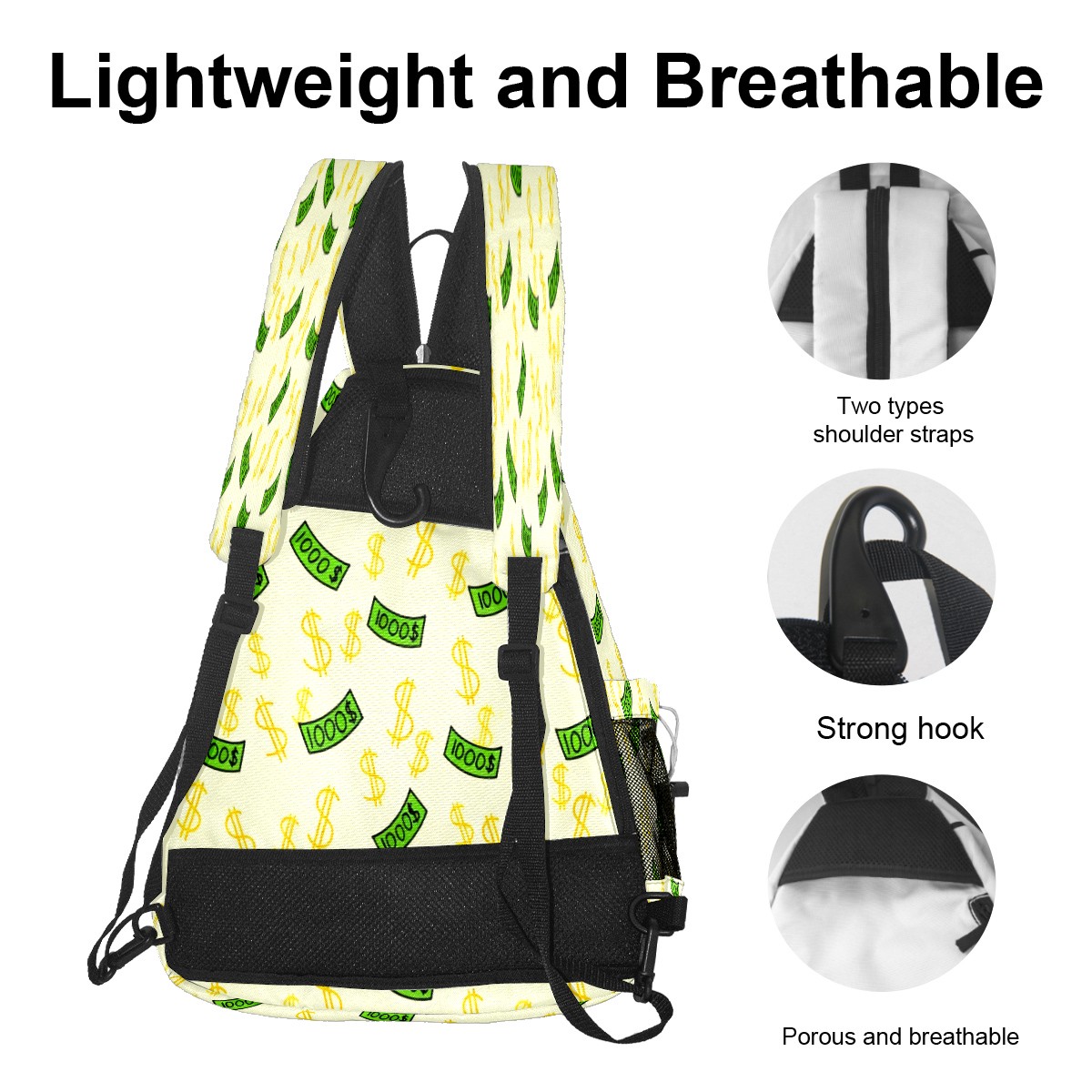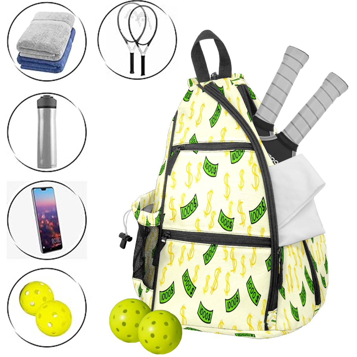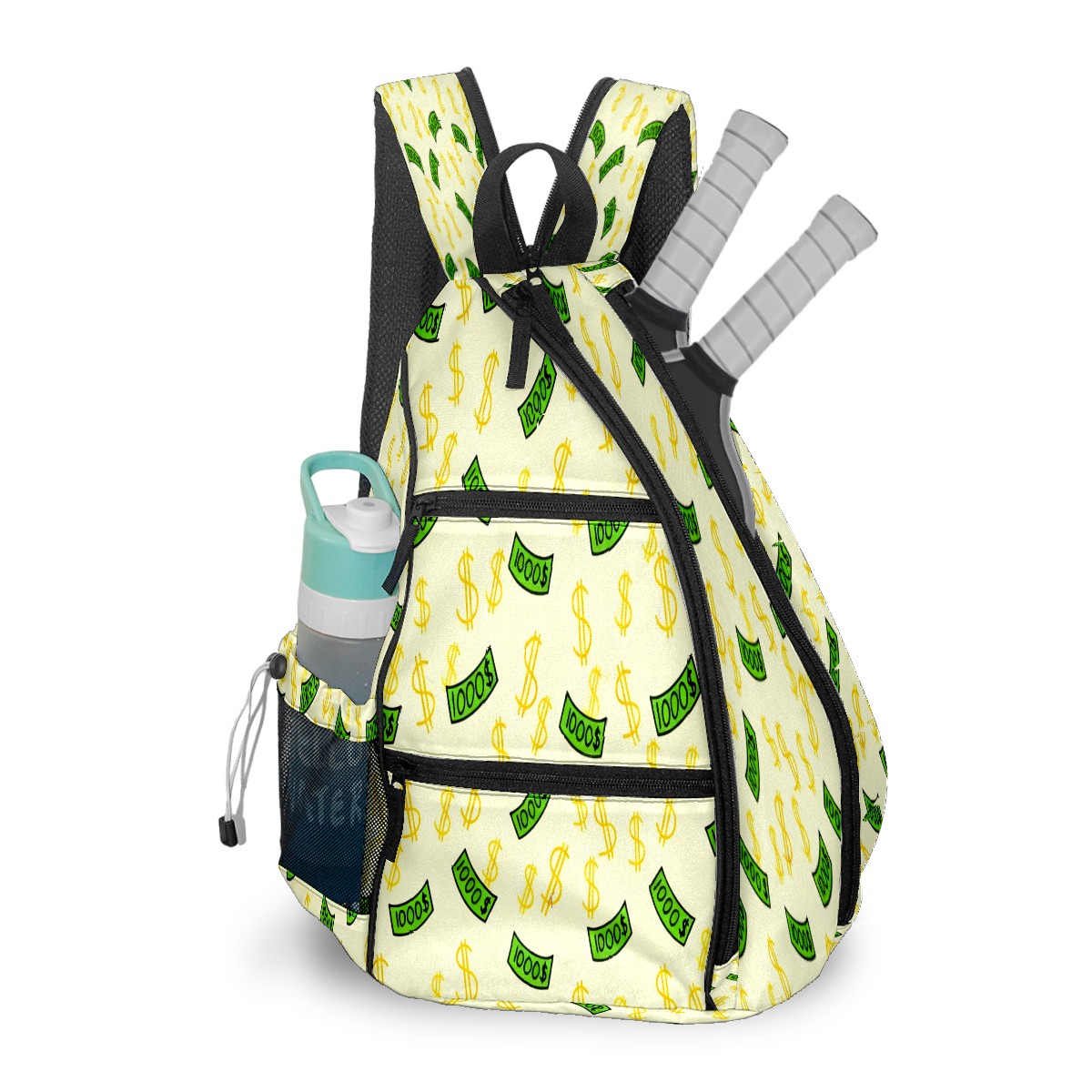 Pickleball Bag - US Dollar Banknote Symbol Unisex Pickleball Backpack with Fence Hook, Adjustable Shoulder Straps, Security Pocket Gift for pickle ball Lovers