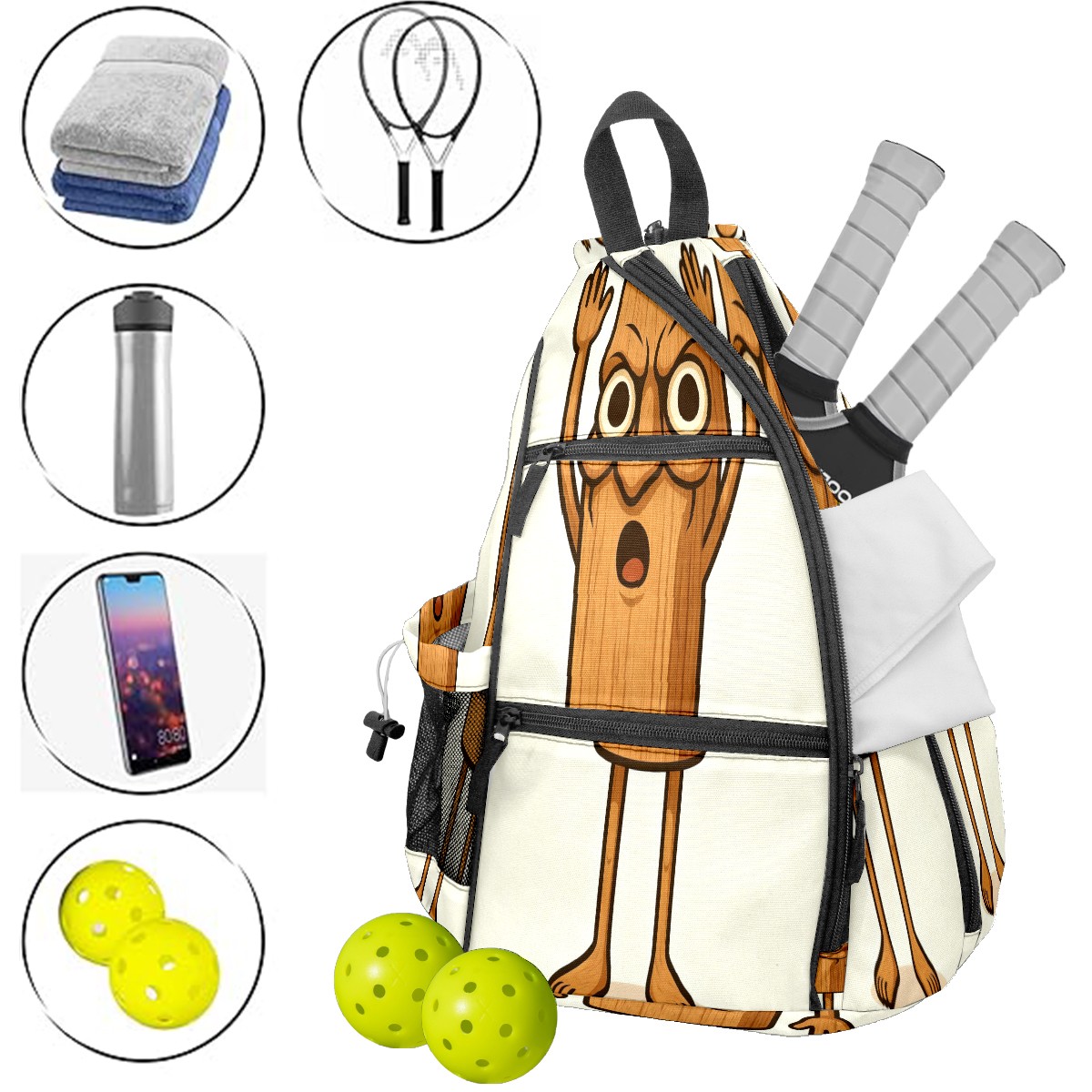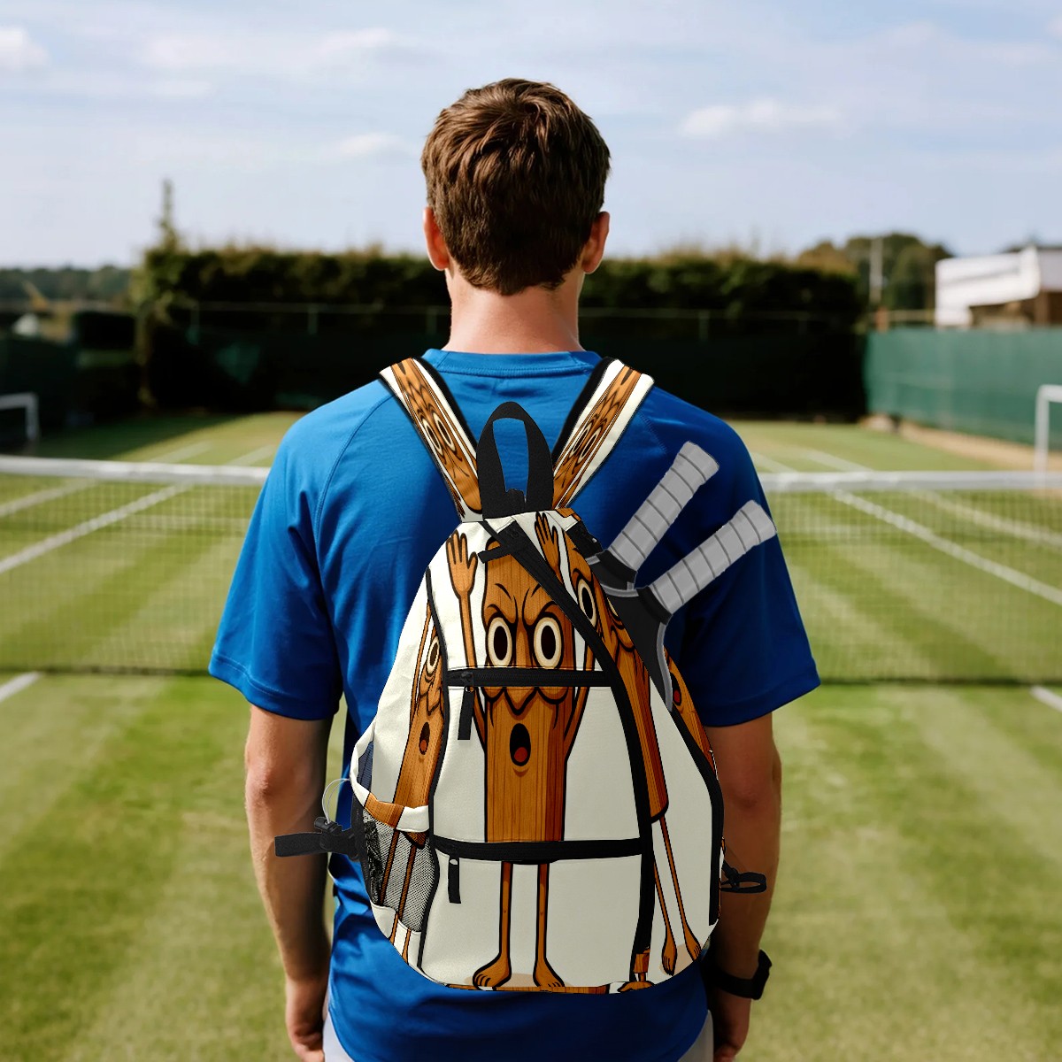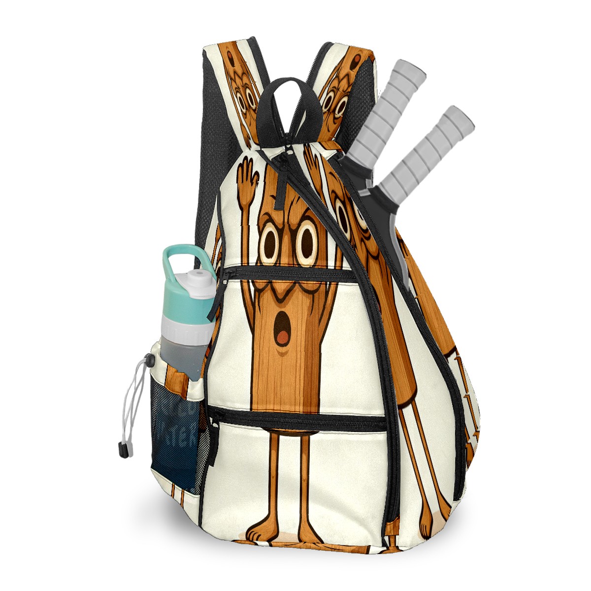 Pickleball Bag - Wooden Cartoon Characters Unisex Pickleball Backpack with Fence Hook, Adjustable Shoulder Straps, Security Pocket Gift for pickle ball Lovers