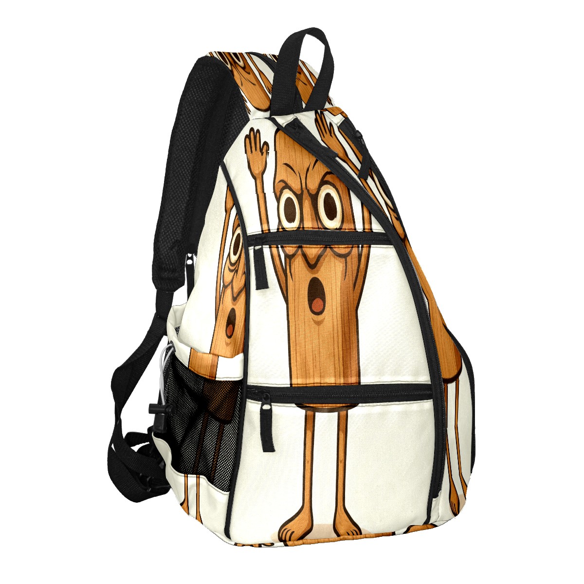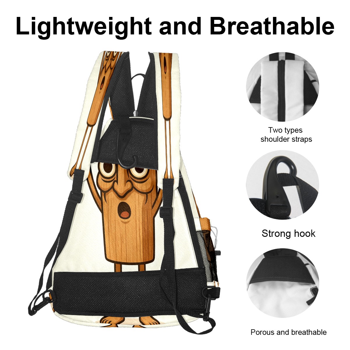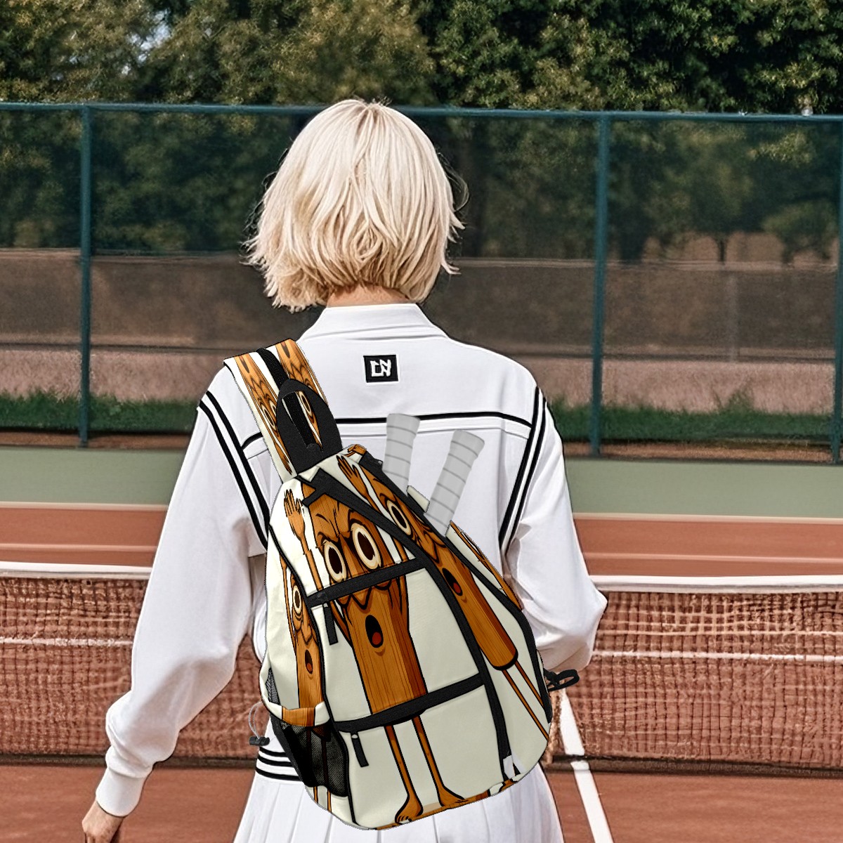 Pickleball Bag - Wooden Cartoon Characters Unisex Pickleball Backpack with Fence Hook, Adjustable Shoulder Straps, Security Pocket Gift for pickle ball Lovers